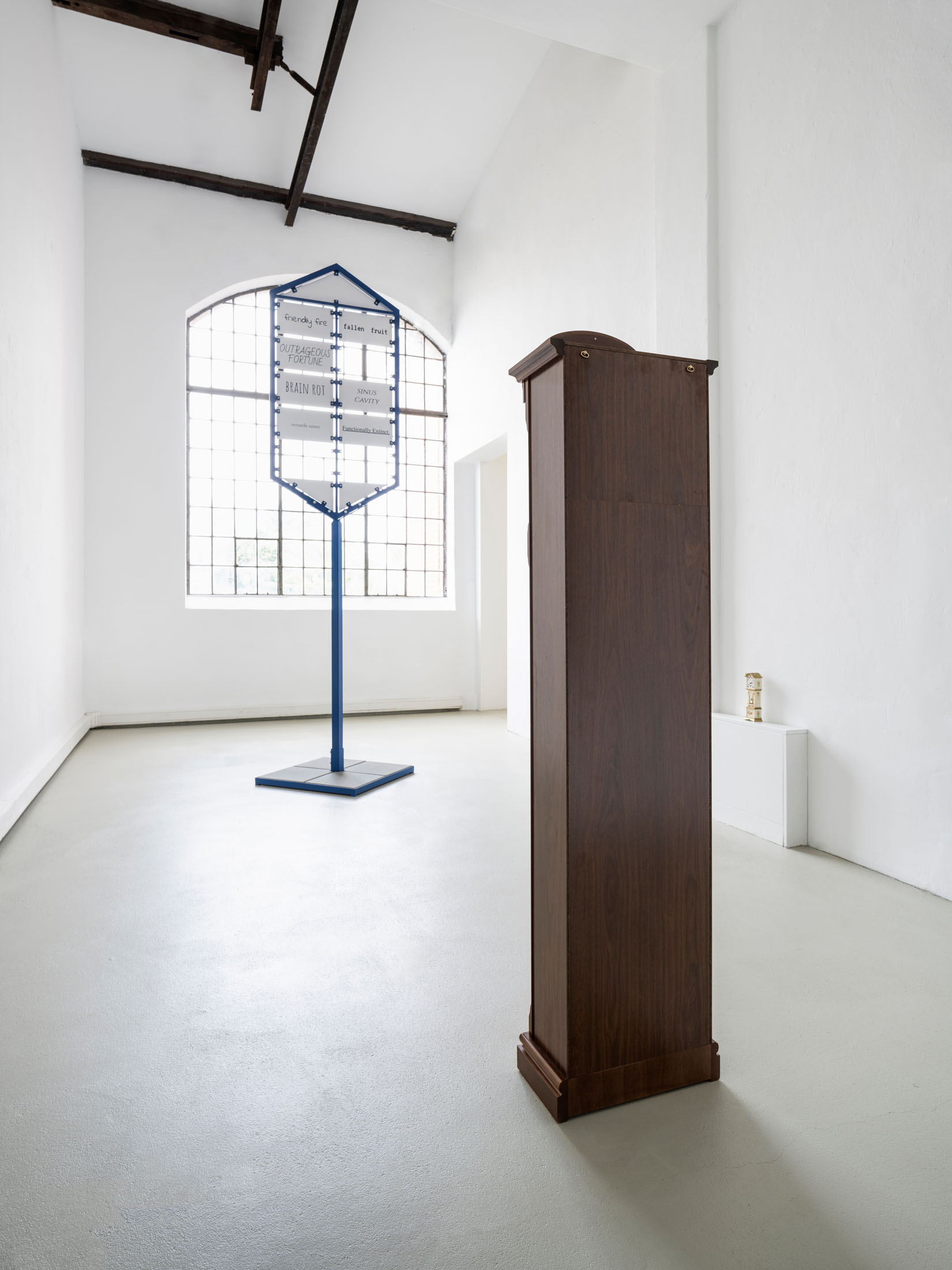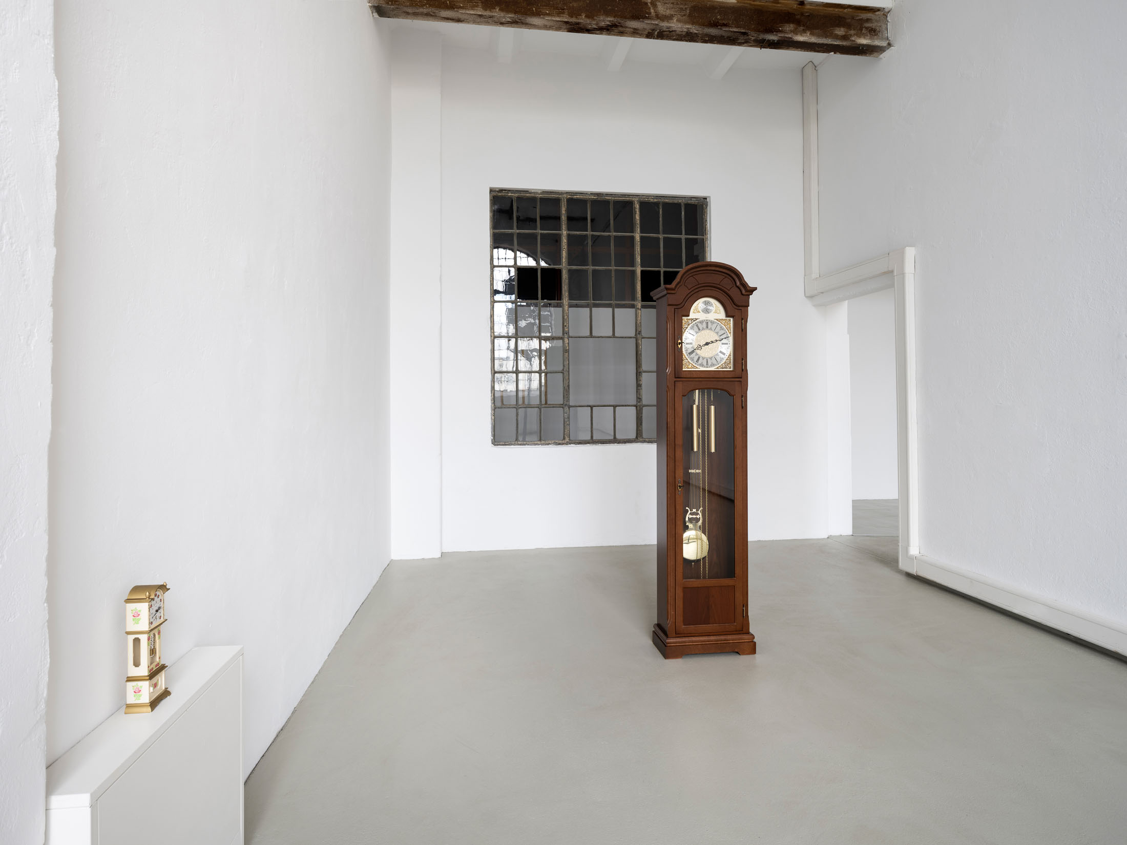 Emily Jones responds to these genealogically developed contexts of influence with an aesthetics of the fragmentary, the relational, the provisional, and the speculative. Within spatial configurations that touch about these many spheres and address both physical and emotional dimensions equally, she collages sculptural, auditory, textual, and performative elements into model situations that continuously challenge these–both external and internalized–systems of control and order. Models, timekeeping systems, objects of value, and disciplinary technologies are thereby transformed into speculative spaces of possibility that open up alternative forms of care, participation, and collective–ecological, economic, and social–responsibility.