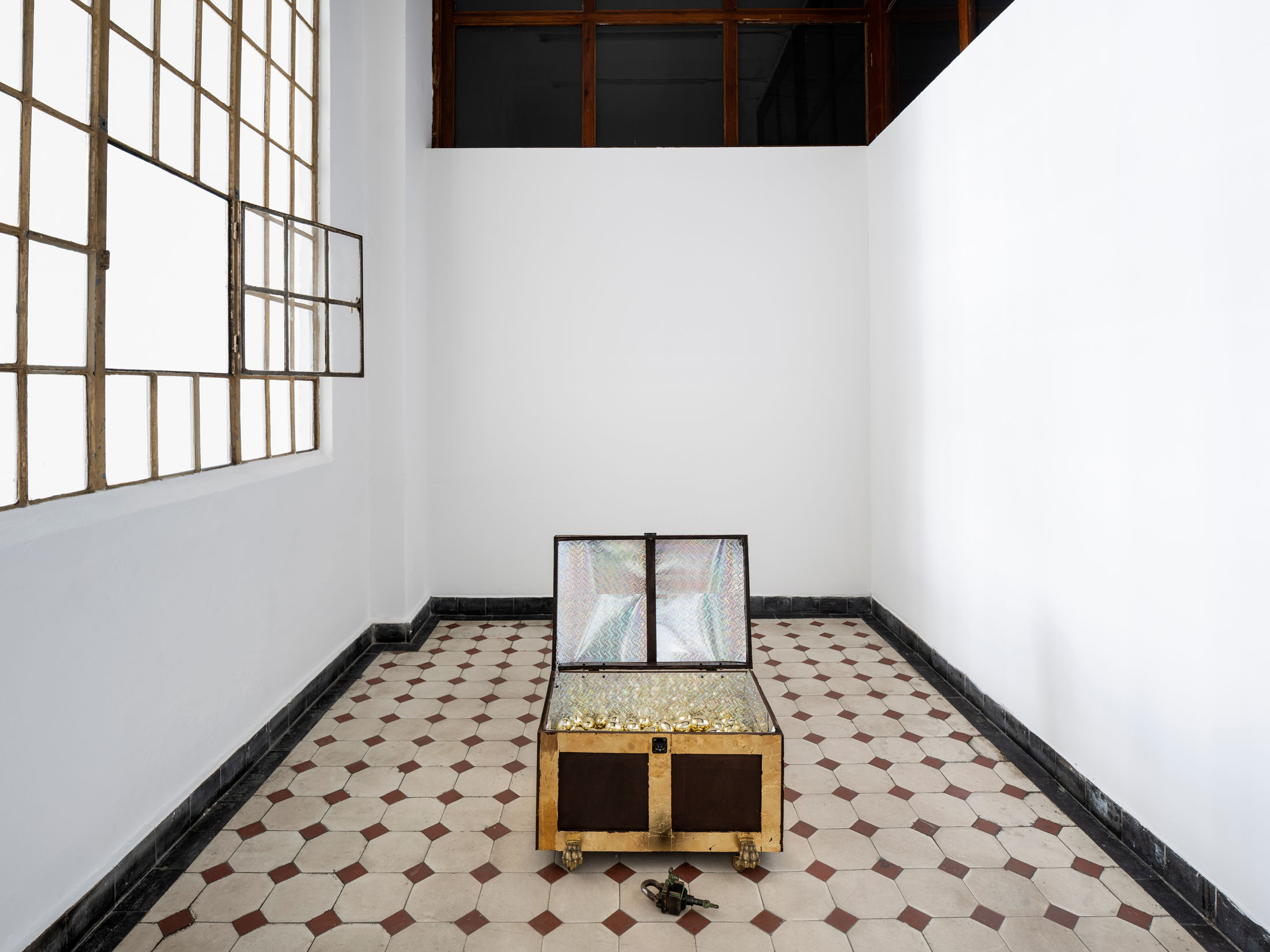 With we‘re doing alien‘s milk aren‘t we, the Kunstverein für Mecklenburg und Vorpommern in Schwerin is presenting the first institutional solo exhibition by British artist Emily Jones in Germany. The exhibition brings together new works created especially for the site of the Kunstverein, which unfold less as self-contained objects and more as ambiguous spaces of experience. In their openness to interpretation, the installations critically examine contemporary forms of coexistence and pose questions about individual and collective responsibility. In so doing, they interweave new relational connections between disciplines that are often thought of as separate: science, ecology, history, architecture, technology, archaeology, geography, cosmology, memory, and faith.