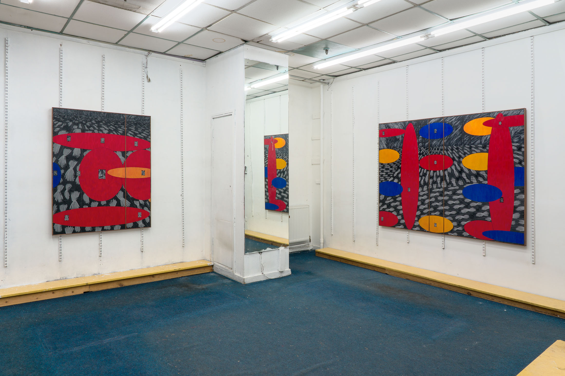 Public Gallery is pleased to present Bucolic Cob, Emma cc Cook’s second solo exhibition with the gallery. Across eight heavily layered paintings of oil and acrylic on linen, Cook explores with systemic precision how accelerated capitalism and industrialization cast shadows across rural America. Her works serve as an archive, or perhaps a tombstone, blending speculative fiction with her Minnesota upbringing, to capture the no man’s land of the American mid-west — a hybridization of its mythical past and forgotten future — while advancing the contemporary genre of landscape painting.