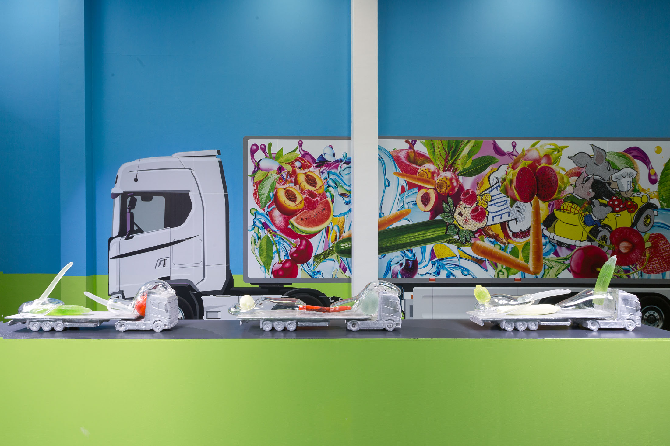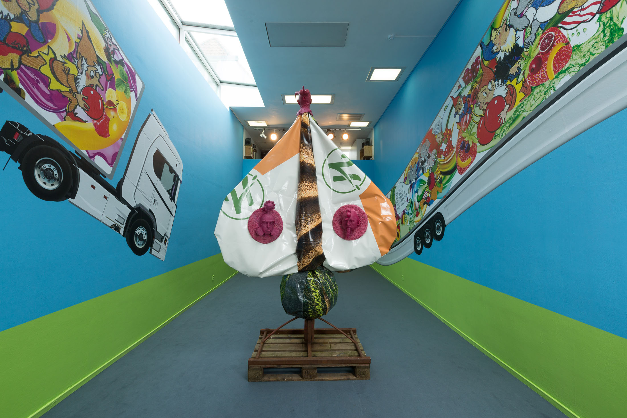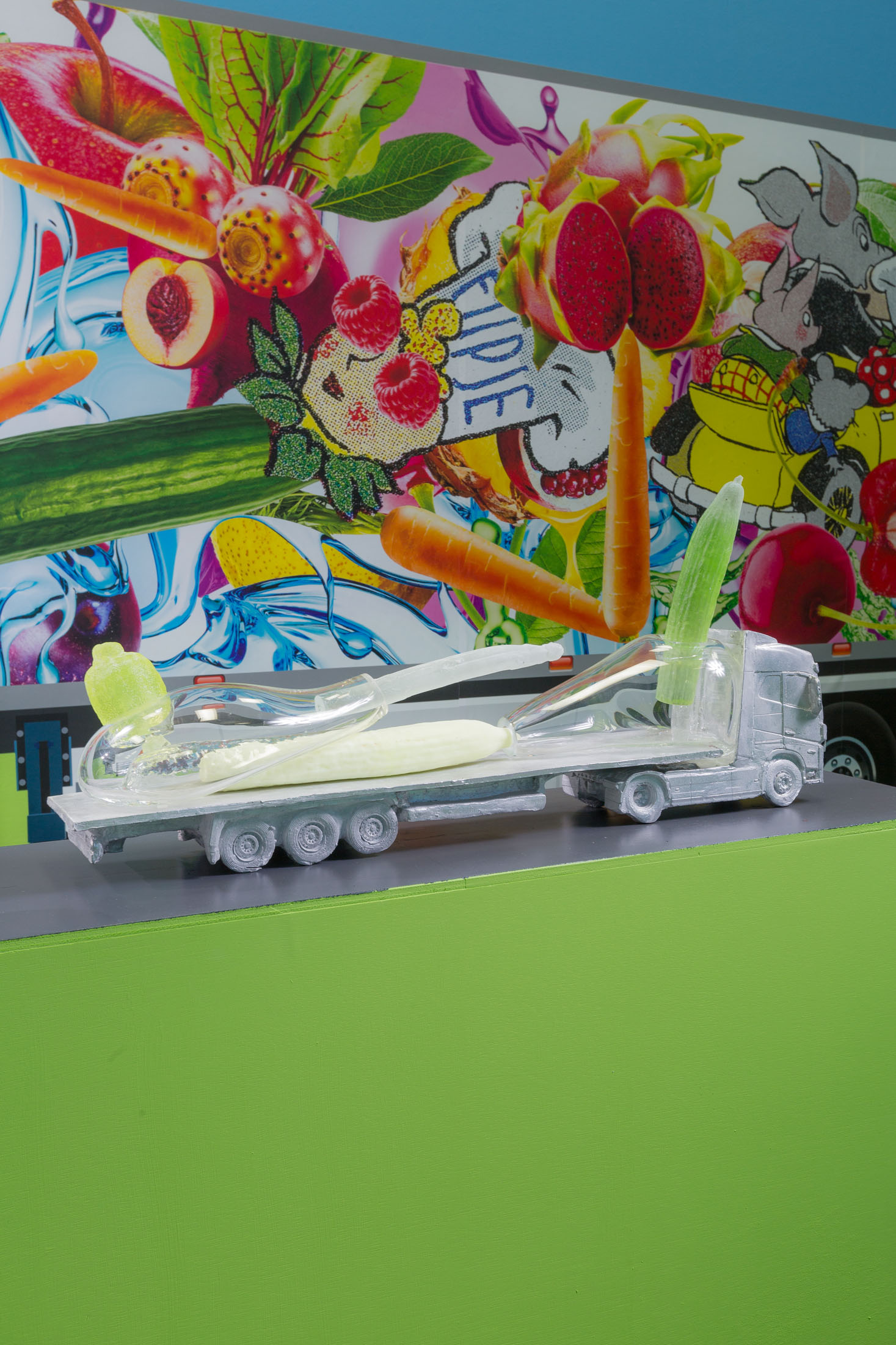 For his solo exhibition at 1646, the artist uses the Fruit Corso in Tiel (NL) as a starting point. This is a festive parade celebrating food abundance by featuring floats decorated with fruit and vegetables. In 1961, it was created by the local producers of the Betuwe region to promote their local products.