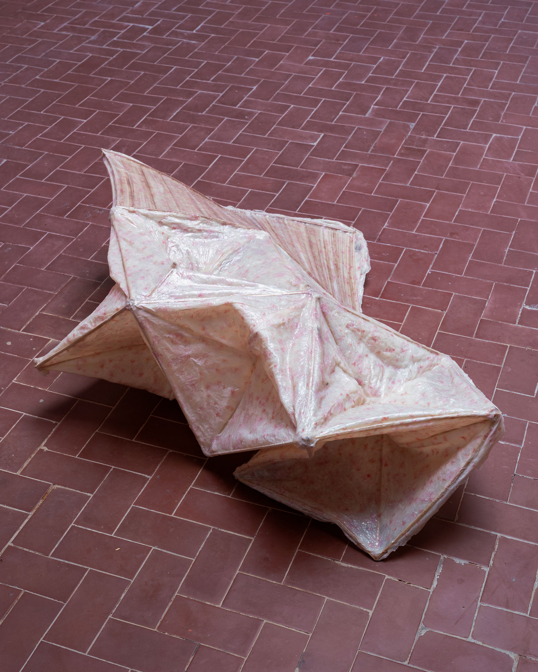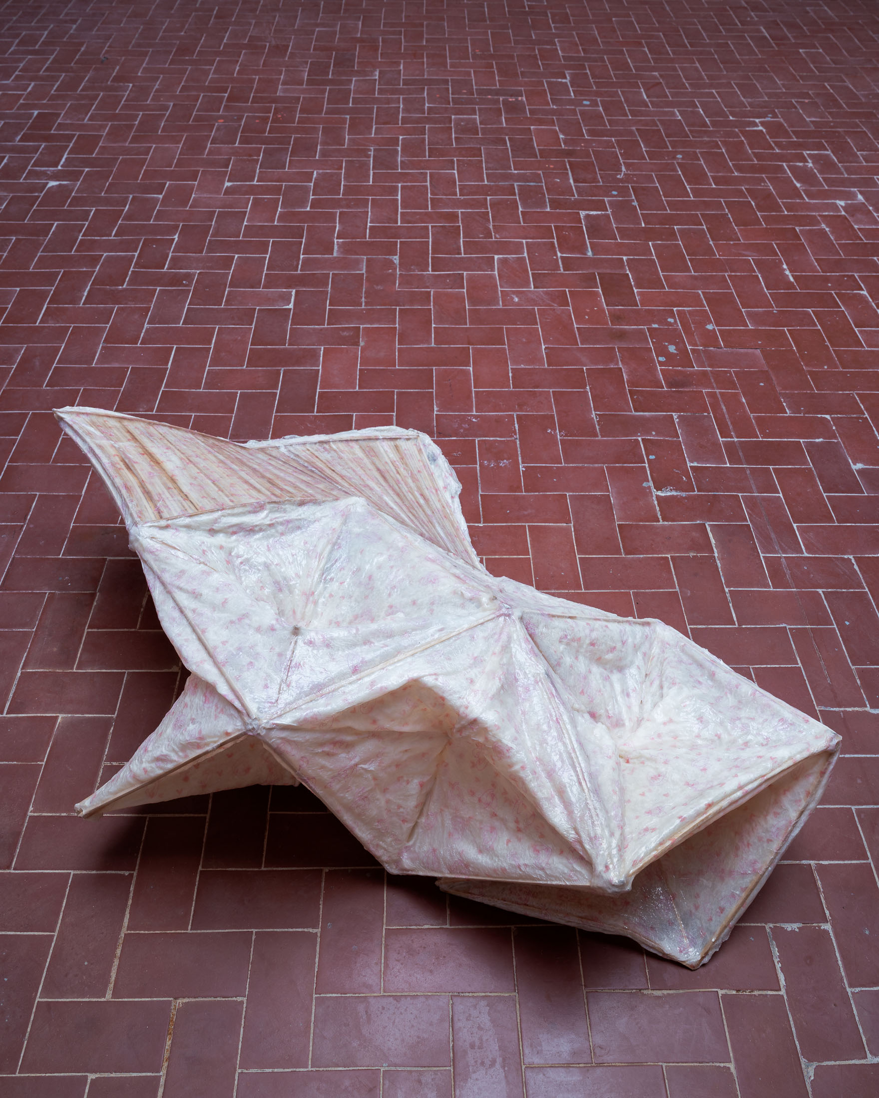 Altogether, these works propose a system in which temporality feels different: less linear and cumulative, more porous and contingent. The perfect metaphor for this is the jellyfish itself, as it occupies a particularly peculiar position both in the exhibition and in the biological world. It is an organism whose form is maintained by water pressure, and which continuously exchanges matter with its environment. When exposed to stress, physical damage, or starvation, certain types of jellyfish can even shrink inward, reabsorb their tentacles, lose their ability to swim, and settle as a cyst-like mass. In a little while, they can reorganise themselves into a polyp, from which new ones bud off later. This exceedingly rare process allows the organism to rebuild itself according to a different body plan.