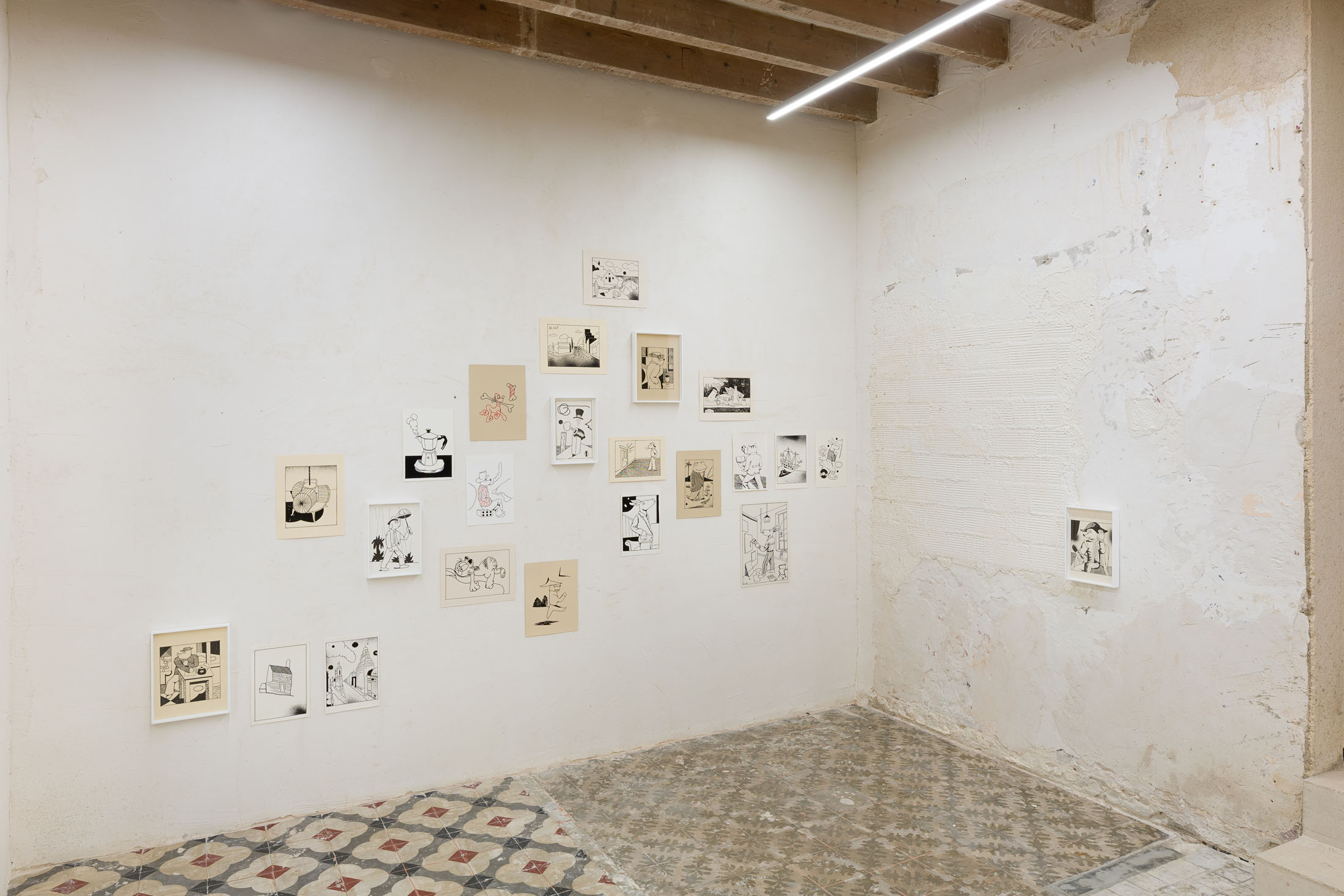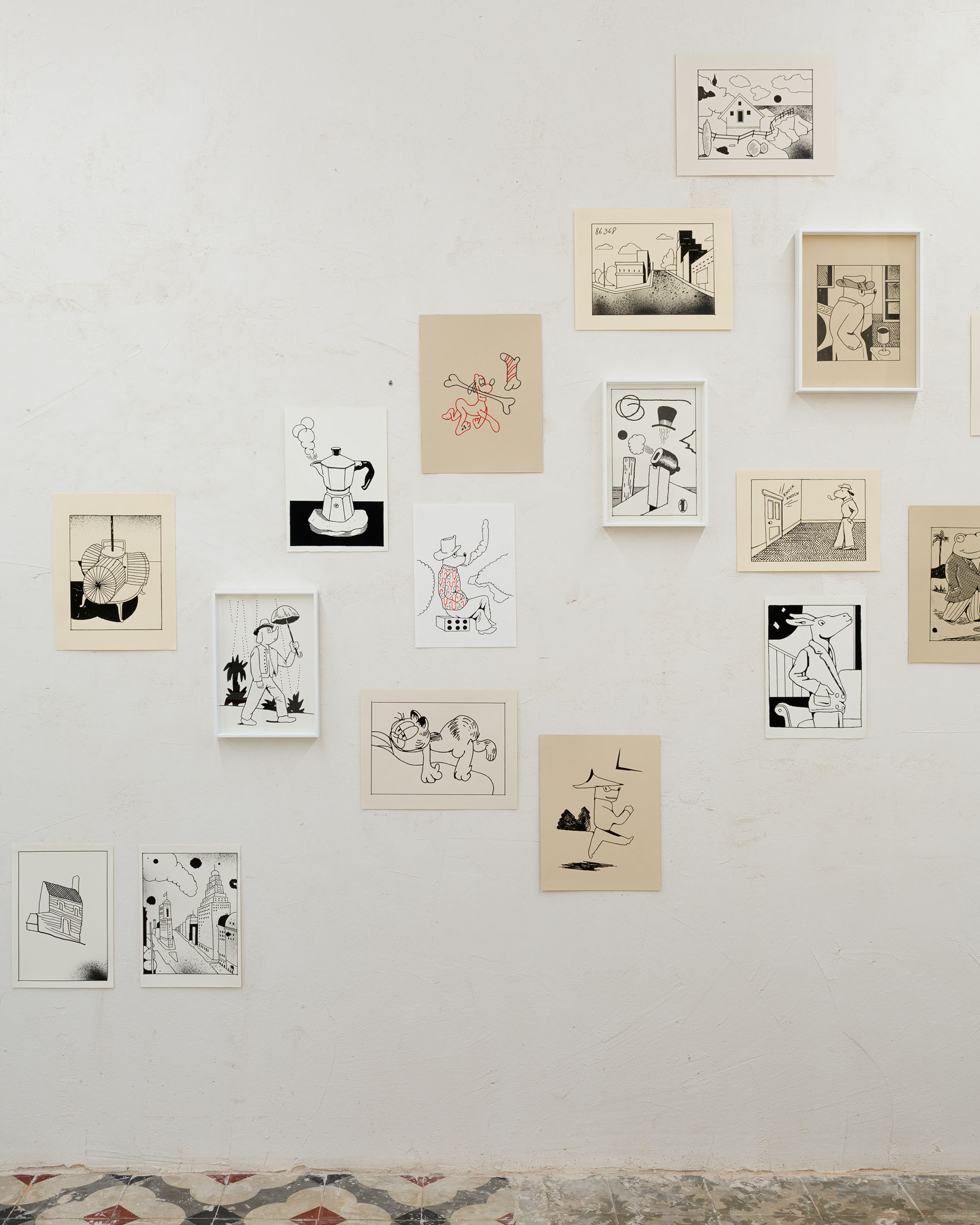Those drawings unfold like a poetic diary: inspired by intuitive flow rather than rational will, they are snapshots of small, fleeting events. A cup, a cloud, a dog, a gesture, inanimate elements that might go unnoticed to many of us, become characters full of life through Fabio’s tender bricolage. The artist plays with the memories they hold and the sensations they reflect, bringing them into dialogue and forming scenes where objects and gestures meet.