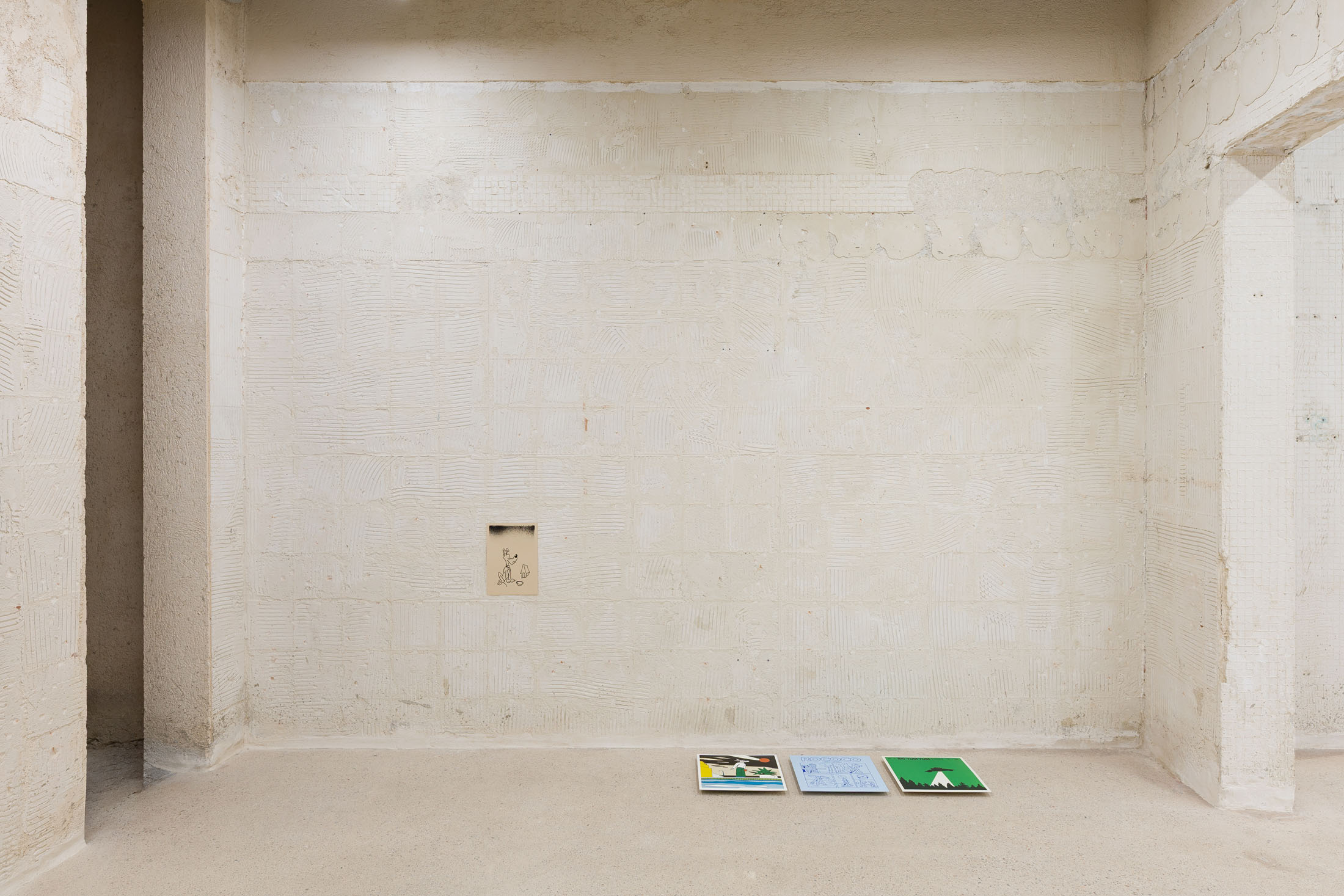 Three large paintings open like portals to Viscogliosi’s inner world, which is much like our own, only more playful and full of possibilities. Beneath the apparent stillness of these scenes, runs a current of creative energy, reflected across some thirty drawings pinned to the walls.