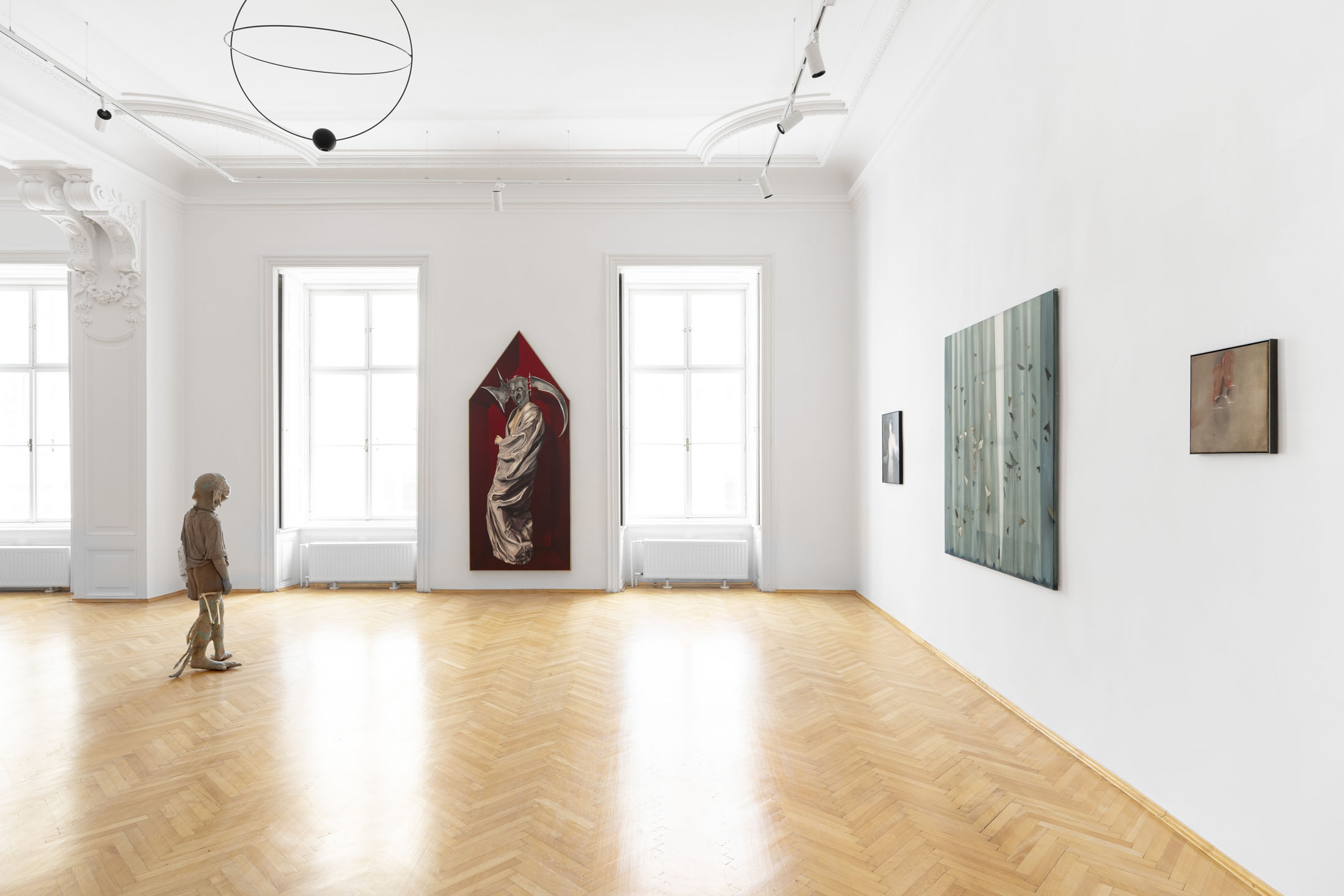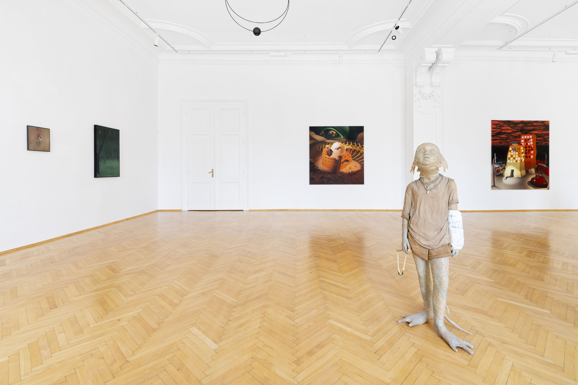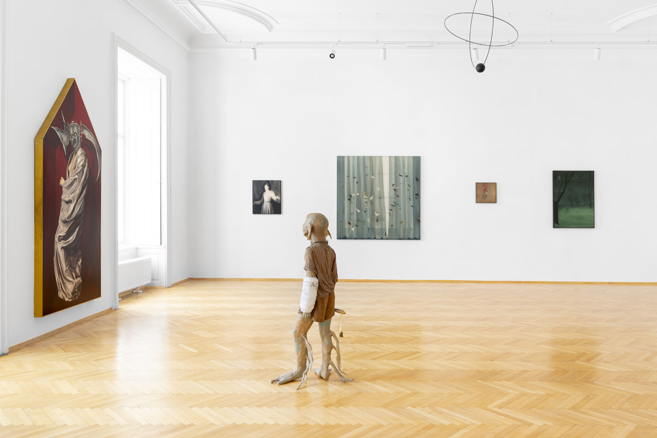 The exhibition presents a selection of paintings and sculptures by artists from Italy, Hungary and the Czech Republic. Figurative compositions depict a range of human and mythological figures dominating the scene. Some figures are haunting and demonic; others exude a dreamlike romance. Their otherworldly forms and peculiar physical traits invite us into a realm of fantasy and imagination. Interwoven with natural motifs, surreal still-lifes, and abstract gestures, these works cultivate an atmosphere where tranquillity and tension coexist – fleeting moments juxtaposed with strikingly realistic scenes. Through emotionally charged scenes, with lavish symbolism and metaphor, the artists reveal their personal experiences and intimate narratives.