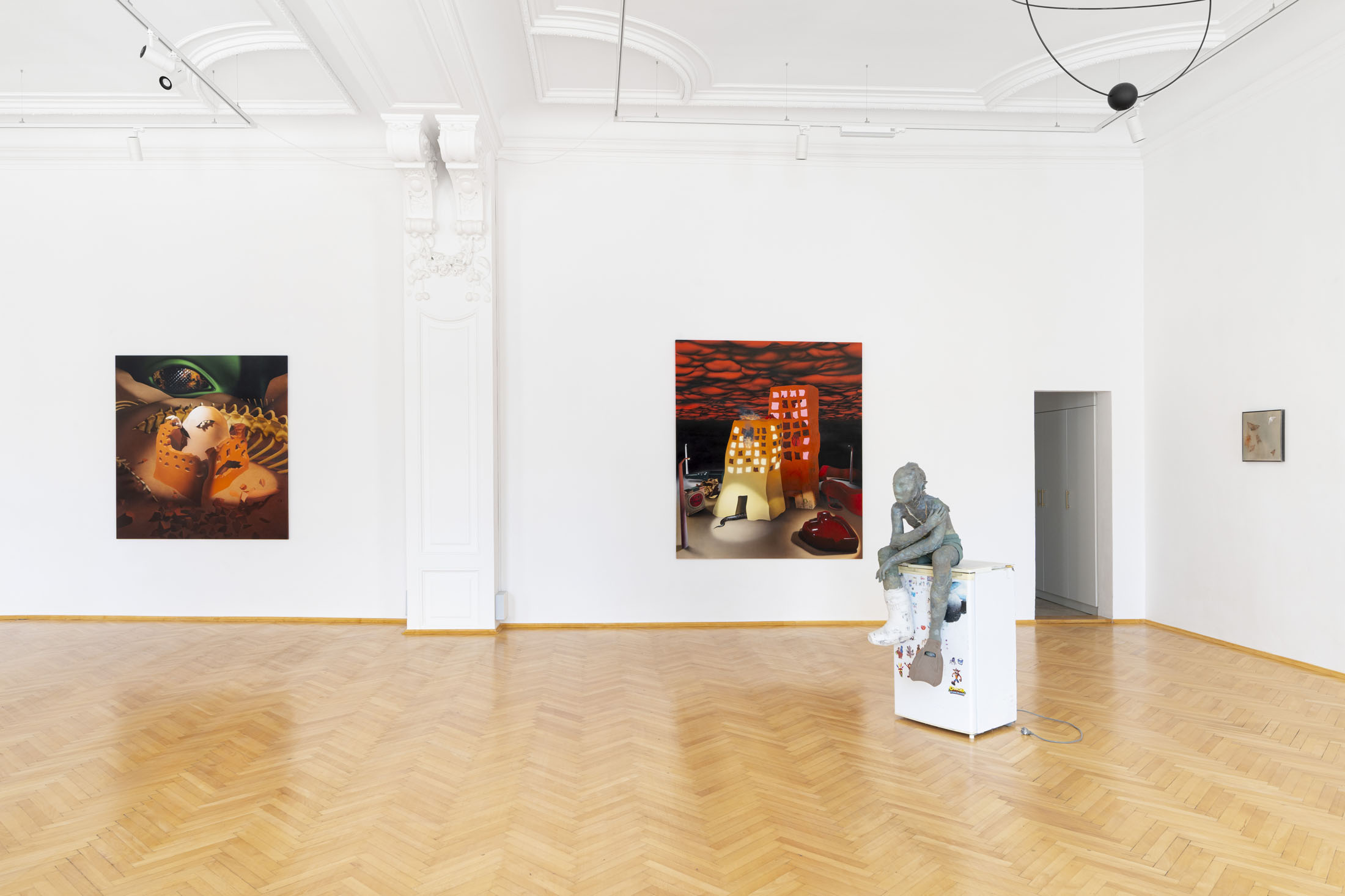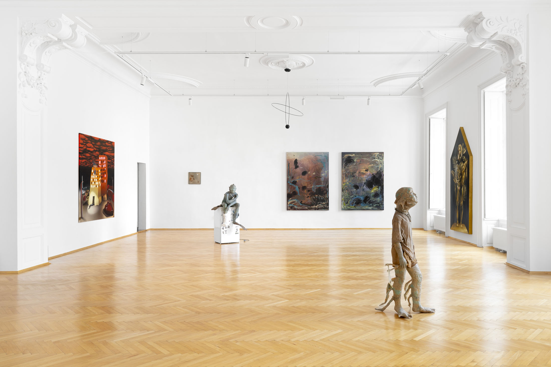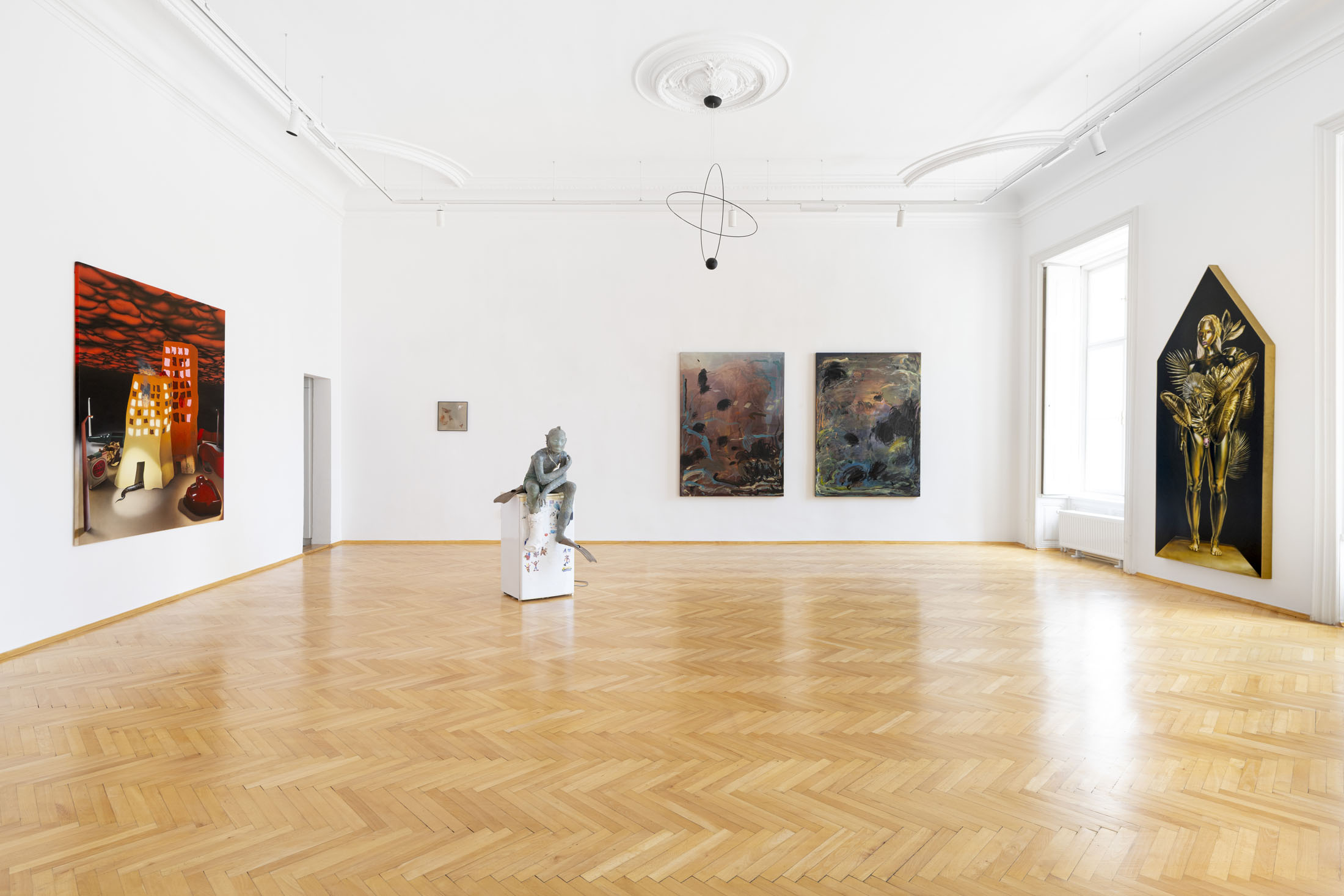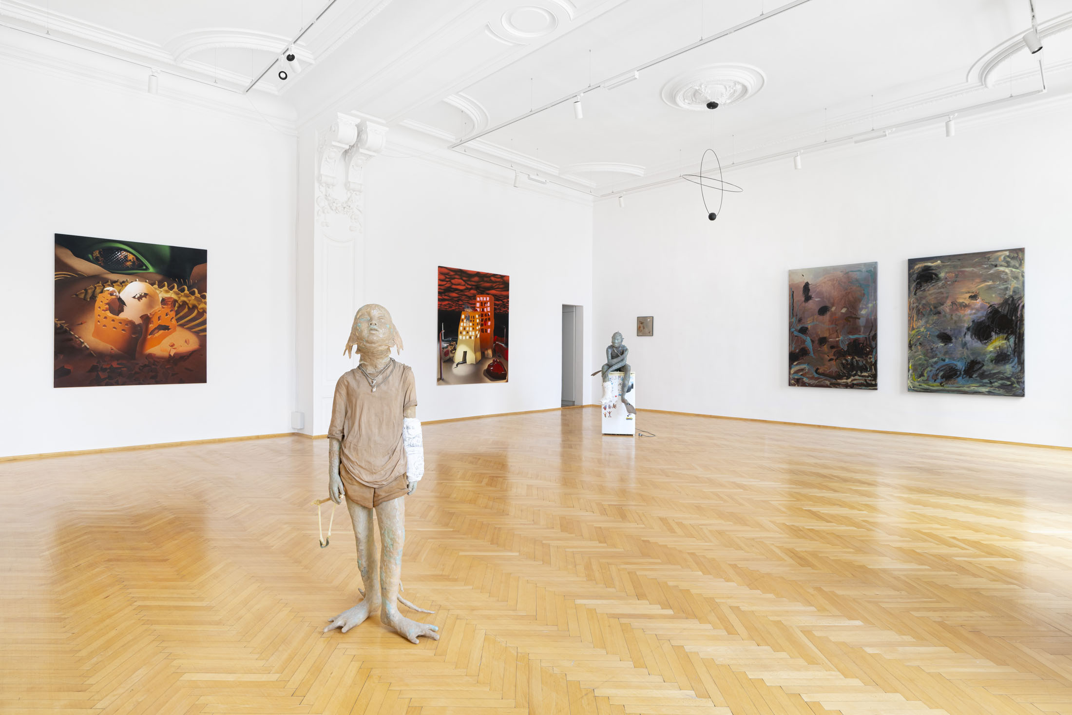 The exhibition presents a selection of paintings and sculptures by artists from Italy, Hungary and the Czech Republic. Figurative compositions depict a range of human and mythological figures dominating the scene. Some figures are haunting and demonic; others exude a dreamlike romance. Their otherworldly forms and peculiar physical traits invite us into a realm of fantasy and imagination. Interwoven with natural motifs, surreal still-lifes, and abstract gestures, these works cultivate an atmosphere where tranquillity and tension coexist – fleeting moments juxtaposed with strikingly realistic scenes. Through emotionally charged scenes, with lavish symbolism and metaphor, the artists reveal their personal experiences and intimate narratives.