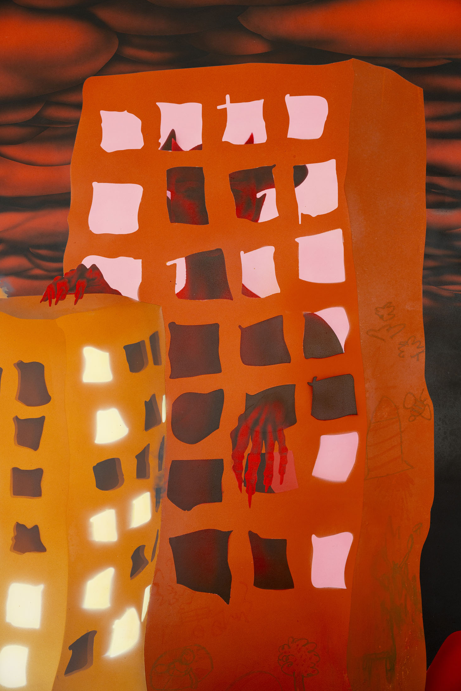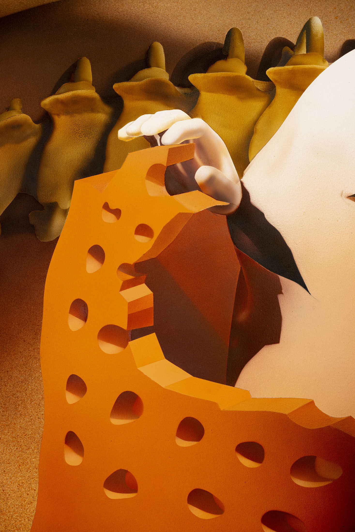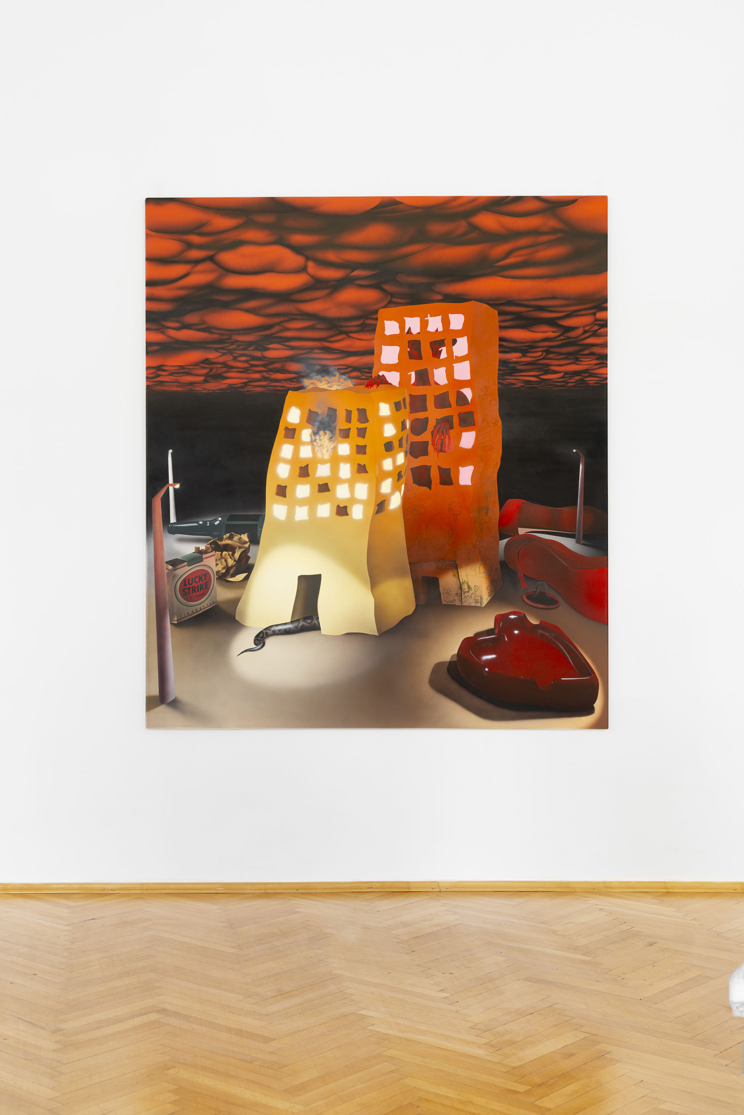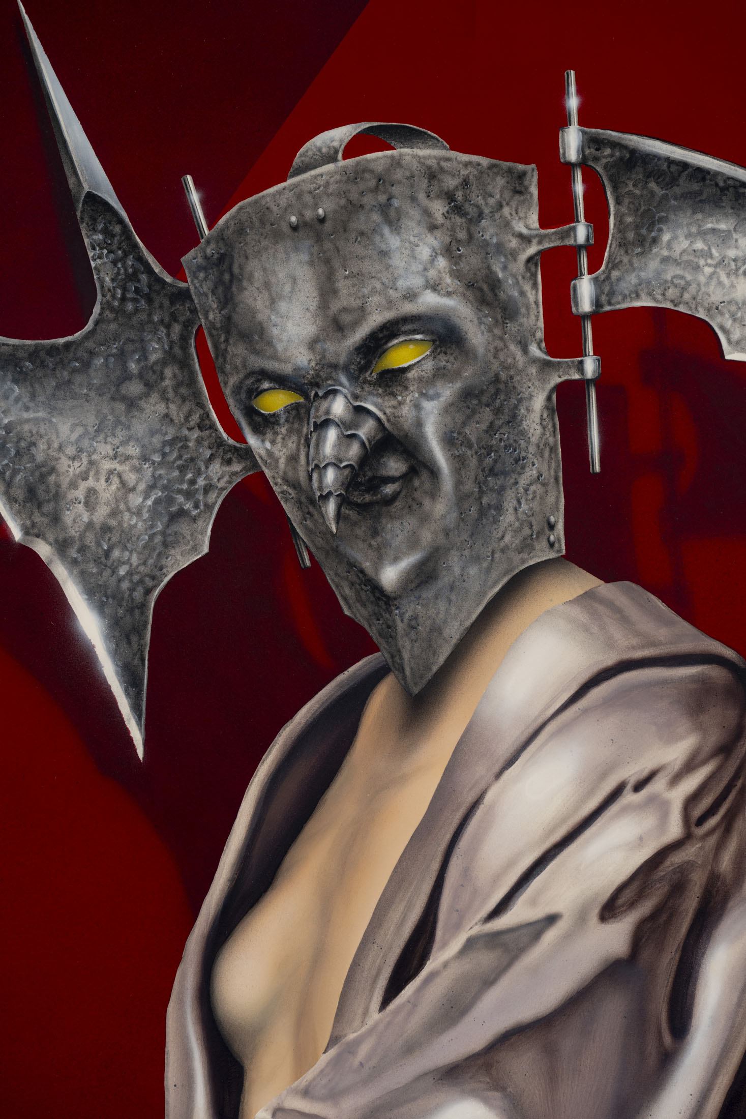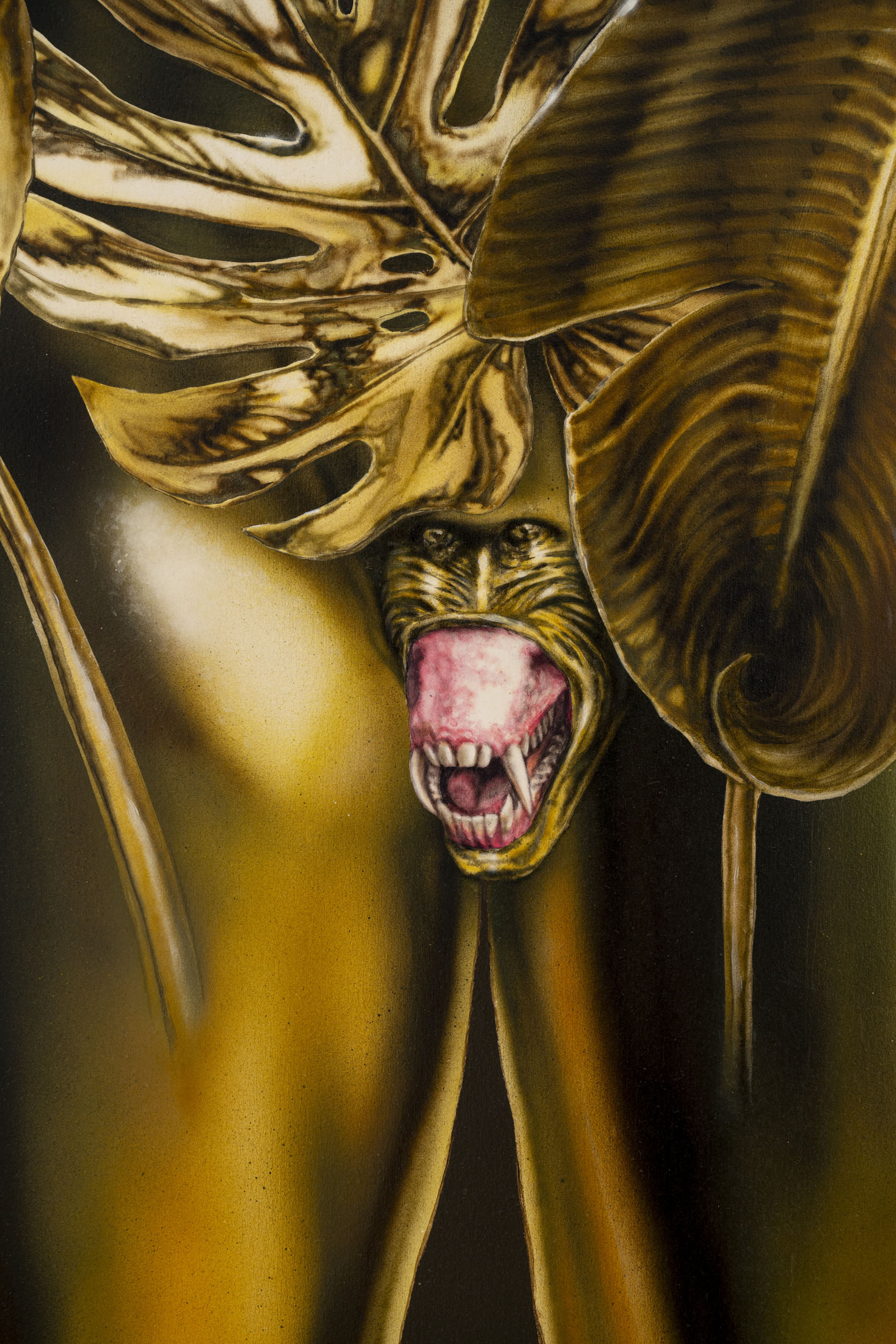 Áron Lőrincz (b. 1985, Budapest) explores the realm of sleep paralysis and hallucinations through the lens of mythological demonic beings in his Succubus series. His monumental acrylic paintings on wooden panels – evoking the architecture of chapel interiors – depict figures that are at once sensual and disquieting, marked by hybrid anatomies and physical anomalies. These visually appealing yet haunting forms emerge from the perspective of demonology, appearing within dreams to seduce men and drain them of their life force and soul. Lőrincz probes the delicate boundary between science and mysticism through his work, while also reflecting on the deeply personal experience of intense nocturnal states.