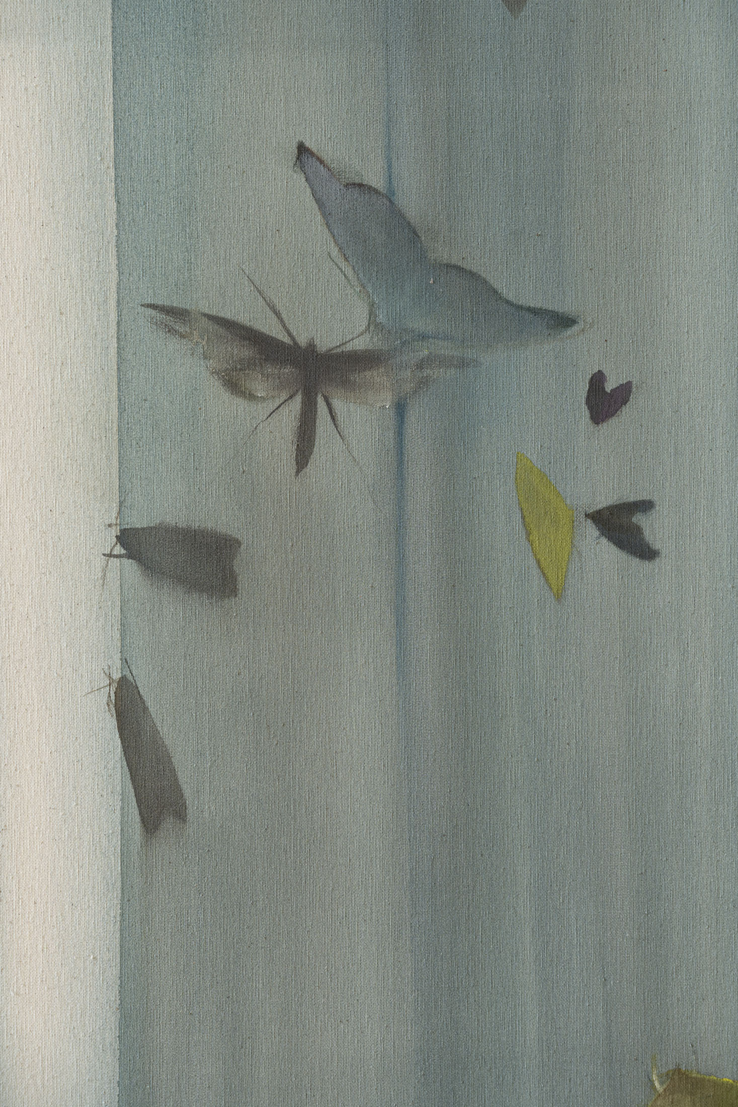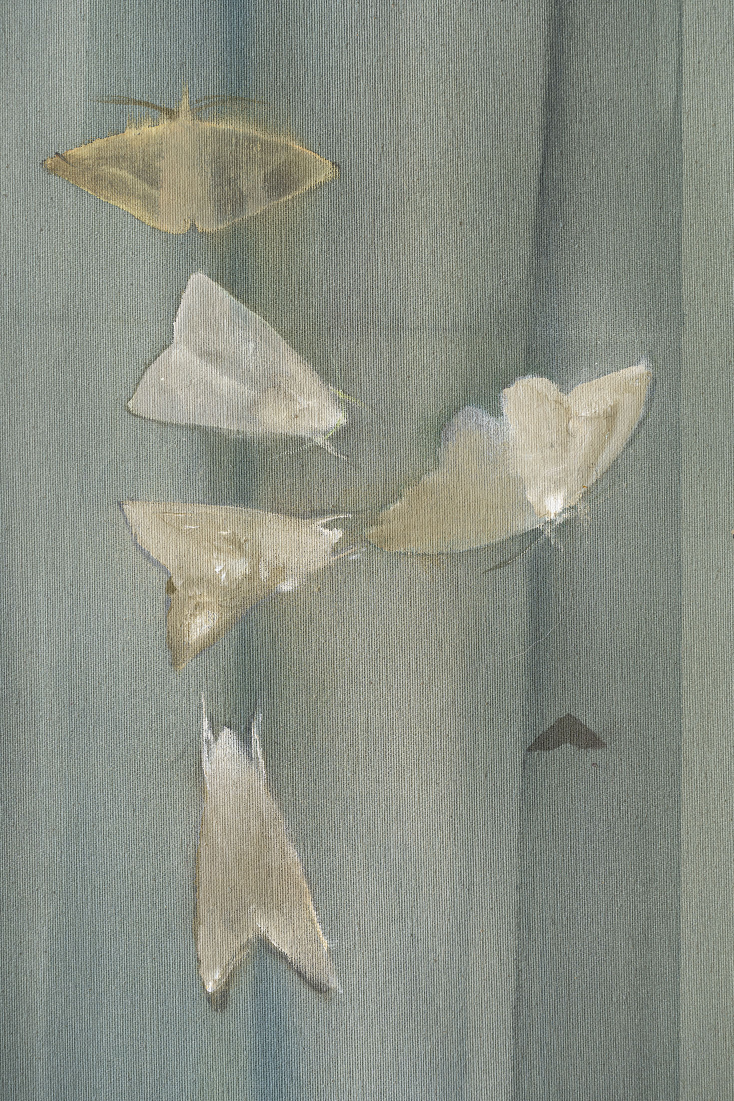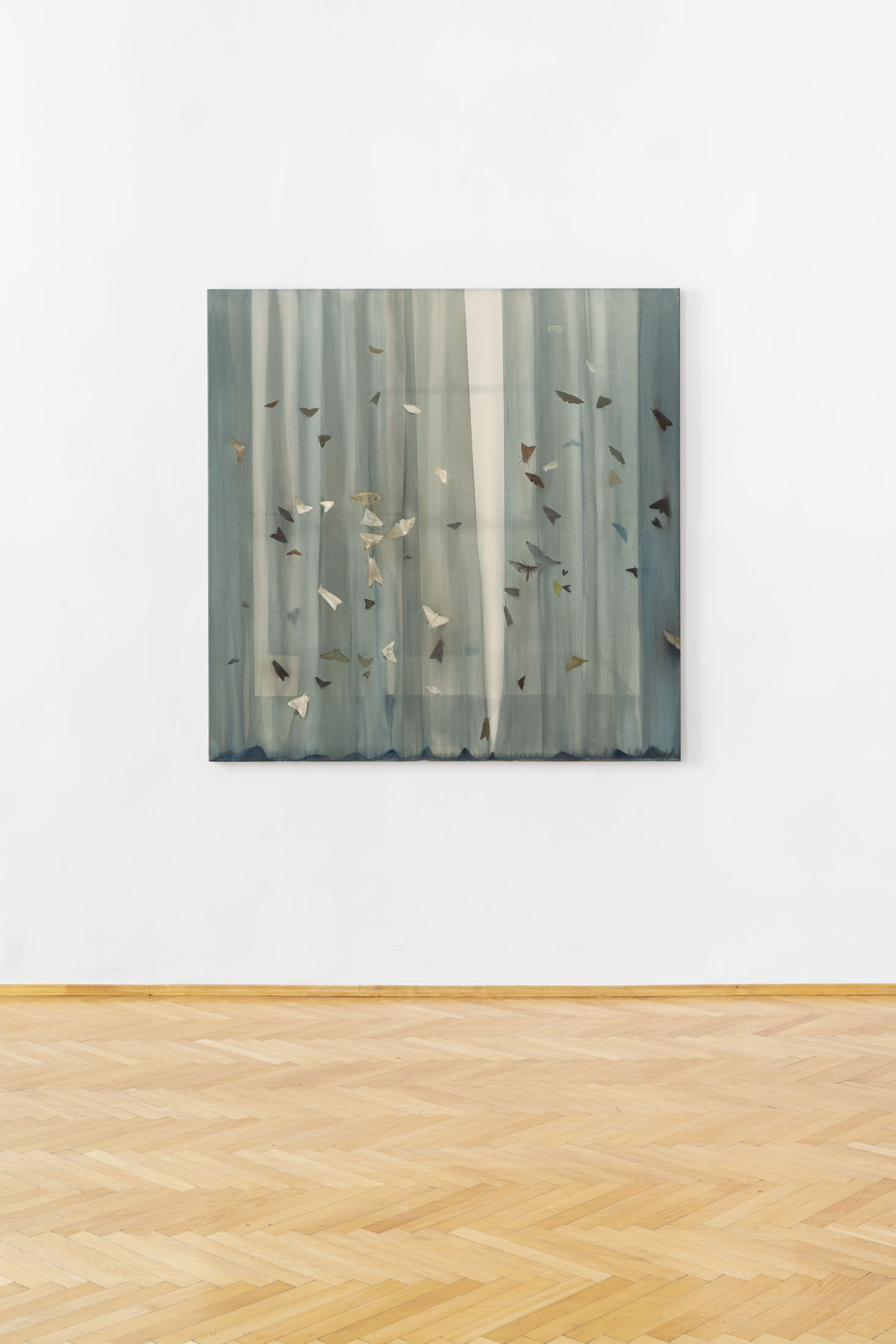 Anna Ruth (b. 1994, Prague) enchants the spectator with ephemeral imagery, fluid gestures, and romanticizing, yet melancholic atmosphere. Her works reflect the relationship between human, nature, and mythological figures amidst them. The works on display explore symbols of fragile moths – symbolising moments of transition, linked with death and introspective dive into emotionally loaded moments. The dreamlike atmosphere evokes nocturnal scenes, yet at the same time feels like a fleeting dream – one that exists outside of reality, somewhere between memory and imagination.