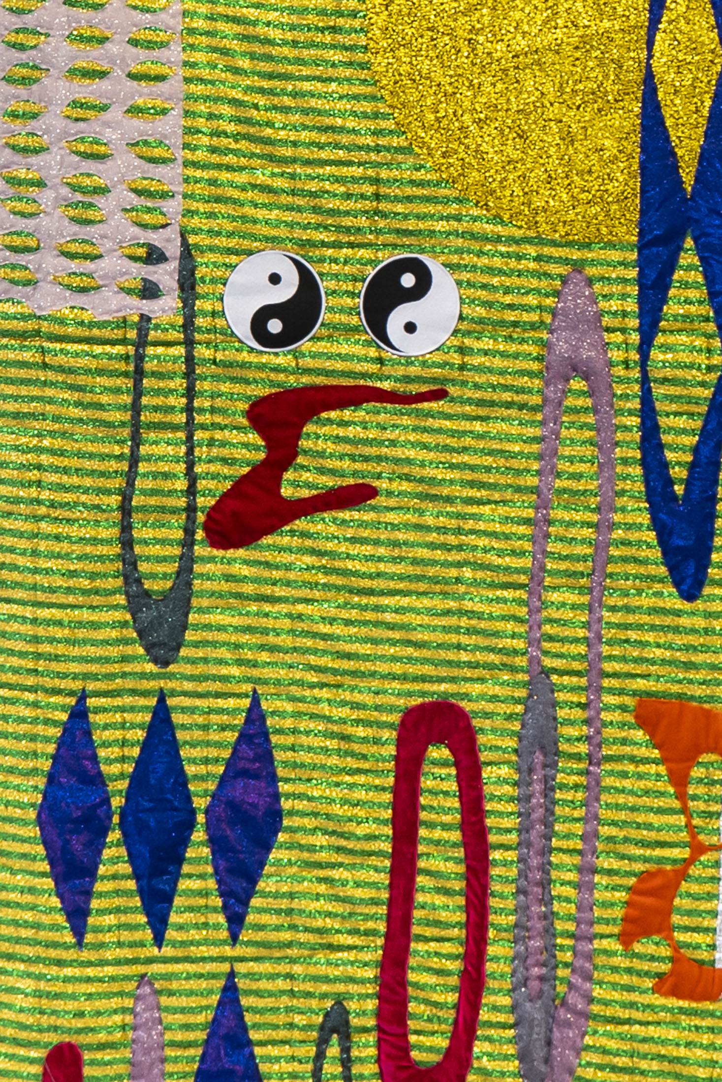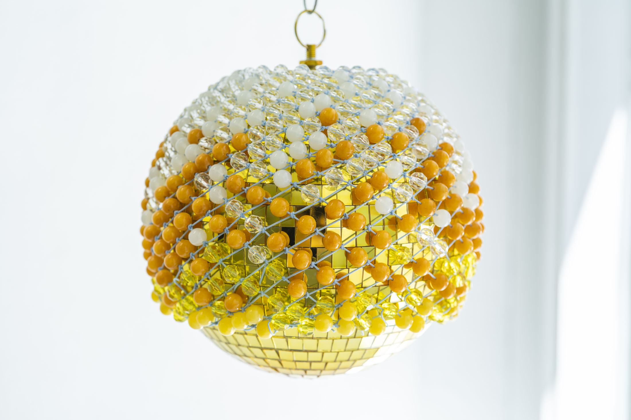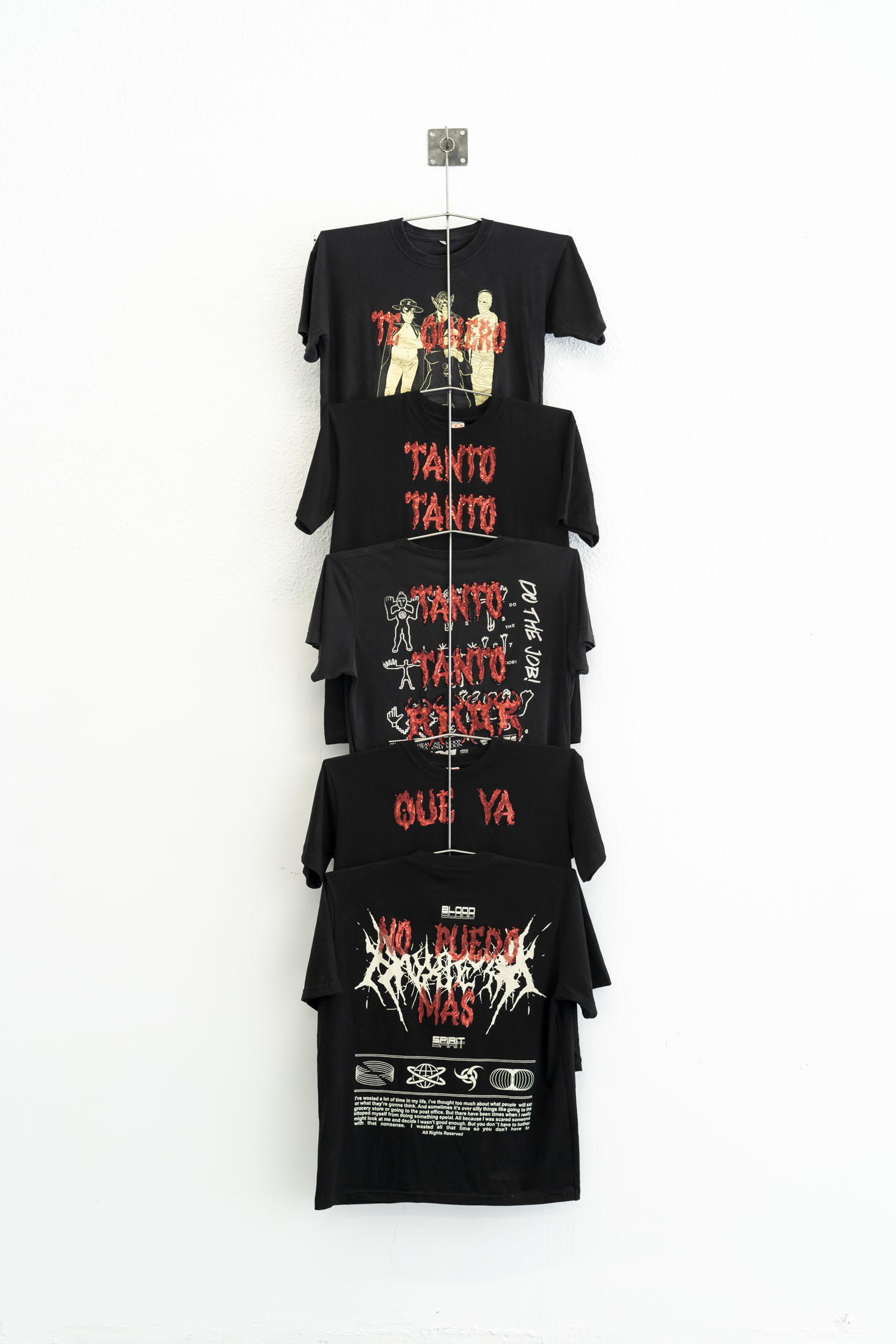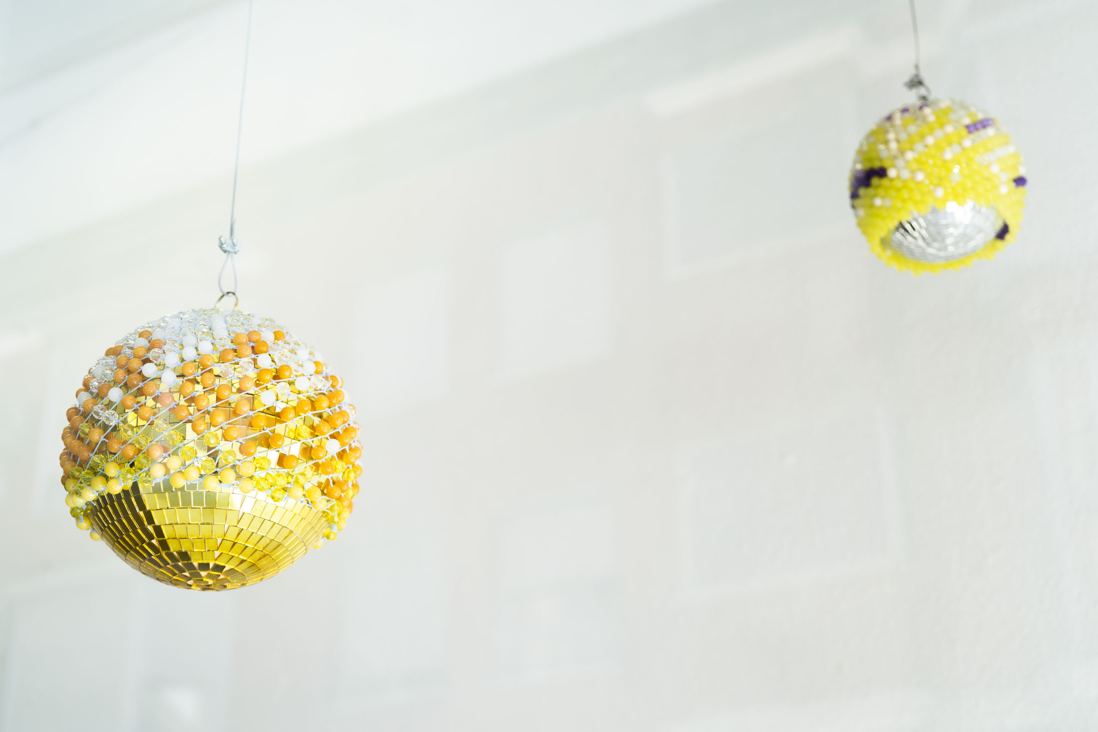 a historical and emotional weight, underscoring the symbolic power of cultural forms that, although not always deeply studied, carry a strong political message. Through her t-shirts, rings, disco balls, the artist draws from romantic ballads and pop music, but also from European modernism, pushing them to the extreme and highlighting the flaws and cracks of aesthetic patterns appropriated by popular culture in its aspiration to symbolize progress.