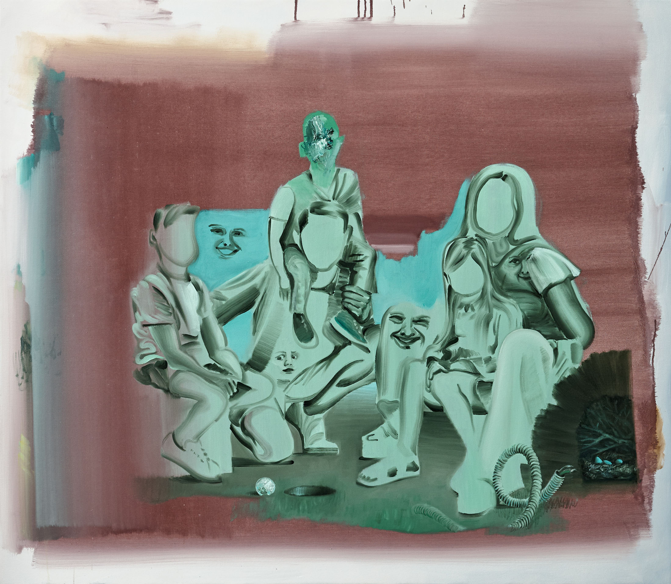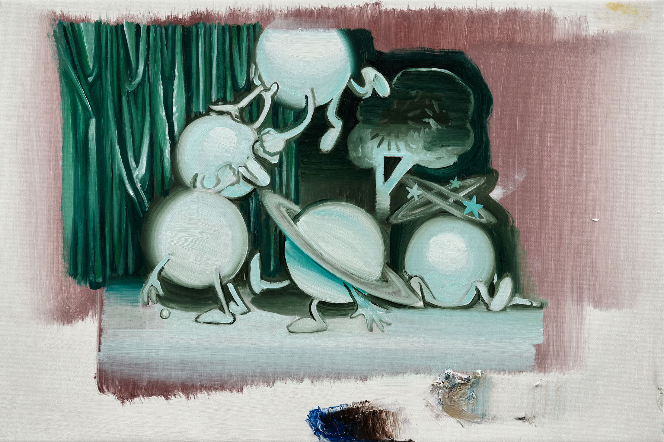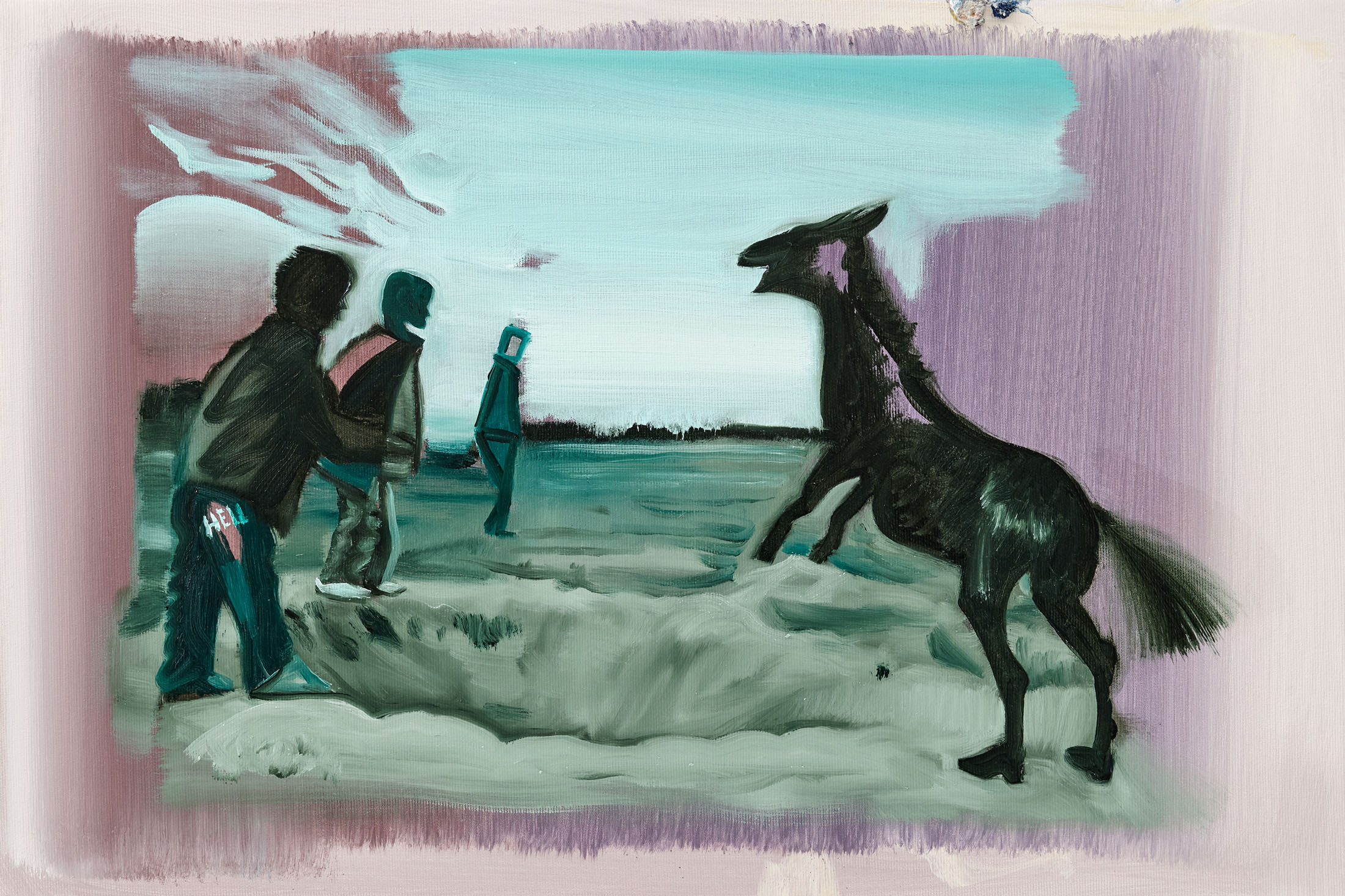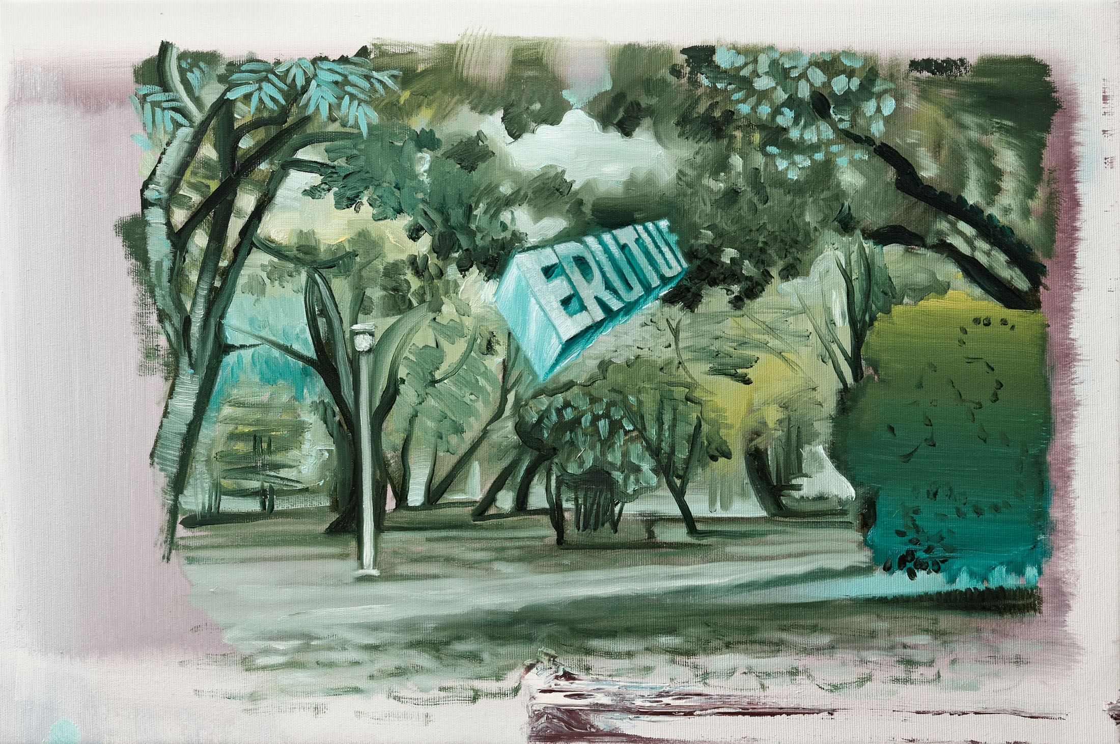 Longtermhandstand is pleased to present painter Gábor Pintér’s latest exhibition, Brilliant Patchouli Ideas (When the Dust Settled, the Time Came) with the title Quite Earthy, Green Scent. The new series reveals a painterly world built on the external observation of human relationships, the subtle vibrations of everyday coexistence, and the layers of lived time.