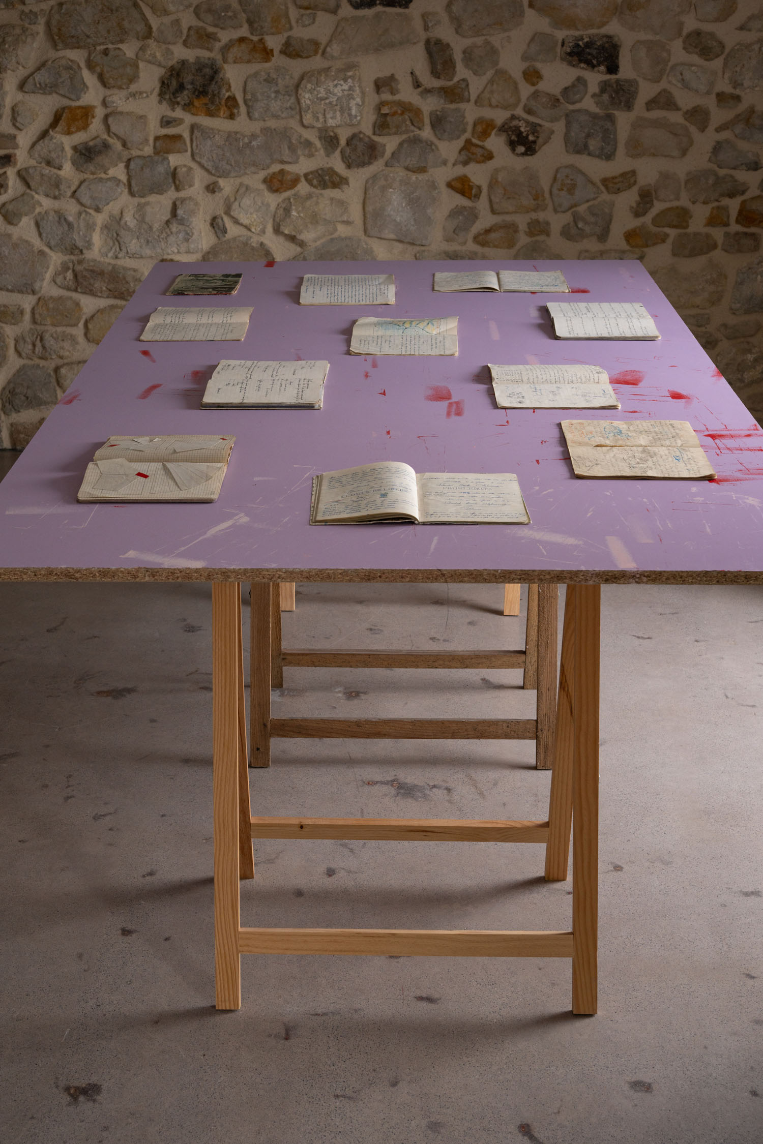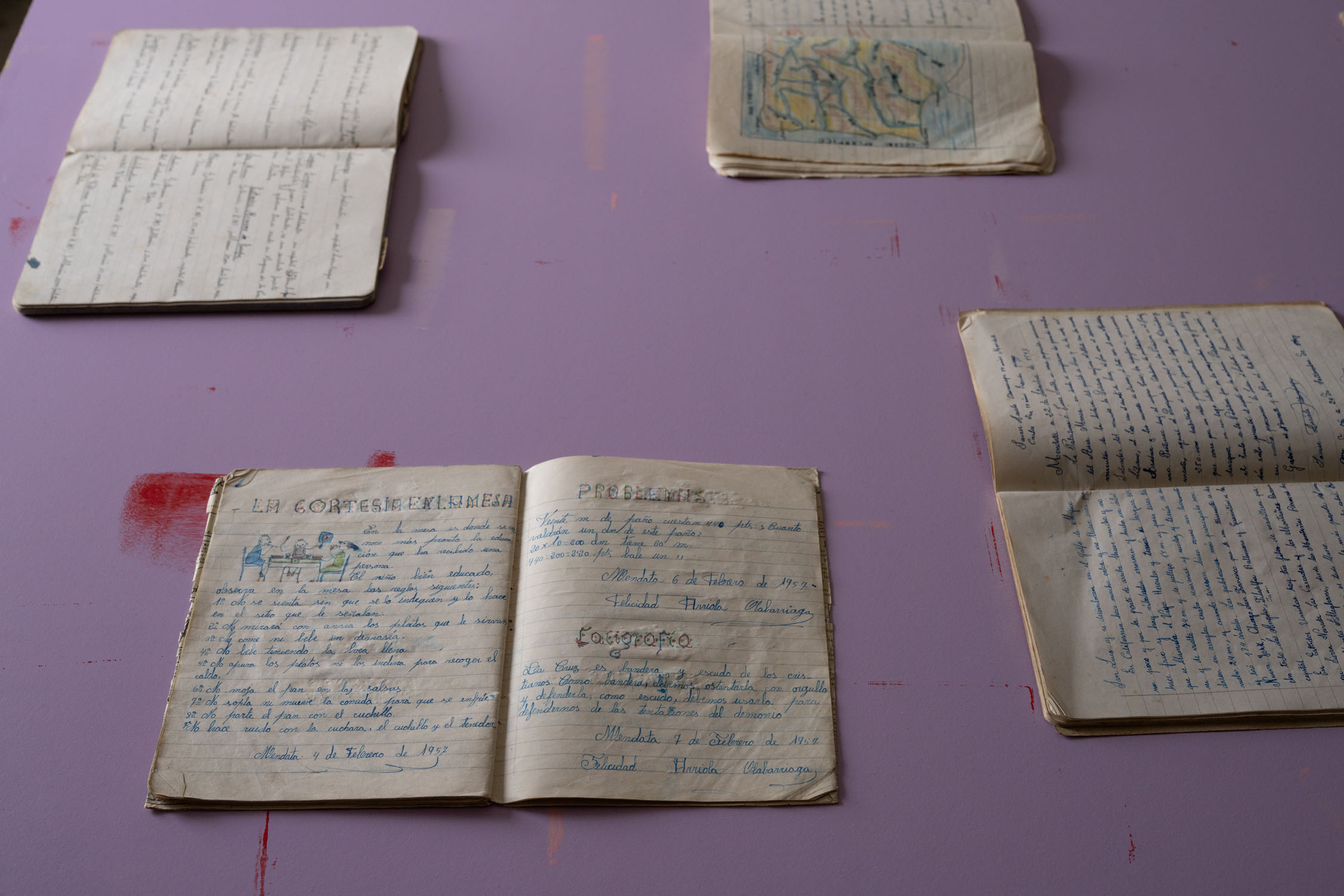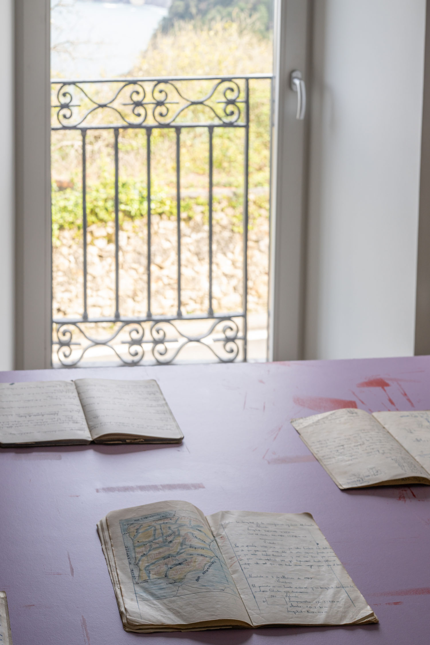 To approach what might be considered the farthest place on Earth—one’s birthplace—she draws on narratives built from the layering of other voices and materials. These range from school notebooks from the 1940s found in an attic to evocative objects like the so-called Sudario de Nabarniz (Shroud of Nabarniz). Guided by a sensitive curiosity, she engages with items that once played a role in Basque seafaring rituals marking the passage between life and death. At the same time, these elements reflect the contradictions and extractive nature of a socio-economic system linked to shipbuilding and maritime trade. This eclectic array, as Xabier Arakistain observes, is what Intxausti brings into play on the board of resignification.