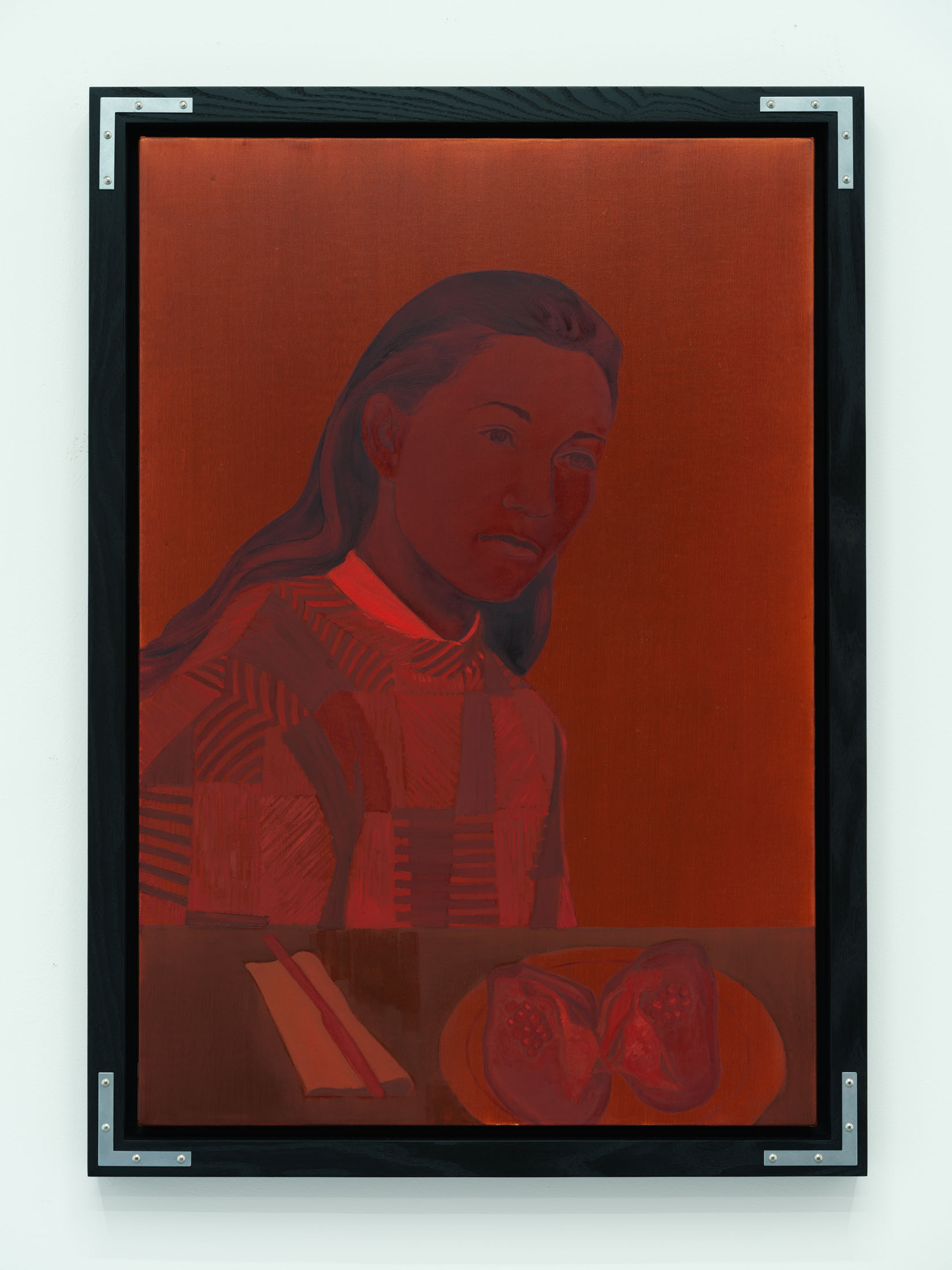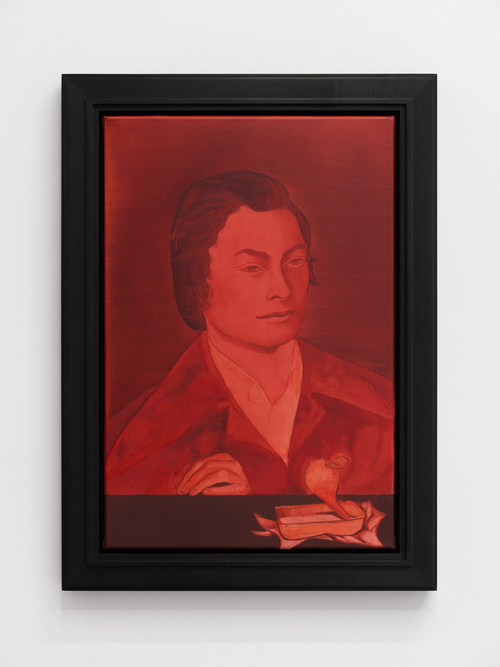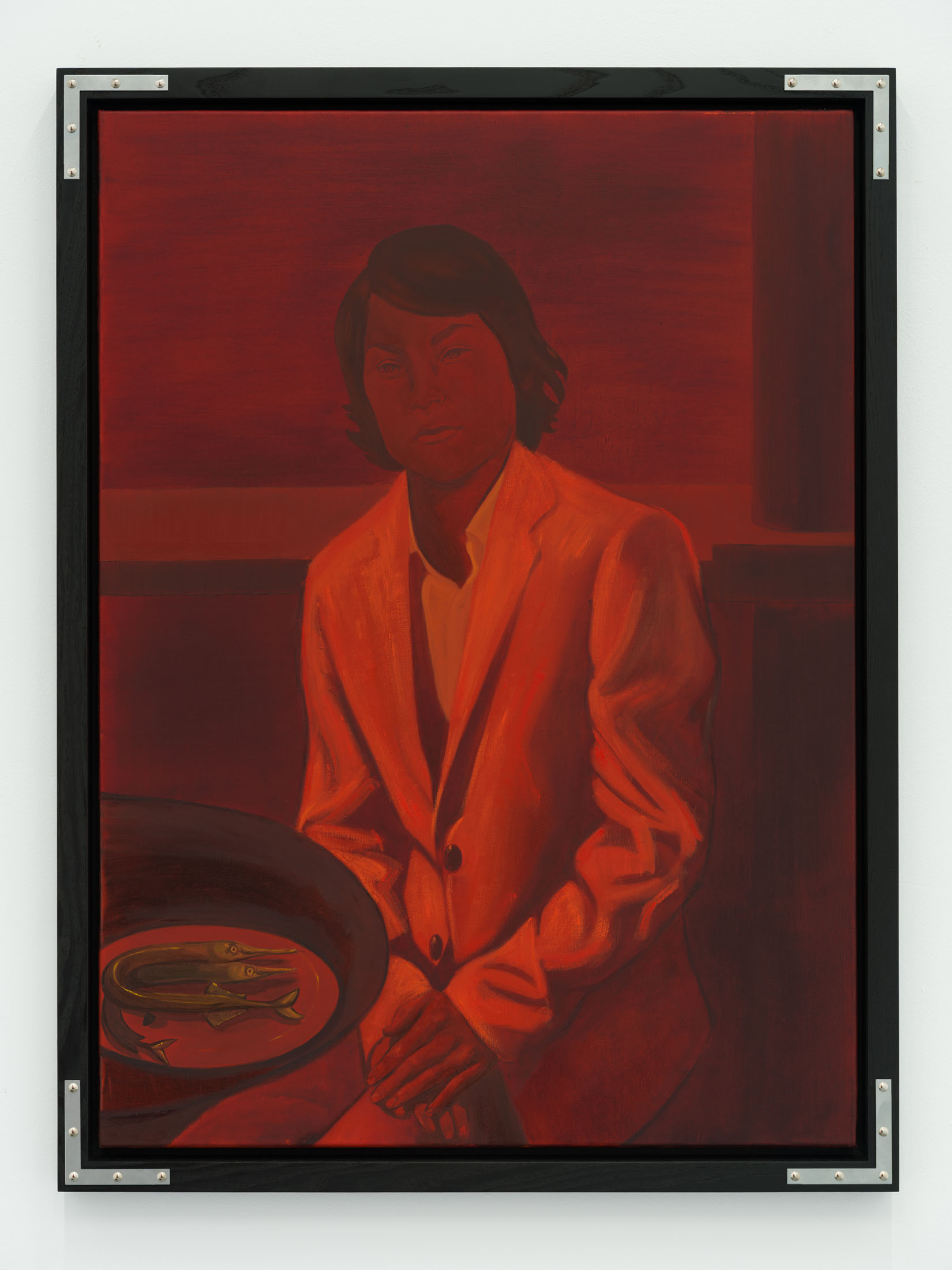 The portraits often juxtapose human subjects with incongruous elements: a sardine tin, a plate of garfish, a faintly visible Byzantine icon. These combinations point toward an inner world shaped by memory, technology, and absence—suggesting landscapes where Google Maps and private recollection overlap. Semeniuc’s characters seem caught in a perpetual search for new forms of socio-spiritual life, navigating between nostalgia and transformation.