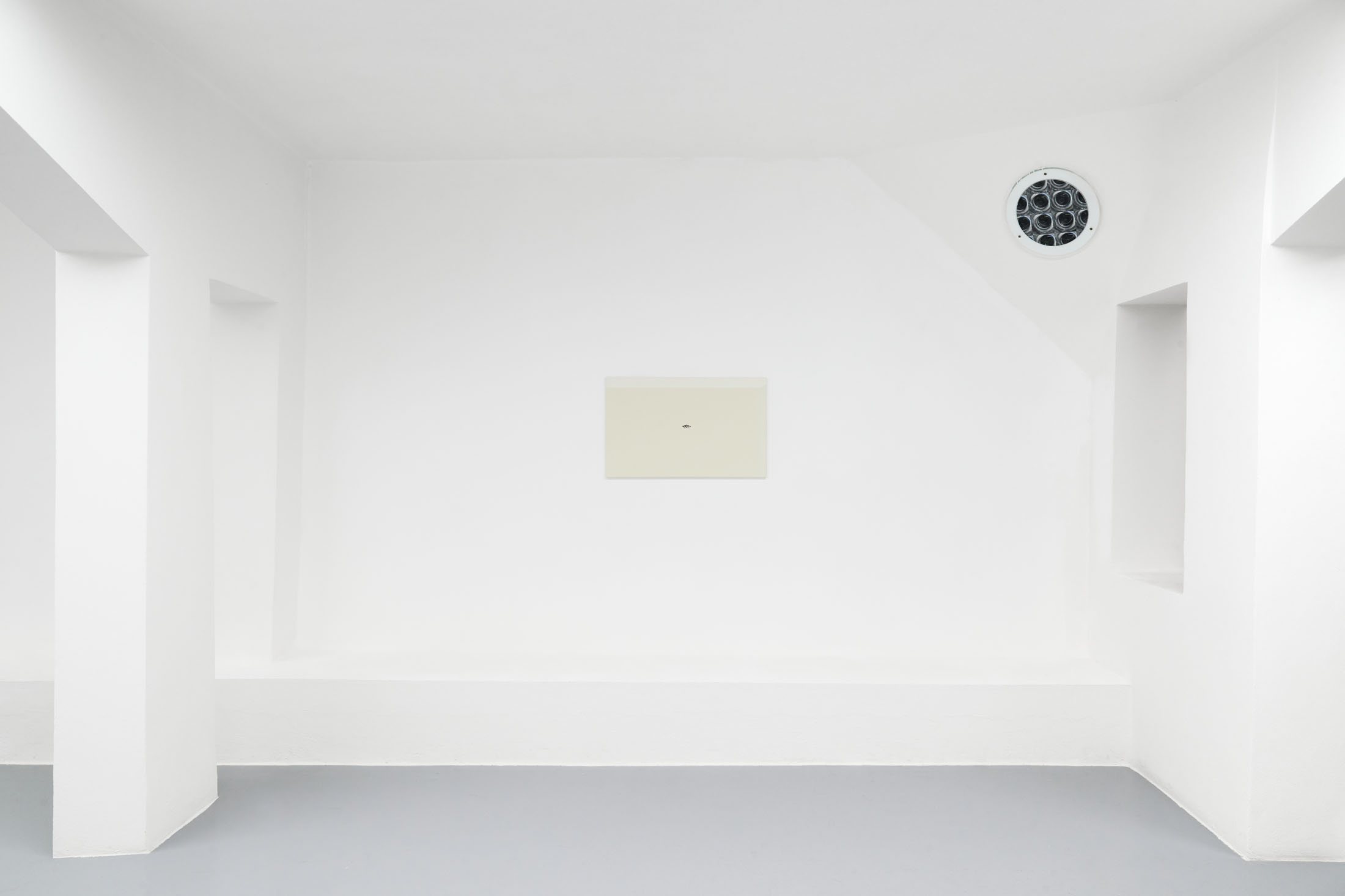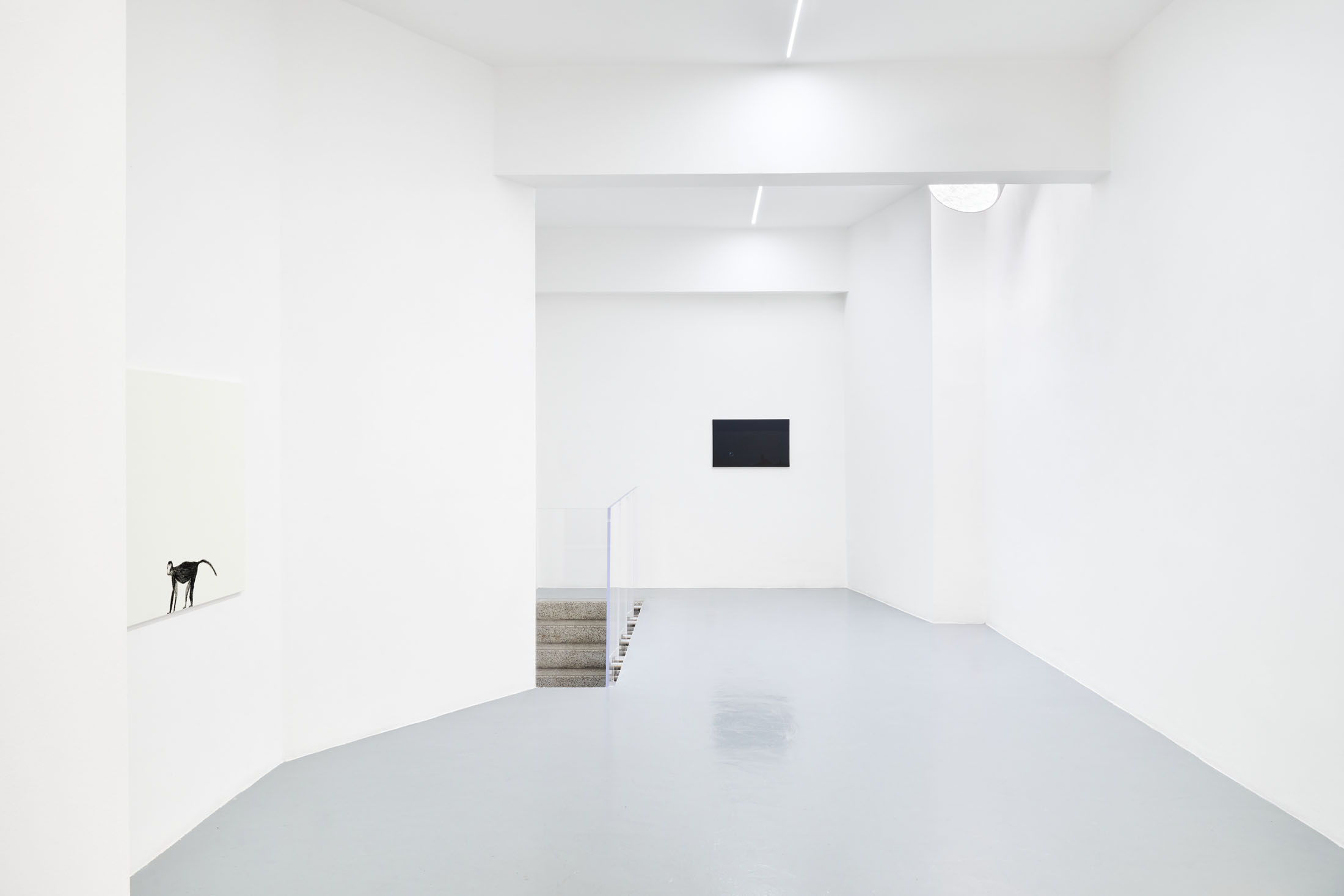 To introduce the exhibition, I would like to start with a very first consideration. Montanelli’s practice could be described as a search for the necessity of form as the voice of things: an obstinate exploration through frankness and disillusionment. In this sense, his painting is essential, even self-referential at times. The stillness of the geometries it balances, their compositional rigour, the innate rather than perspectival frontality of its images, as well as the fullness of the solid-coloured backgrounds, may lead one to discern in it a painting that offers itself transparently, without mediation. An instantaneous painting. Or again: an arithmetic language with a reluctance towards emotion. But to break this self-evidence, this totality to which his works seem to aspire, is to discover an unexpected norm at the heart of this crystalline system. It invites us to consider the possibility that Montanelli’s painting is grounded on a state of ambiguity that resembles a tale or a dream rather than an axiom.