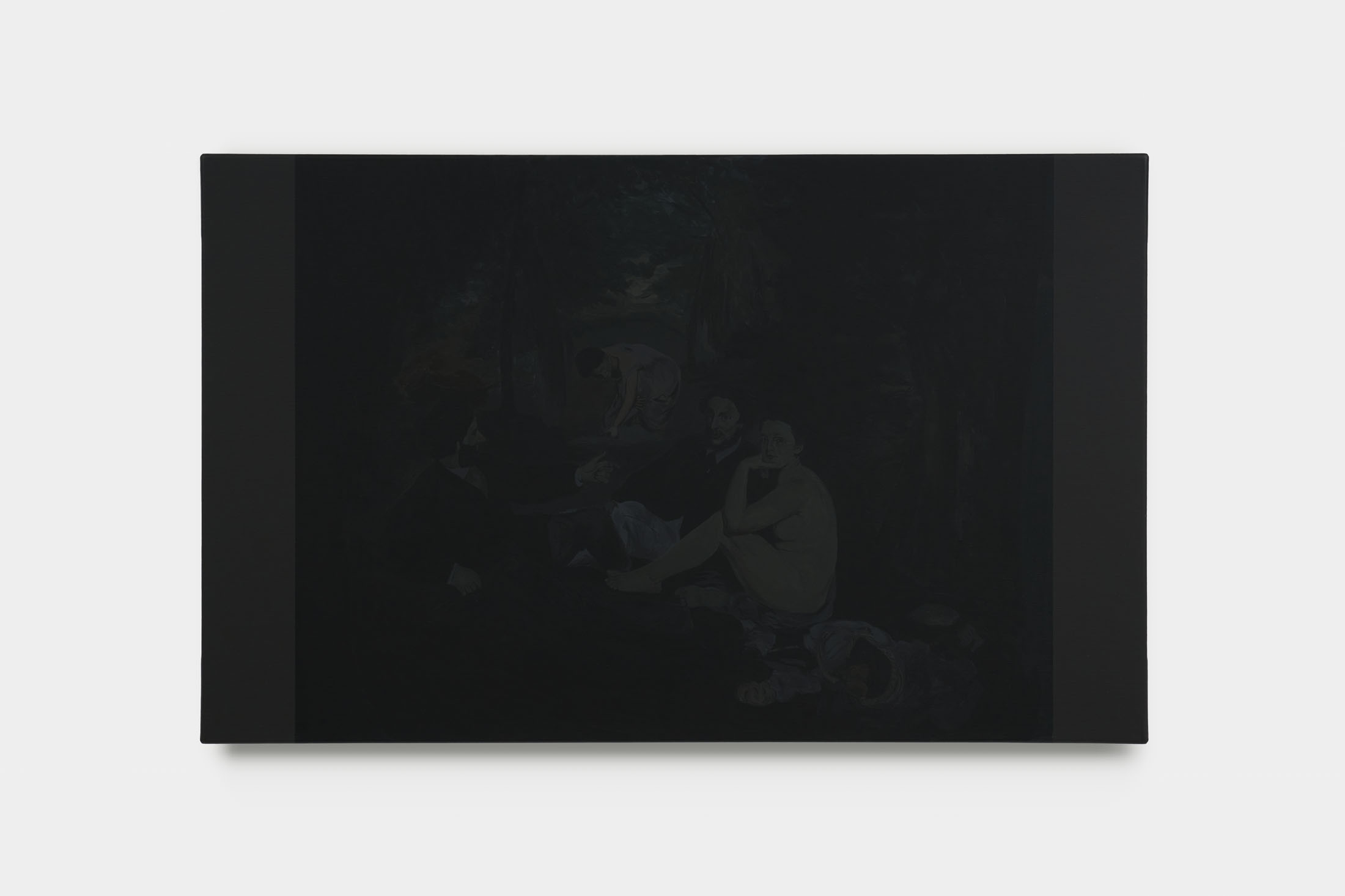 Lastly, his images denote a consonance between the interchangeability of the signifier and the inevitability of choice. An assonance which can be glimpsed in the characters which emerge from his paintings: a soap bubble, two moths, Manet. Such appearances are closer to the realm of the exorbitant than to that of the symbol or the clue. An excess of realism inherent in figures that, although served in mimetic uniform, exist solely in that rhythmic pattern of planes that fixes them, without shadow, between surface and abyss.