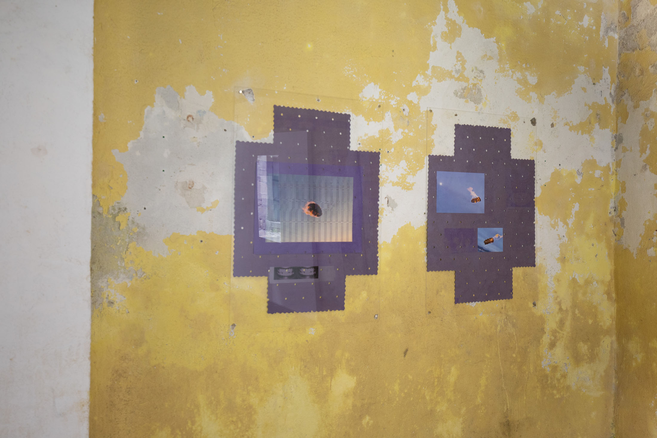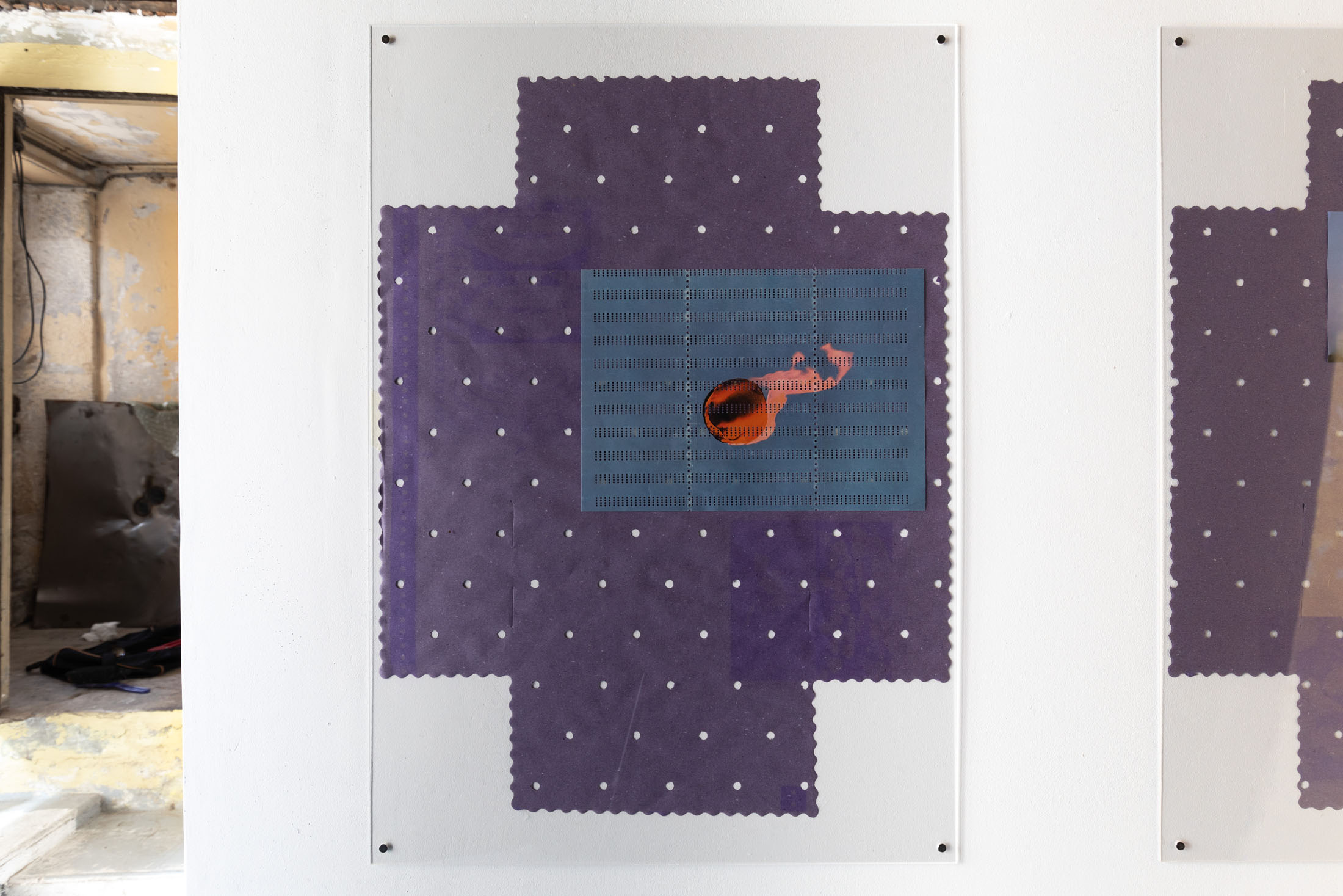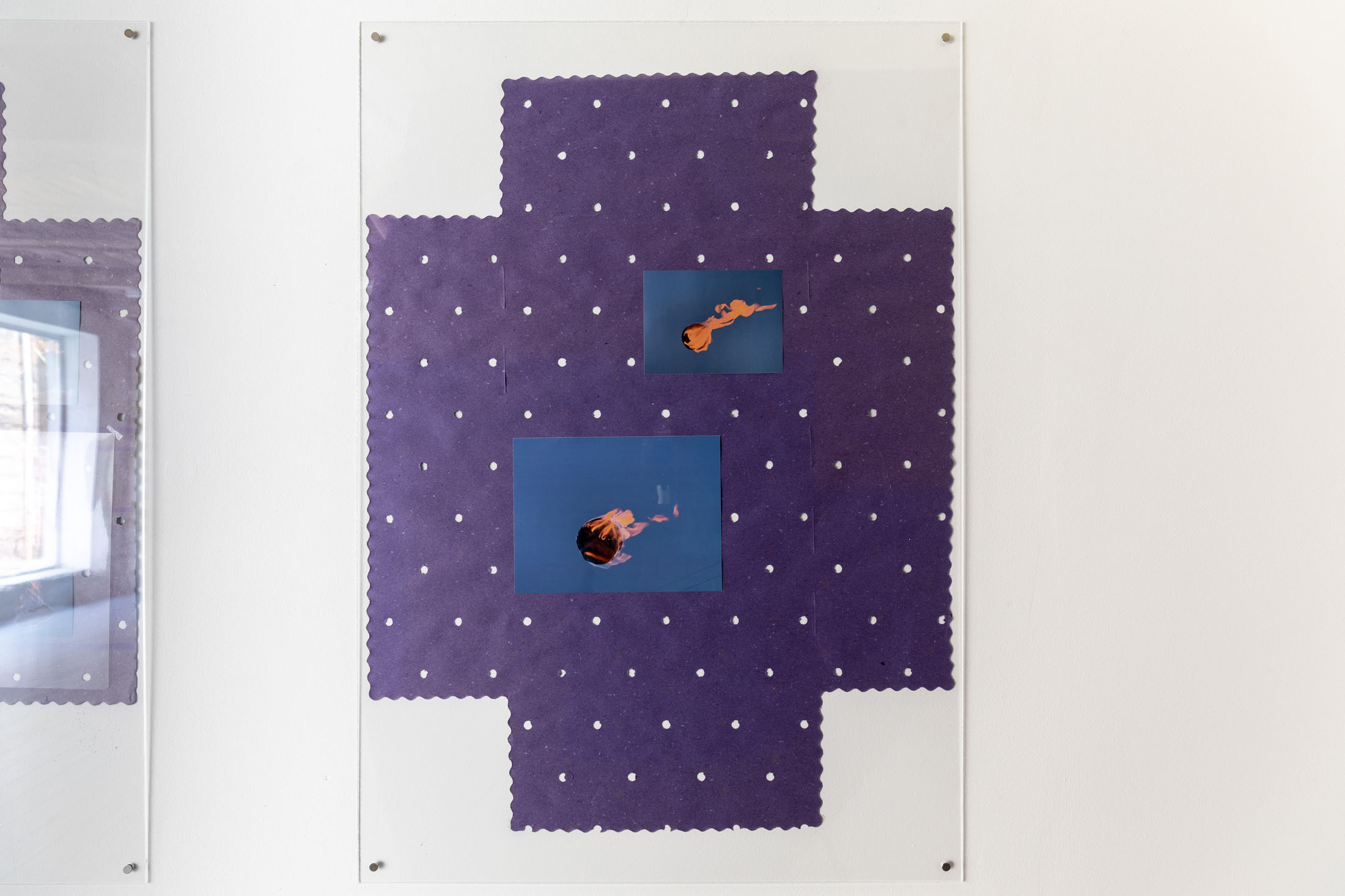 These images also deliberately recall John Baldessari’s series of photographs presenting his most successful attempts to throw three balls in the air in a straight line (Throwing three balls in the air to get a straight line (Best of thirty-six attempts), 1973). Beyond the humorous tone, it reflects the gap between the concept of a work and its realisation, involving a whole host of factors including luck and the weather. Gina Proenza’s pieces, while evoking the legacy of minimalist and conceptual art, are permeated by contingency and embrace variation, thus undermining any form of certainty about the world and art. The way in which these compositions shift images from one medium to another, incorporating other images and papers found during the process, makes them plastic objects of research. The question is always what to do with images and what to do with predictions.