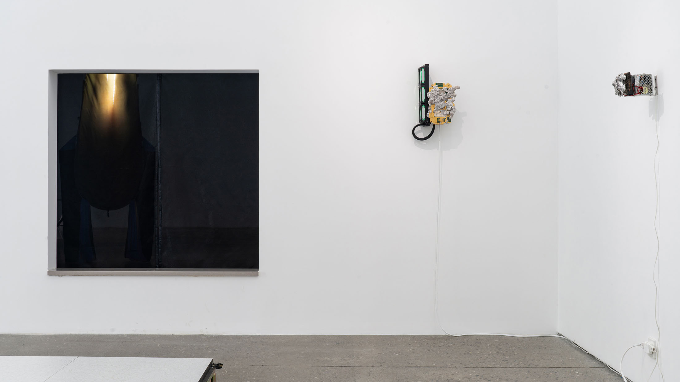 The exhibition space is divided into two distinct yet interconnected scenarios: an uncanny data center and a peculiar outdoor field. Separated by a partition wall yet linked by a window, creatures passing between these two spaces may experience a blurring and dislocation of subjectivity.