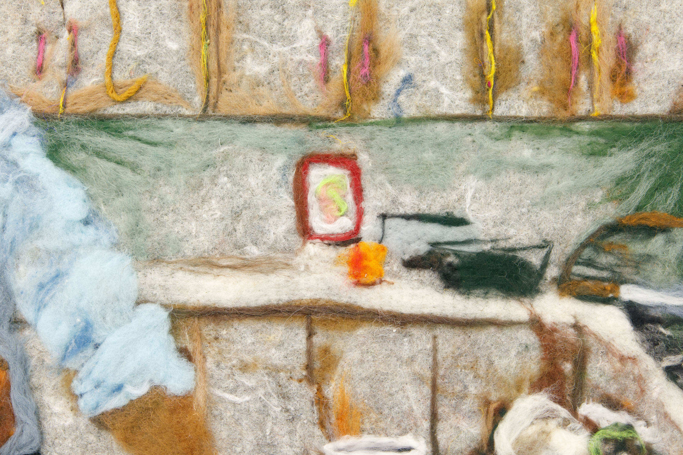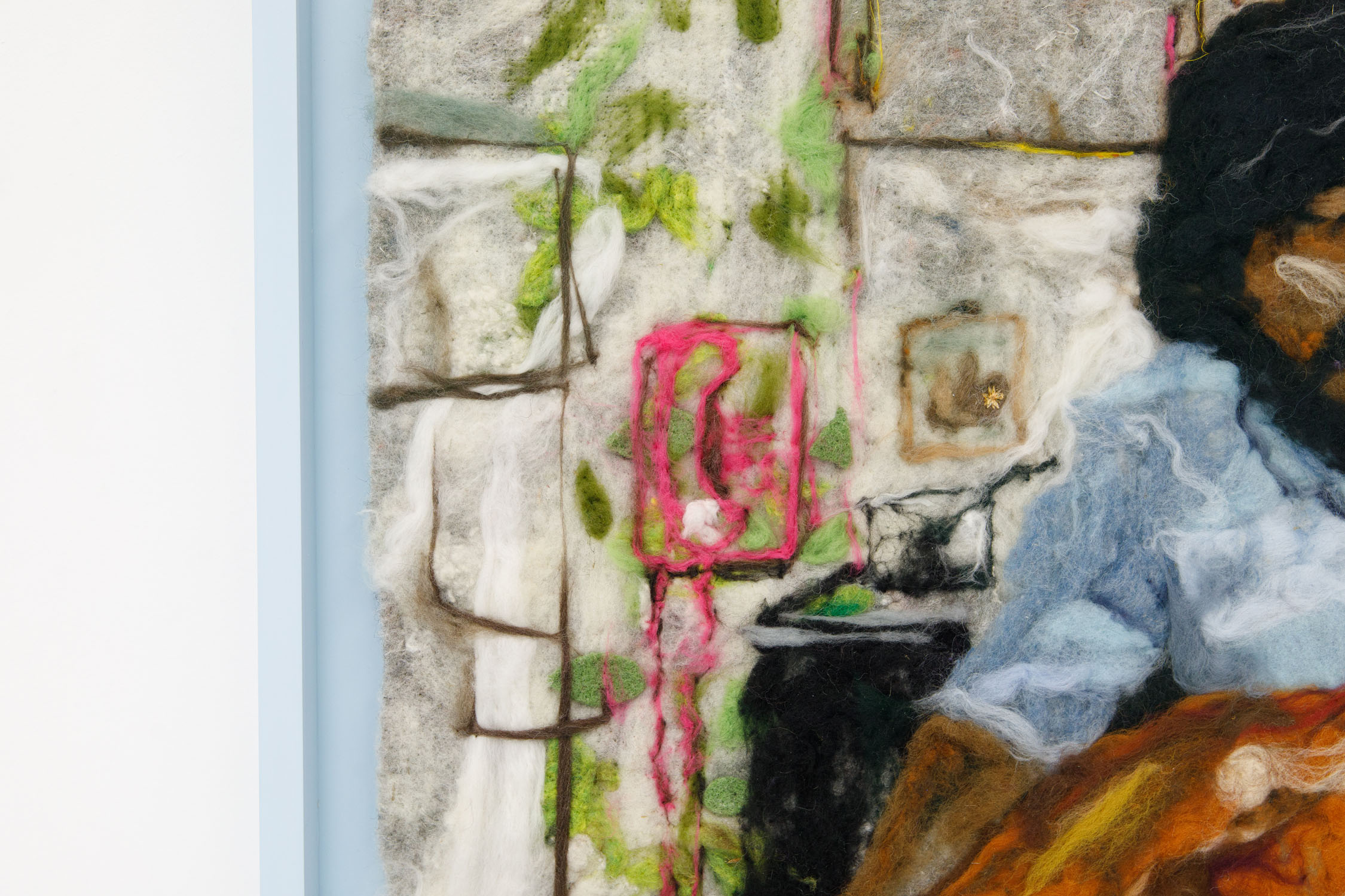 Working across felting, quilting, and stitched compositions, Amiri and Joseph translate personal and collective histories into tactile landscapes. Dissolving the boundaries between past and present, evoking the fragility of memory and the tenderness of its recall. Both artists create artworks which construct fragmented geographies, where domestic and cultural spaces are stitched together like remnants of a life in motion. Theirs is a language of touch. Through the slow gestures of making—pressing fiber, pulling thread, assembling cloth— Amiri and Joseph preserve moments otherwise ephemeral. Like recipes passed down in family kitchens, both artists’ works hold the textures of home, migration, and longing, carrying forward the imprint of what was.