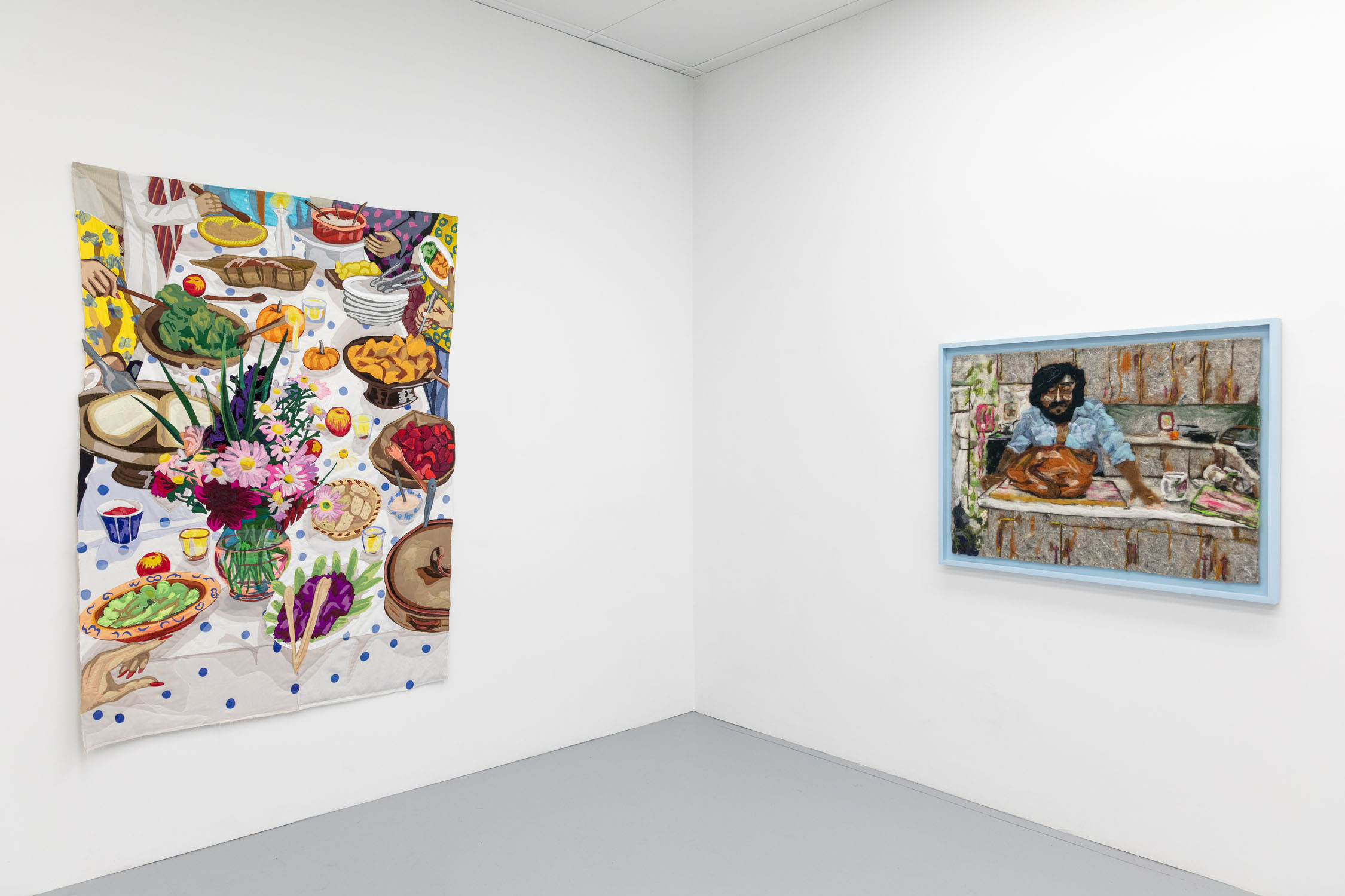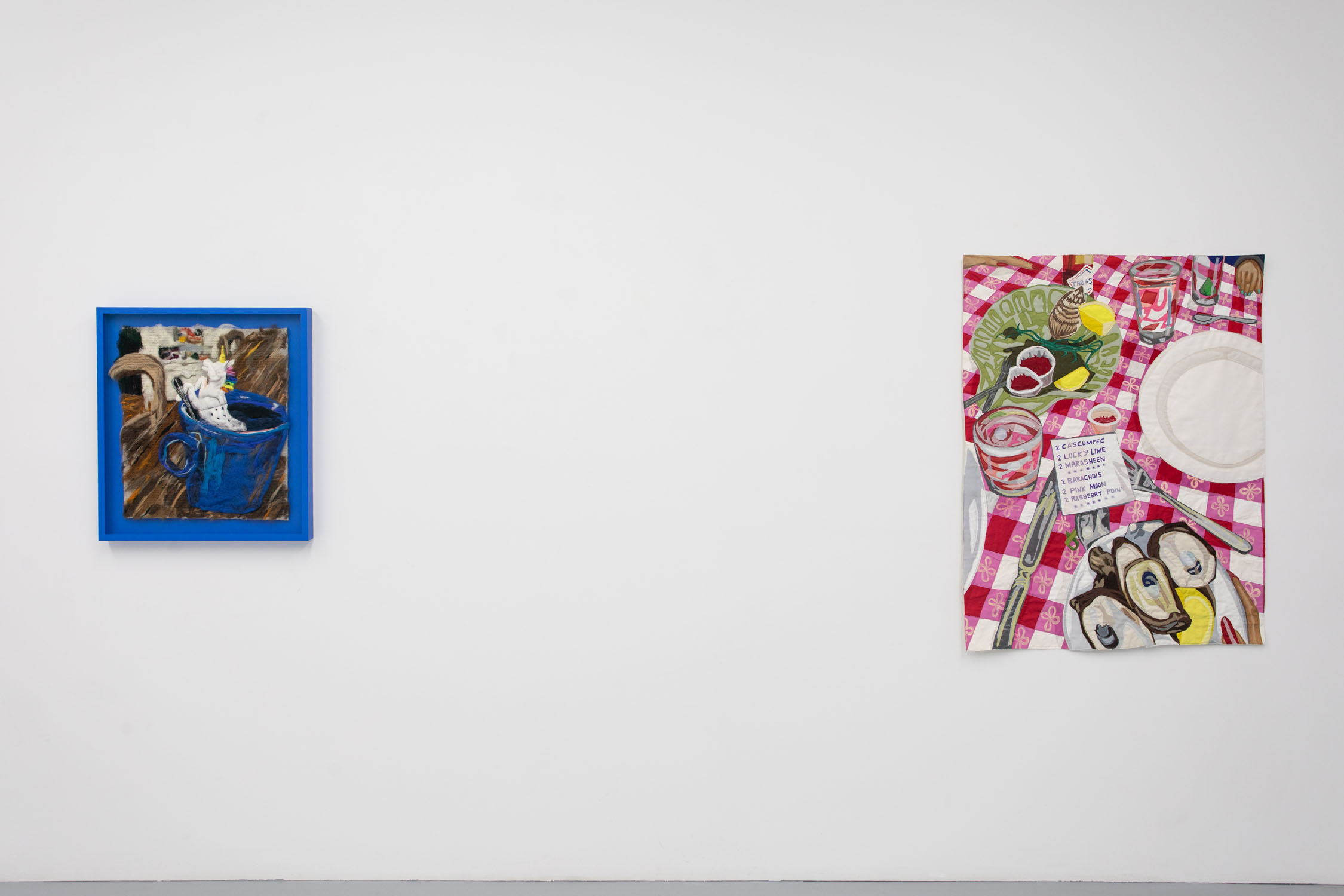 Hangama Amiri & Melissa Joseph, Gathering, 2025, exhibition view, COOPER COLE, TorontoHangama Amiri & Melissa Joseph, Gathering, 2025, exhibition view, COOPER COLE, TorontoHangama Amiri & Melissa Joseph, Gathering, 2025, exhibition view, COOPER COLE, TorontoHangama Amiri & Melissa Joseph, Gathering, 2025, exhibition view, COOPER COLE, TorontoHangama Amiri & Melissa Joseph, Gathering, 2025, exhibition view, COOPER COLE, TorontoHangama Amiri & Melissa Joseph, Gathering, 2025, exhibition view, COOPER COLE, TorontoHangama Amiri & Melissa Joseph, Gathering, 2025, exhibition view, COOPER COLE, TorontoHangama Amiri & Melissa Joseph, Gathering, 2025, exhibition view, COOPER COLE, TorontoHangama Amiri & Melissa Joseph, Gathering, 2025, exhibition view, COOPER COLE, TorontoHangama Amiri & Melissa Joseph, Gathering, 2025, exhibition view, COOPER COLE, TorontoHangama Amiri, Still-life with Almonds on Afghan T extile, 2022, Colour pencil on paper, 14 (H) x 11 (W) inches, 35 (H) x 27 (W) cmHangama Amiri, The Dinner Table, 2024, Denim, cotton, chiffon, linen, muslin, silk, dye canvas, polyester, gauze, velvet, mesh polyester, and Jack Lenor Larson fabrics, 77½ (H) x 55 (W) inches, 196 (H) x 139 (W) cmHangama Amiri, The Dinner Table, 2024, Denim, cotton, chiffon, linen, muslin, silk, dye canvas, polyester, gauze, velvet, mesh polyester, and Jack Lenor Larson fabrics, 77½ (H) x 55 (W) inches, 196 (H) x 139 (W) cmHangama Amiri, The Dinner Table, 2024, Denim, cotton, chiffon, linen, muslin, silk, dye canvas, polyester, gauze, velvet, mesh polyester, and Jack Lenor Larson fabrics, 77½ (H) x 55 (W) inches, 196 (H) x 139 (W) cmHangama Amiri, The Dinner Table, 2024, Denim, cotton, chiffon, linen, muslin, silk, dye canvas, polyester, gauze, velvet, mesh polyester, and Jack Lenor Larson fabrics, 77½ (H) x 55 (W) inches, 196 (H) x 139 (W) cmHangama Amiri, The Dinner Table, 2024, Denim, cotton, chiffon, linen, muslin, silk, dye canvas, polyester, gauze, velvet, mesh polyester, and Jack Lenor Larson fabrics, 77½ (H) x 55 (W) inches, 196 (H) x 139 (W) cmHangama Amiri, Still-life with Oysters and Lucky Lime, 2025, Muslin, cotton, polyester, chiffon, silk, linen, color-pencil, blockprint and acrylic paint on fabric, 48 (H) x 36 (W) inches, 121 (H) x 91 (W) cmHangama Amiri, Still-life with Oysters and Lucky Lime, 2025, Muslin, cotton, polyester, chiffon, silk, linen, color-pencil, blockprint and acrylic paint on fabric, 48 (H) x 36 (W) inches, 121 (H) x 91 (W) cmHangama Amiri, Still-life with Oysters and Lucky Lime, 2025, Muslin, cotton, polyester, chiffon, silk, linen, color-pencil, blockprint and acrylic paint on fabric, 48 (H) x 36 (W) inches, 121 (H) x 91 (W) cmHangama Amiri, Still-life with Oysters and Lucky Lime, 2025, Muslin, cotton, polyester, chiffon, silk, linen, color-pencil, blockprint and acrylic paint on fabric, 48 (H) x 36 (W) inches, 121 (H) x 91 (W) cmHangama Amiri, Still-life with Oysters and Lucky Lime, 2025, Muslin, cotton, polyester, chiffon, silk, linen, color-pencil, blockprint and acrylic paint on fabric, 48 (H) x 36 (W) inches, 121 (H) x 91 (W) cmMelissa Joseph, My favourite Appam (and Idli) Wallah, 2022, Needle felted wool on industrial felt in found uniappam mold, 3 (H) x 10 (W) inches, 7 (H) x 25 (W) cmMelissa Joseph, My favourite Appam (and Idli) Wallah, 2022, Needle felted wool on industrial felt in found uniappam mold, 3 (H) x 10 (W) inches, 7 (H) x 25 (W) cmMelissa Joseph, My favourite Appam (and Idli) Wallah, 2022, Needle felted wool on industrial felt in found uniappam mold, 3 (H) x 10 (W) inches, 7 (H) x 25 (W) cmMelissa Joseph, My favourite Appam (and Idli) Wallah, 2022, Needle felted wool on industrial felt in found uniappam mold, 3 (H) x 10 (W) inches, 7 (H) x 25 (W) cmMelissa Joseph, My favourite Appam (and Idli) Wallah, 2022, Needle felted wool on industrial felt in found uniappam mold, 3 (H) x 10 (W) inches, 7 (H) x 25 (W) cmMelissa Joseph, Olive’s Unicorn T ea, 2025, Needle felted wool on industrial felt, 19 (H) x 23 (W) inches, 48 (H) x 58 (W) cmMelissa Joseph, Olive’s Unicorn T ea, 2025, Needle felted wool on industrial felt, 19 (H) x 23 (W) inches, 48 (H) x 58 (W) cmMelissa Joseph, Olive’s Unicorn T ea, 2025, Needle felted wool on industrial felt, 19 (H) x 23 (W) inches, 48 (H) x 58 (W) cmMelissa Joseph, Olive’s Unicorn T ea, 2025, Needle felted wool on industrial felt, 19 (H) x 23 (W) inches, 48 (H) x 58 (W) cmMelissa Joseph, Olive’s Unicorn T ea, 2025, Needle felted wool on industrial felt, 19 (H) x 23 (W) inches, 48 (H) x 58 (W) cmMelissa Joseph, Olive’s Unicorn T ea, 2025, Needle felted wool on industrial felt, 19 (H) x 23 (W) inches, 48 (H) x 58 (W) cmMelissa Joseph, Thanksgiving 1986, 2025, Needle felted wool and recycled sari silk, 31 (H) x 45 (W) inches, 78 (H) x 114 (W) cmMelissa Joseph, Thanksgiving 1986, 2025, Needle felted wool and recycled sari silk, 31 (H) x 45 (W) inches, 78 (H) x 114 (W) cmMelissa Joseph, Thanksgiving 1986, 2025, Needle felted wool and recycled sari silk, 31 (H) x 45 (W) inches, 78 (H) x 114 (W) cmMelissa Joseph, Thanksgiving 1986, 2025, Needle felted wool and recycled sari silk, 31 (H) x 45 (W) inches, 78 (H) x 114 (W) cmMelissa Joseph, Thanksgiving 1986, 2025, Needle felted wool and recycled sari silk, 31 (H) x 45 (W) inches, 78 (H) x 114 (W) cmMelissa Joseph, Thanksgiving 1986, 2025, Needle felted wool and recycled sari silk, 31 (H) x 45 (W) inches, 78 (H) x 114 (W) cmMelissa Joseph, Thanksgiving 1986, 2025, Needle felted wool and recycled sari silk, 31 (H) x 45 (W) inches, 78 (H) x 114 (W) cmMelissa Joseph, Thanksgiving 1986, 2025, Needle felted wool and recycled sari silk, 31 (H) x 45 (W) inches, 78 (H) x 114 (W) cmMelissa Joseph, Uncle Bill and his midget whites, 2025, Needle felted wool on industrial felt in found silver plate, 17 inchesMelissa Joseph, Uncle Bill and his midget whites, 2025, Needle felted wool on industrial felt in found silver plate, 17 inchesMelissa Joseph, Uncle Bill and his midget whites, 2025, Nee