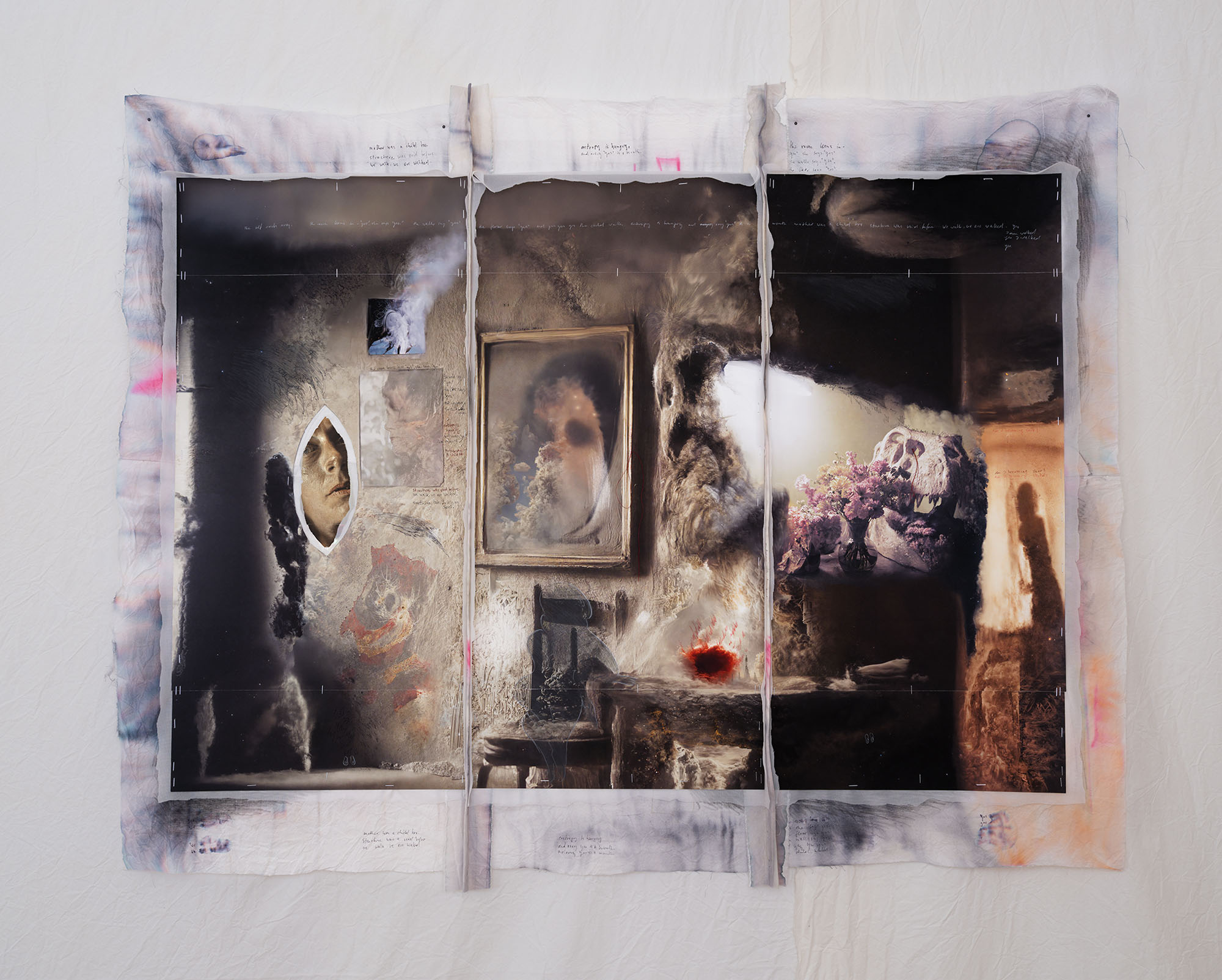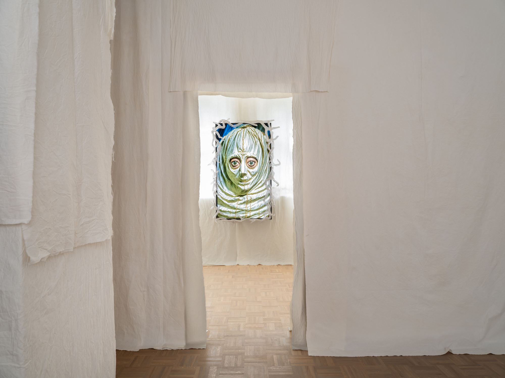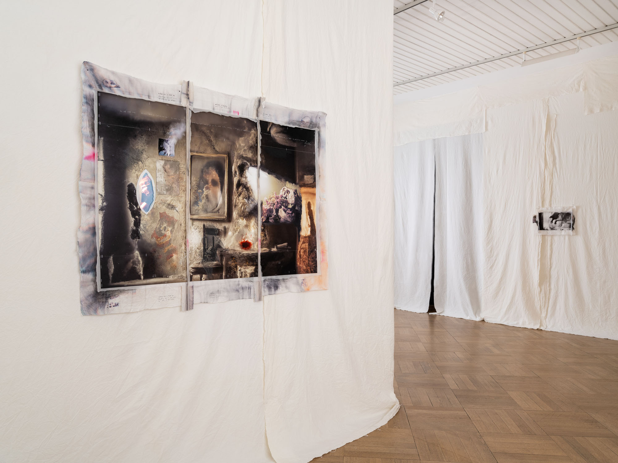 Hedda Roman, Test Time 9, 2025, Inkjet print, fabric, 39,7 x 31 cm, Courtesy of the artists. Photo: Fred Dott.Hedda Roman, Test Time 9, 2025, Inkjet print, fabric, 39,7 x 31 cm, Courtesy of the artists. Photo: Fred Dott.Hedda Roman, Test Time 9, 2025, Inkjet print, fabric, 39,7 x 31 cm, Courtesy of the artists. Photo: Fred Dott.Hedda Roman, Test Time 7, 2025, Inkjet print, fabric, 39,74 x 52 cm, Courtesy of the artists. Photo: Fred Dott.Hedda Roman, Test Time 6, 2025, Inkjet print, fabric, 70 x 52 cm, Courtesy of the artists. Photo: Fred Dott.Hedda Roman, I left something in the woods, 2025, Video-Loop, 4’06”, Music by DECHA, Courtesy of the artists. Photo: Fred DottHedda Roman, I left something in the woods, 2025, Video-Loop, 4’06”, Music by DECHA, Courtesy of the artists. Photo: Fred DottHedda Roman, Test Time 2, 2025, nkjet print, fabric, screens, 168 x 254 cm, Courtesy of the artists. Photo: Fred DottHedda Roman, Test Time, 2025, exhibition view, Kunstverein Bielefeld, Courtesy of the artists. Photo: Fred Dott.Hedda Roman, Test Time 5, 2025, Inkjet print, fabric, screens, 98 x 136 cm, Courtesy of the artists. Photo: Fred DottHedda Roman, Test Time 5, 2025, Inkjet print, fabric, screens, 98 x 136 cm, Courtesy of the artists. Photo: Fred DottHedda Roman, Test Time, 2025, exhibition view, Kunstverein Bielefeld, Courtesy of the artists. Photo: Fred Dott.Hedda Roman, Test Time, 2025, exhibition view, Kunstverein Bielefeld, Courtesy of the artists. Photo: Fred Dott.Hedda Roman, Test Time 10, 2025, Inkjet print, fabric, screens, 52 x 70 cm, Courtesy of the artists. Photo: Fred DottHedda Roman, Test Time 10, 2025, Inkjet print, fabric, screens, 52 x 70 cm, Courtesy of the artists. Photo: Fred DottHedda Roman, Test Time 31, 2025, inkjet print, fabric, screens, 130 x 162 cm, Courtesy of the artists. Photo: Fred DottHedda Roman, Pandemonium, 2024, Animated video, 16′, Courtesy of the artists. Photo: Fred DottHedda Roman, Pandemonium, 2024, Animated video, 16′, Courtesy of the artists. Photo: Fred DottHedda Roman, Test Time 1 – Before you reach, what moved?, 2025, Inkjet print, wenzhou rice paper, fabric, textile, 185 x 139 cm, Courtesy of the artists & Sies + Höke, Düsseldorf. Photo: Fred DottHedda Roman, Test Time 1 – Before you reach, what moved?, 2025, Inkjet print, wenzhou rice paper, fabric, textile, 185 x 139 cm, Courtesy of the artists & Sies + Höke, Düsseldorf. Photo: Fred DottHedda Roman, Test Time 26, 2025, Inkjet print, fabric, 124 x 94,5 cm, Courtesy of the artists. Photo: Fred DottHedda Roman, Test Time 35, 2025, Inkjet print, fabric, 70 x 50 cm, Courtesy of the artists. Photo: Fred DottHedda Roman, Test Time, 2025, exhibition view, Kunstverein Bielefeld, Courtesy of the artists. Photo: Fred Dott.Hedda Roman, Oldboy – Chapter I: The most useless fossil, 2025, Generative interactive process, camera, typewriter, computer, paper, Variable, Courtesy of the artists. Photo: Fred DottHedda Roman, Oldboy – Chapter I: The most useless fossil, 2025, Generative interactive process, camera, typewriter, computer, paper, Variable, Courtesy of the artists. Photo: Fred DottHedda Roman, Test Time 36, 2025, Inkjet print, fabric, 52 x 70 cm, Courtesy of the artists. Photo: Fred Dott