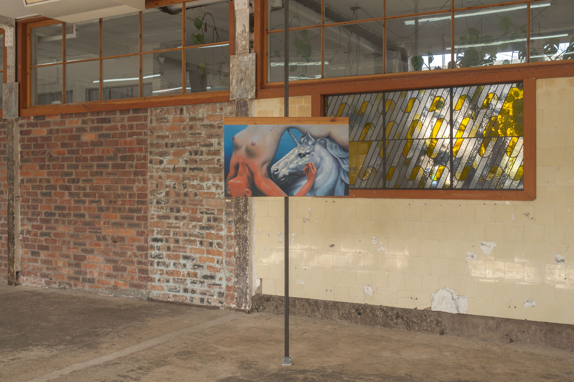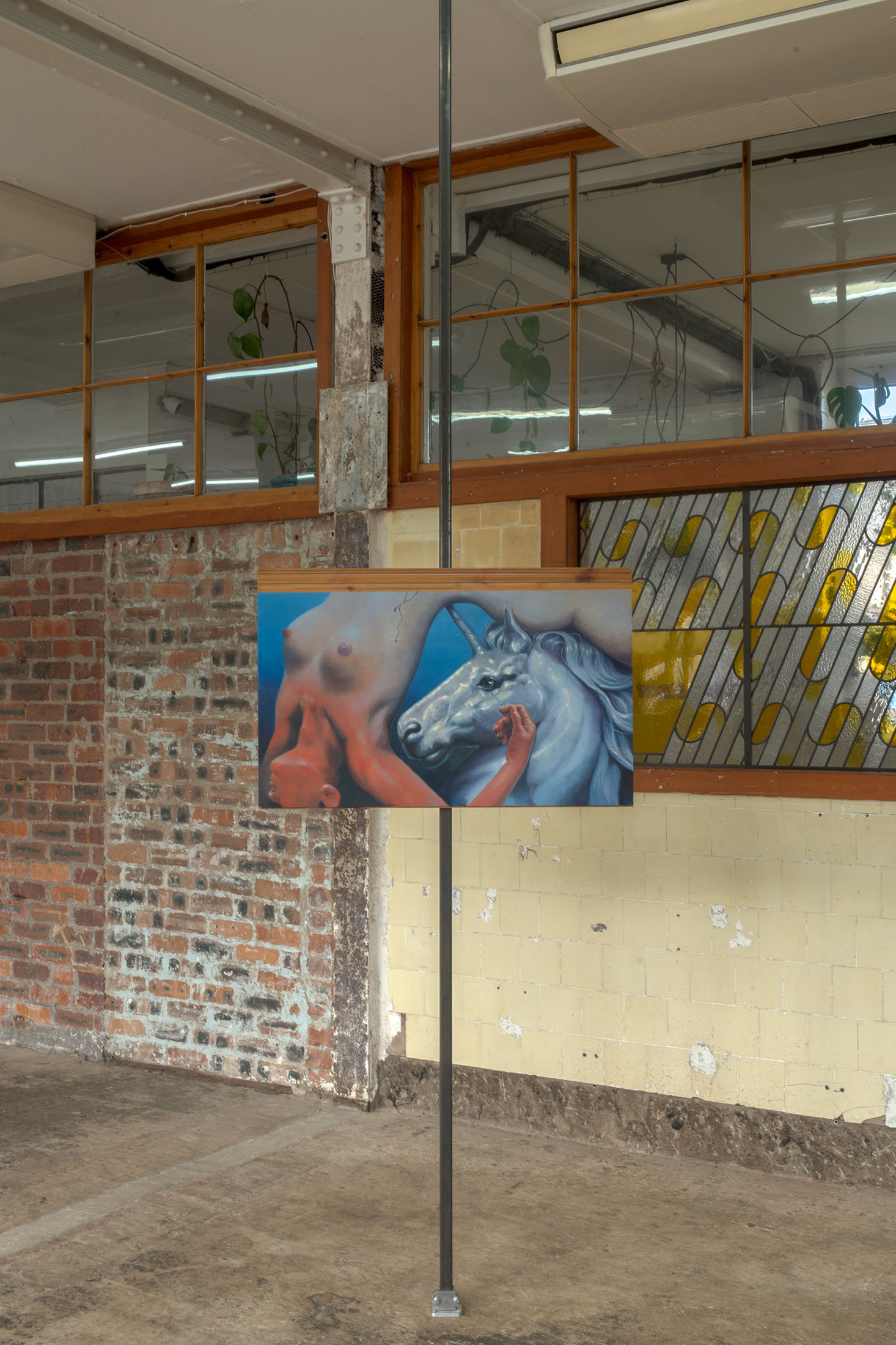Reluctant murder and forgiveness? A tearful attack. Wooden wardrobe panel and domestic fantasy. Perhaps the abuser loved its victim. Curse- dealing, the vicious cycle. She says unicorns used to impale impure women. This painting holds most dear to the dream realm she has created.