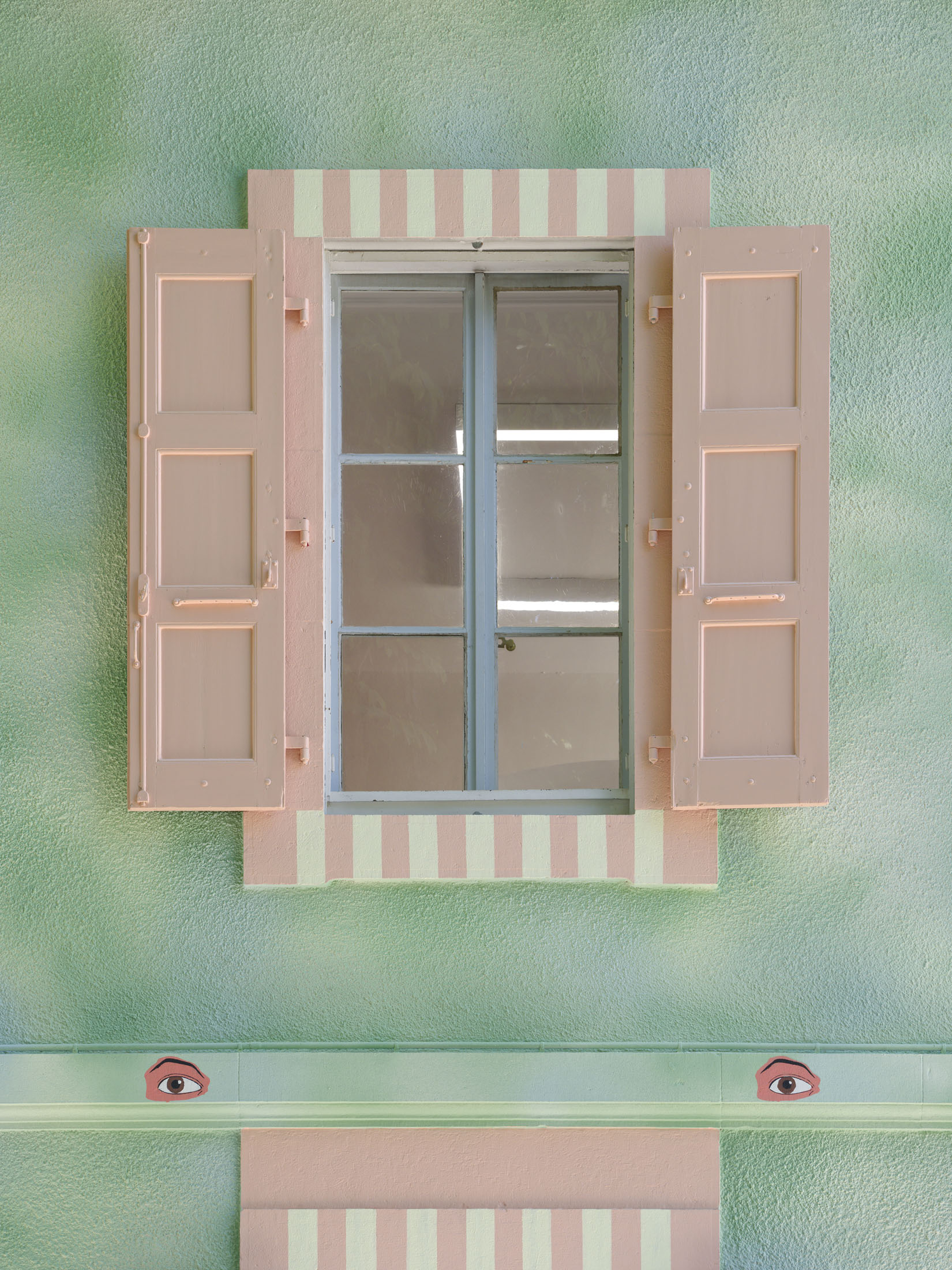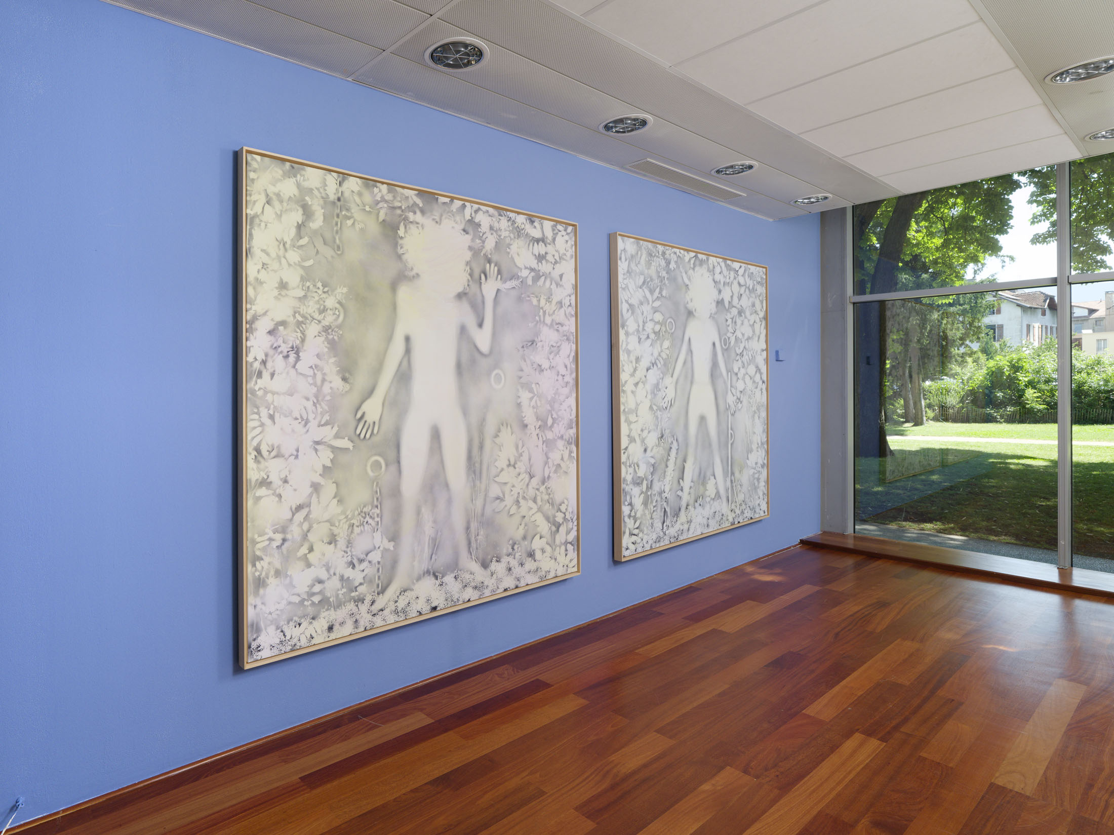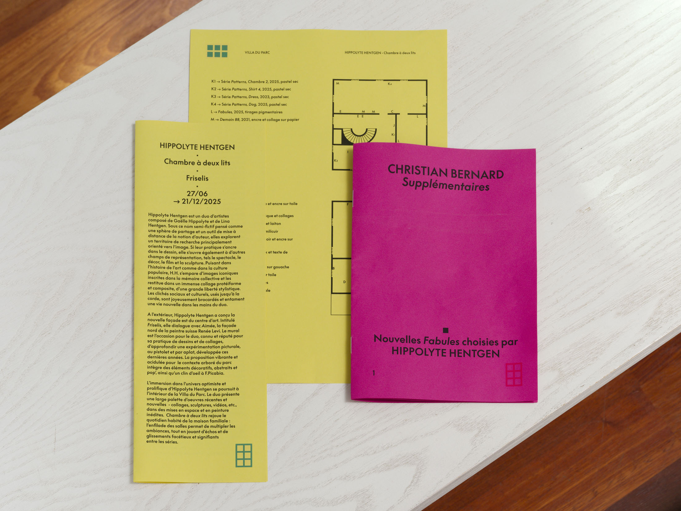 The Villa du Parc presents a large-scale artistic project by the duo Hippolyte Hentgen, formed by French artists Lina Hentgen and Gaëlle Hippolyte. They are designing an in situ production, a monumental outdoor mural for the east facade of the art center, accompanied by a monographic exhibition throughout the interior spaces, entitled “Chambre à deux lits” (Twin Room).