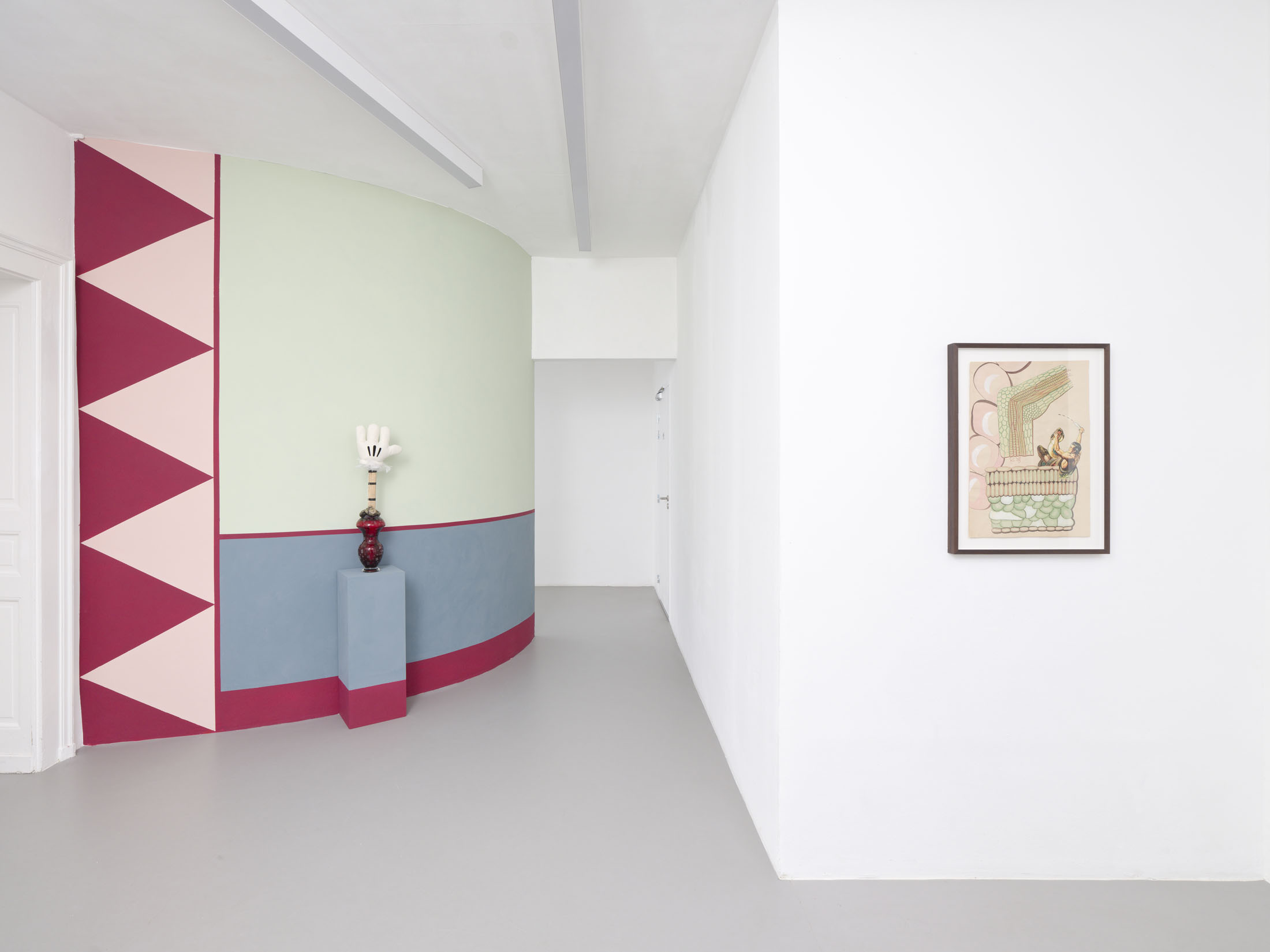 Hippolyte Hentgen is an artist duo formed by Gaëlle Hippolyte and Lina Hentgen. United under this fictitious name, intended as a space for sharing and a means of distancing themselves from the notion of authorship, the two artists explore a field of research primarily focused on the image. While their practice is rooted in drawing, they also venture into other fields of representation, such as performance, set design, film, and sculpture. By appropriating the codes of comic books and press cartoons, they multiply the tones (burlesque, naive) and references (from Jim Shaw to 1930s cartoons, from underground to modernism, from textile motifs to Japanese decorative papers) and revive visual mass culture through shifts and grafts. Drawing on art history and popular culture, they take iconic images from the collective memory and recreate them in a huge, protean, composite collage with great stylistic freedom. Cultural clichés, worn out to the bone, take on a new life under the pen of Hippolyte Hentgen. Through a wide range of media, formats and styles, the work delights the eye and never ceases to surprise with its colorful, funny and sometimes acerbic verve.