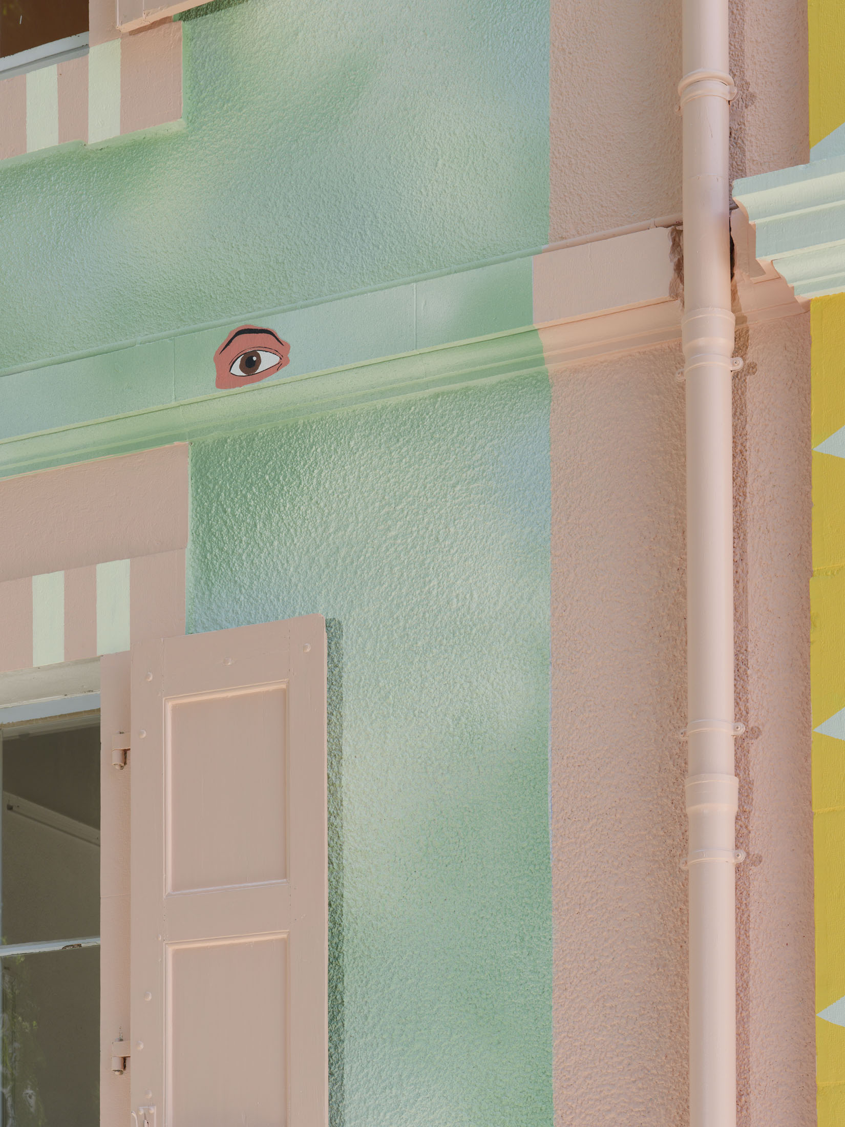 Hippolyte Hentgen’s project was unanimously selected from several designs commissioned from female artists in the French art scene. It is an opportunity for the duo, known and renowned for their drawing and collage work, to further develop their practice of spray-painted and flat-colored murals, which they have been working on in recent years. The jury was won over by their vibrant and colorful proposal in the wooded setting of the park, the interplay of echoes and nods to the architecture through the hybridization of decorative styles, and the optimistic, geometric and pop dynamic of their project, which is in keeping with their long-standing collaborative visual art.