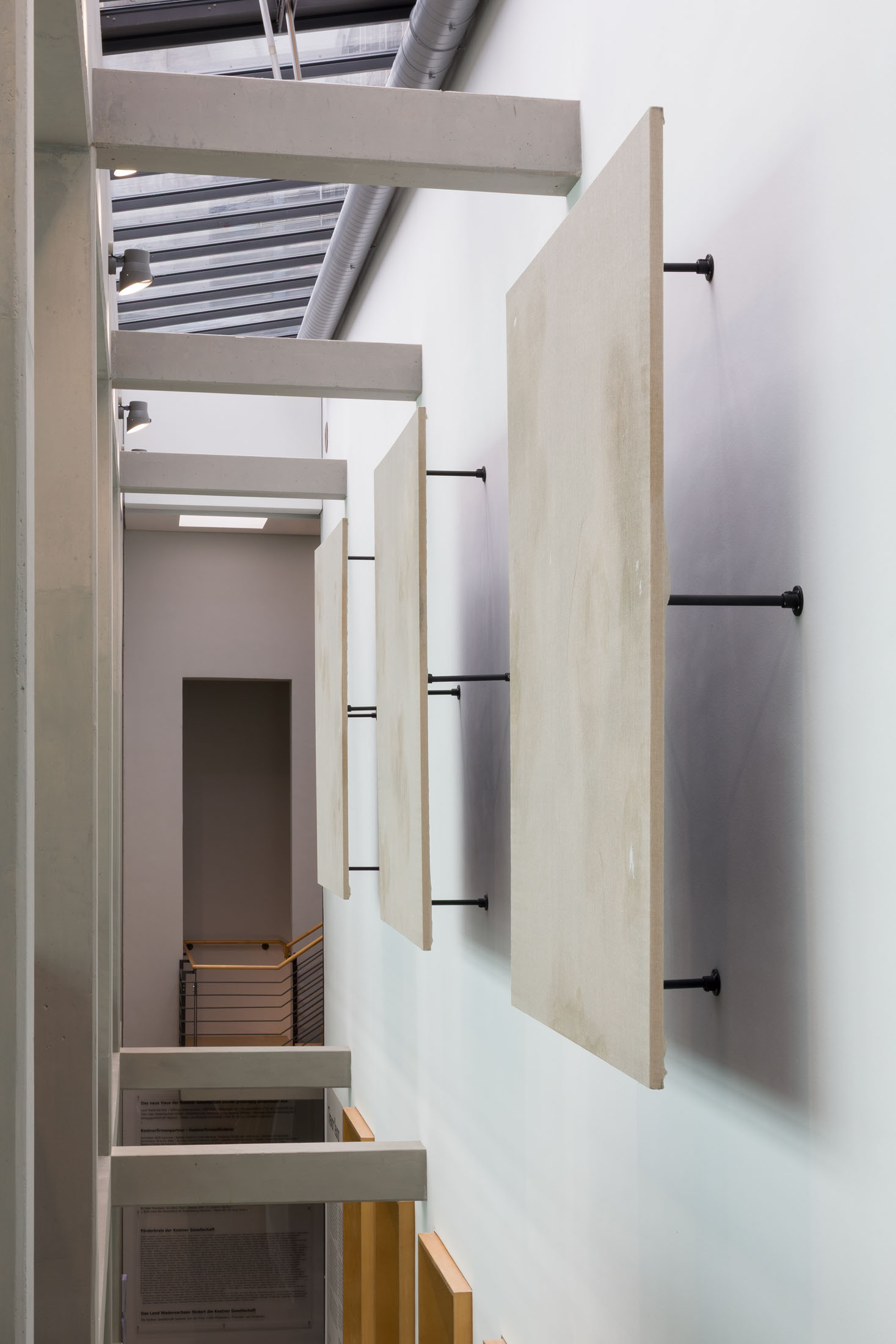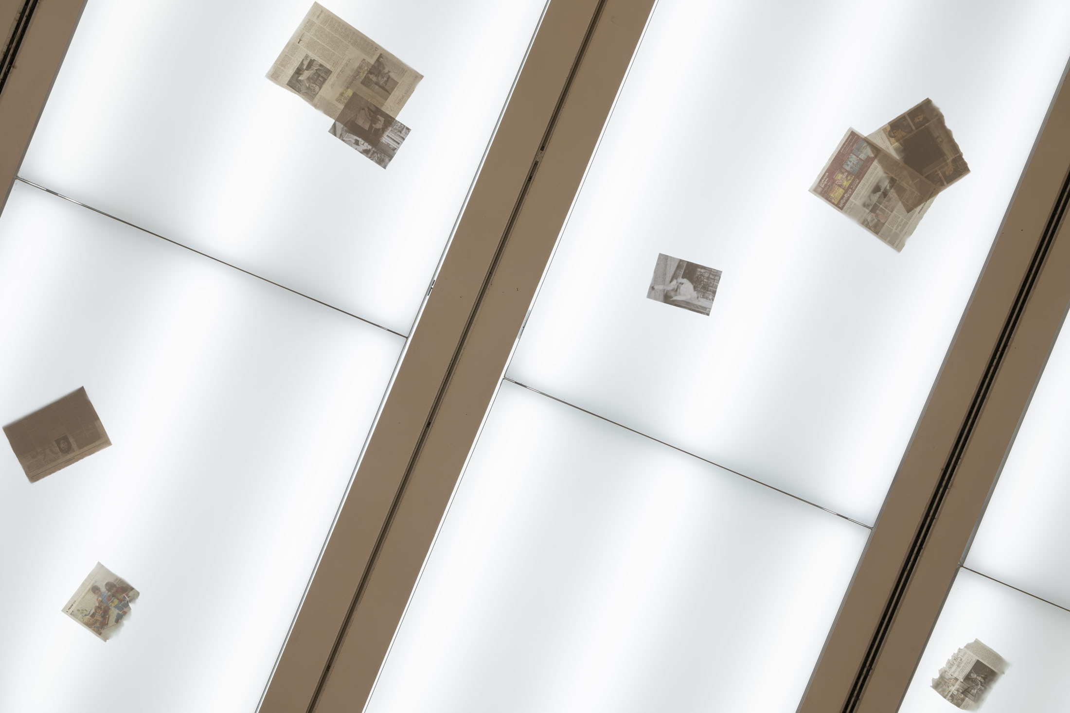 In thereafter, Ian Waelder connects the façade, atrium, and arcade hall of the Kestner Gesellschaft for the first time to form a spatial narrative between inside and outside, past and present. His works begin at the edges of the rememberable: familial traces, biographical fractures, everyday remnants – not as evidence, but as fragile carriers of a story that resists linear narration.