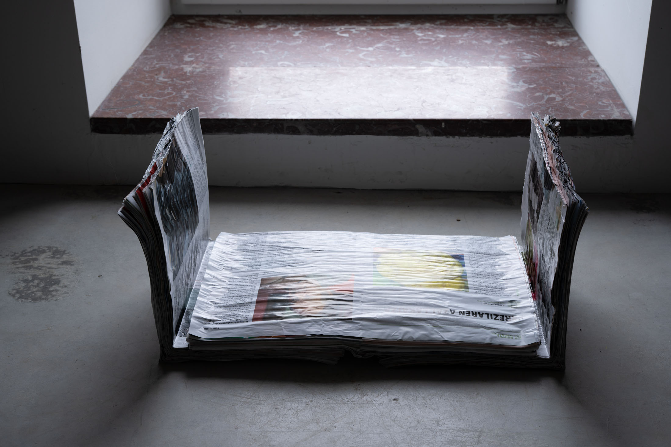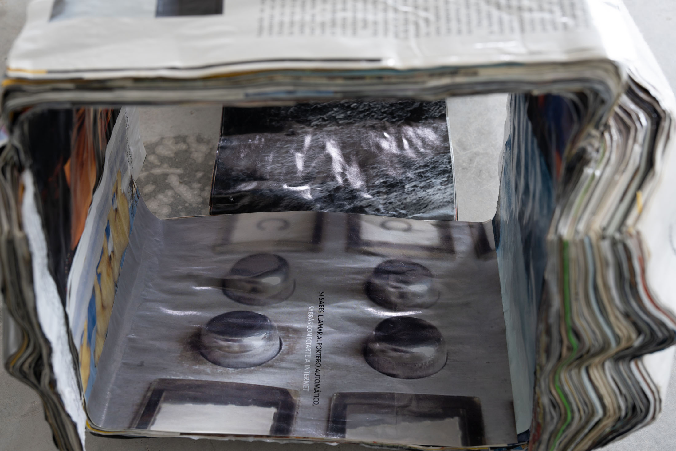 Ibon Landa Amutxategi (Vitoria, 1994) lives and works in Bilbao. His practice is grounded in an interest in bringing materials toward trembling, unstable finishes, in anticipation of a surprising environment. To this end, he works with the weight that the image carries within space through material.