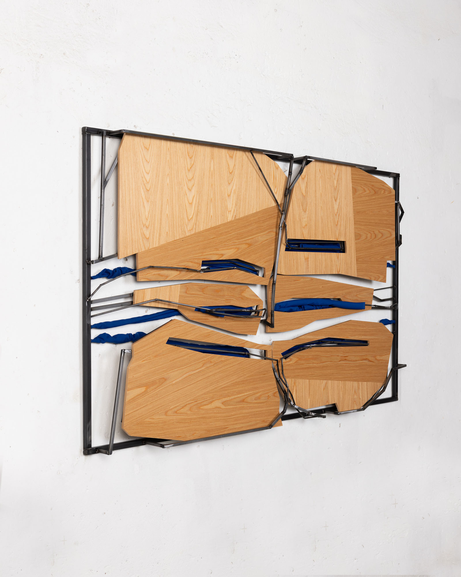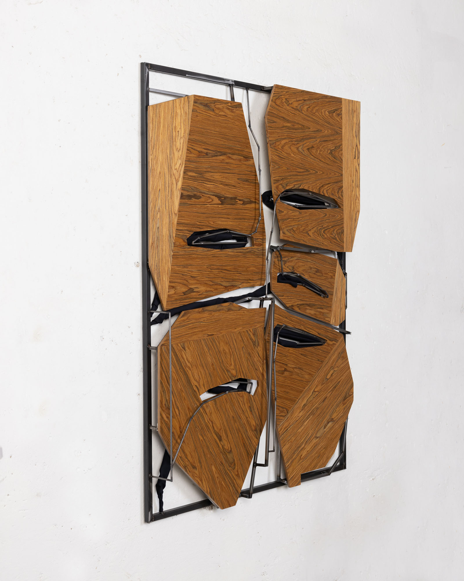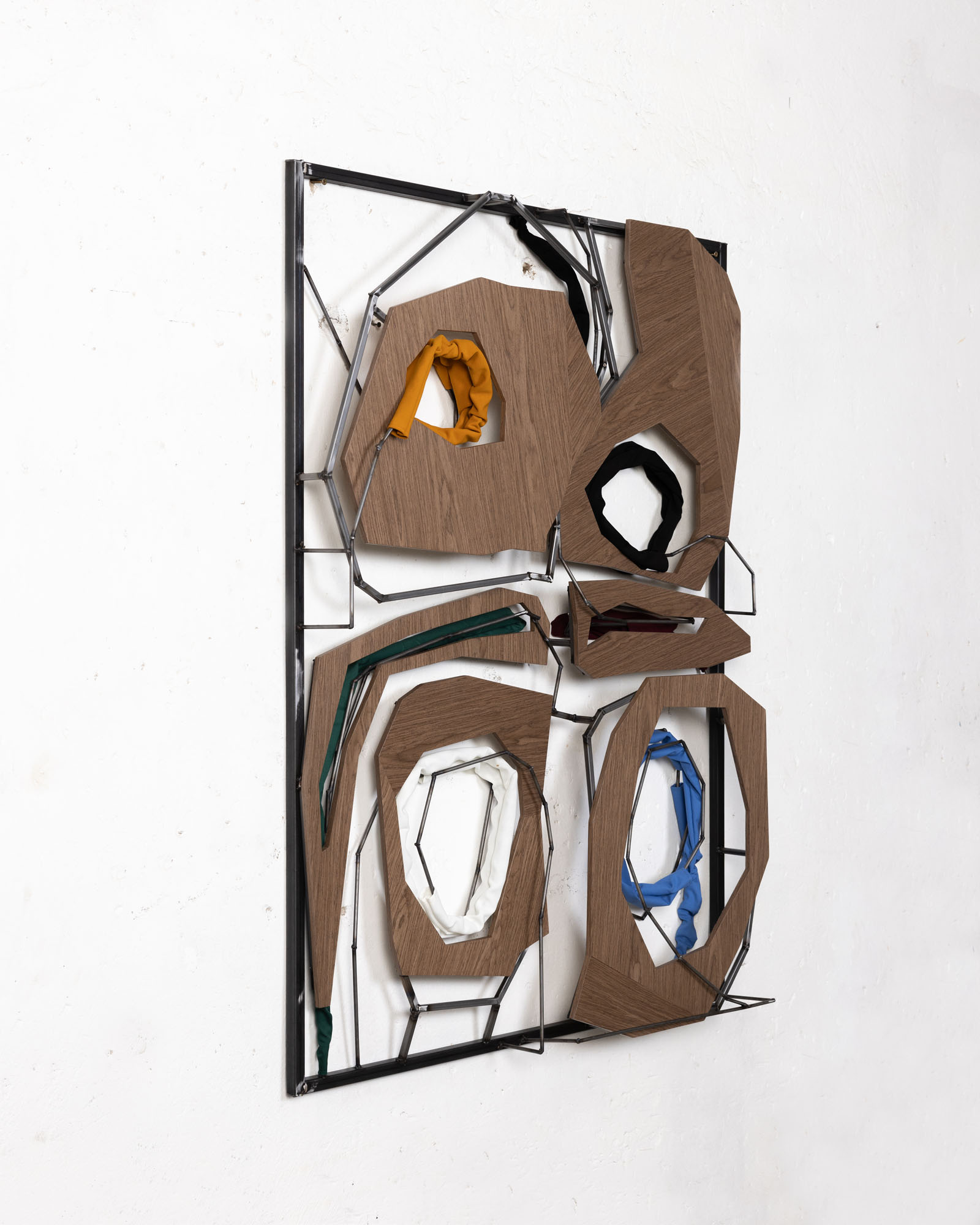 TATJANA PIETERS is honoured to invite you to the third solo exhibition by Indrikis Gelzis at the gallery. ‘What Stays When the Shape Leaves Knot’ presents new wall-based sculptural objects using metal, wood, and textiles. Gelzis employs 3D software in his creative process, blending digital technology with natural materials to form abstract, formally nuanced compositions.