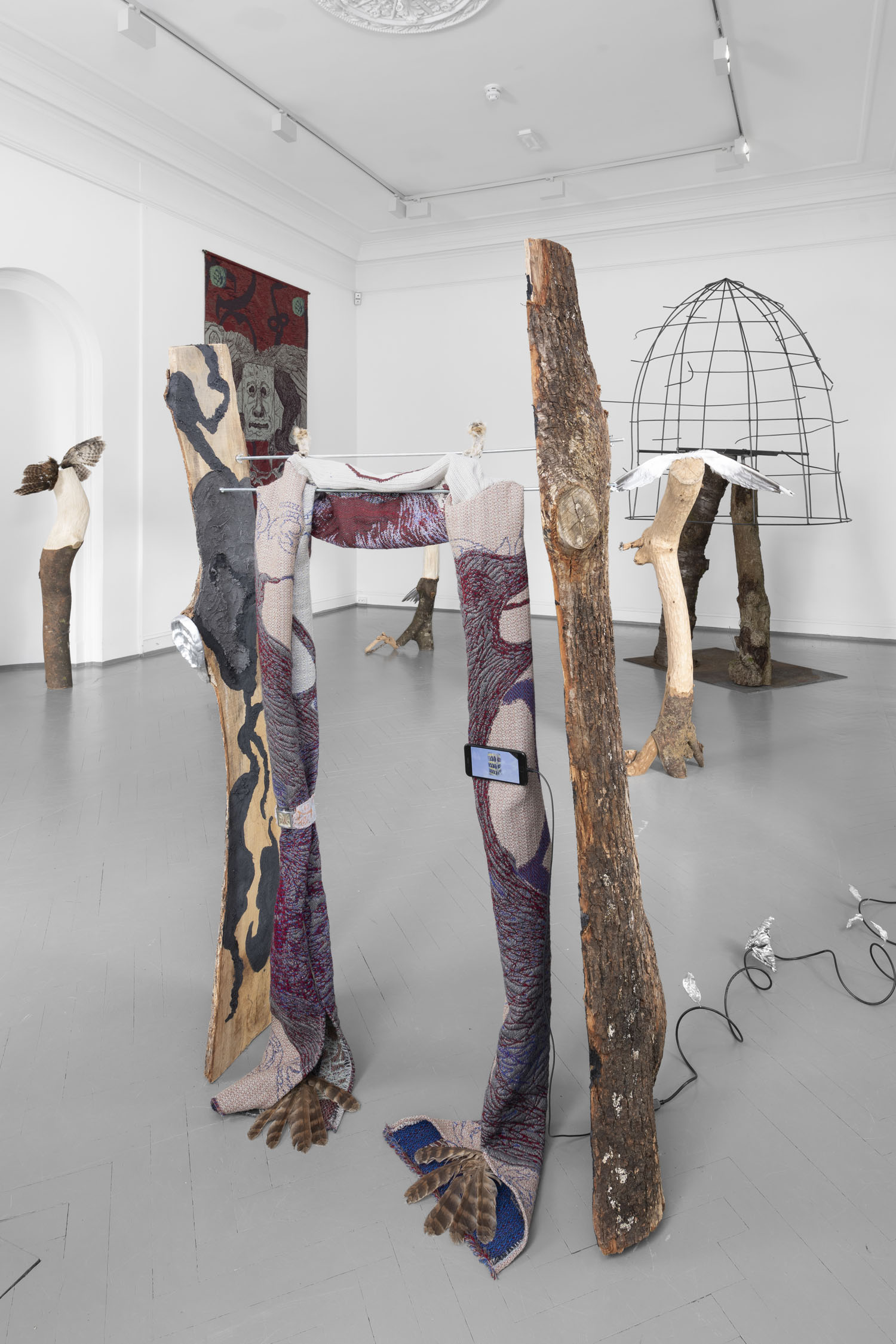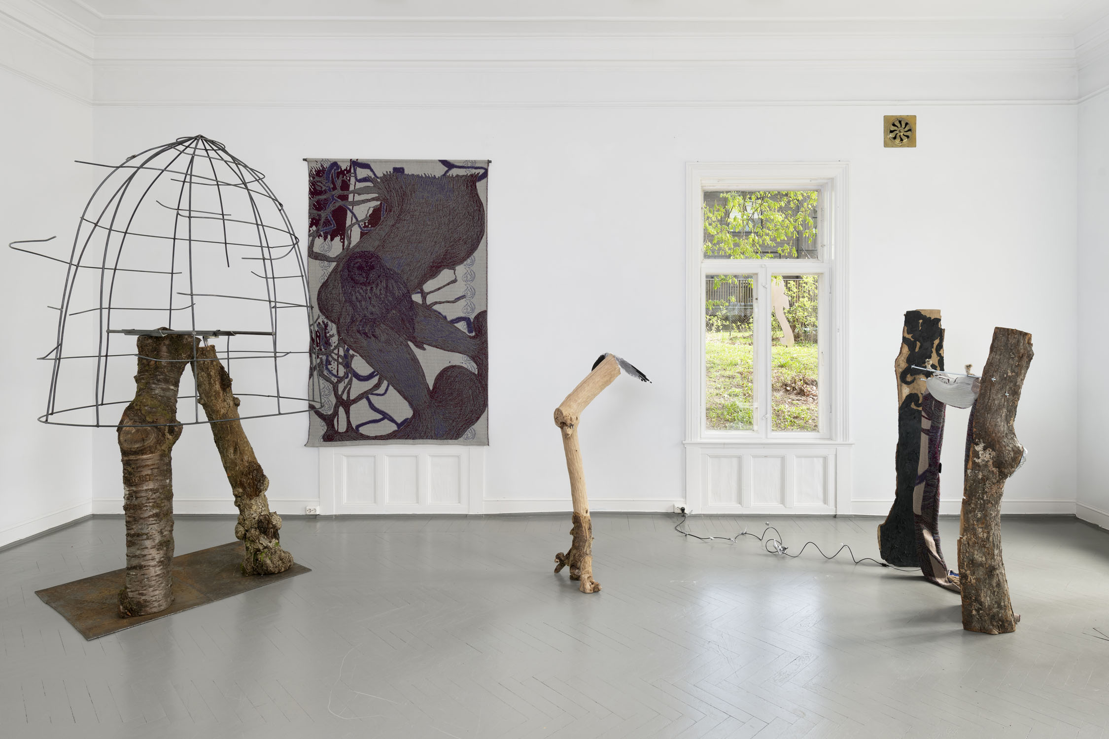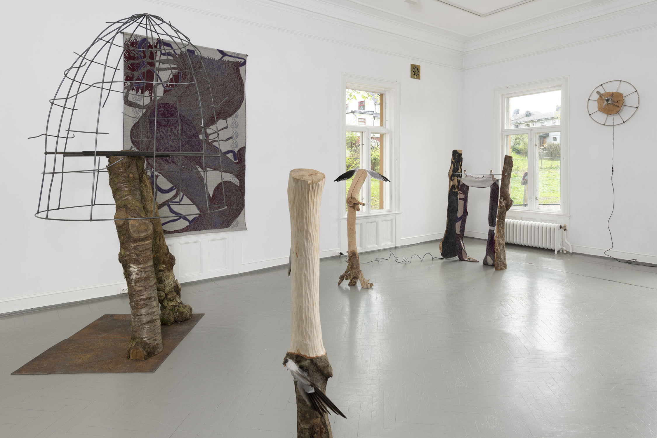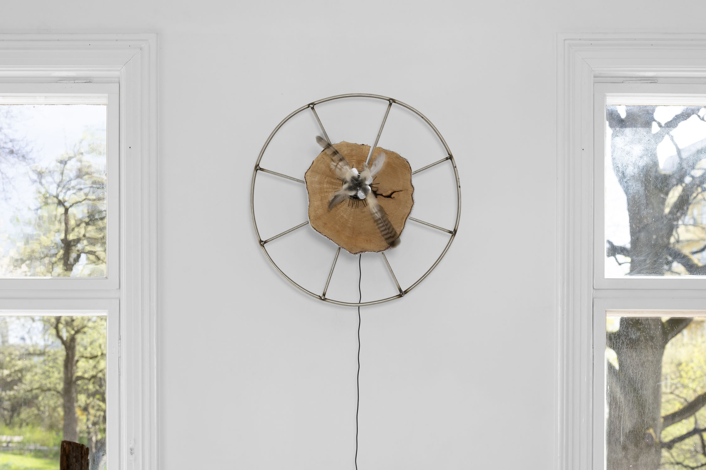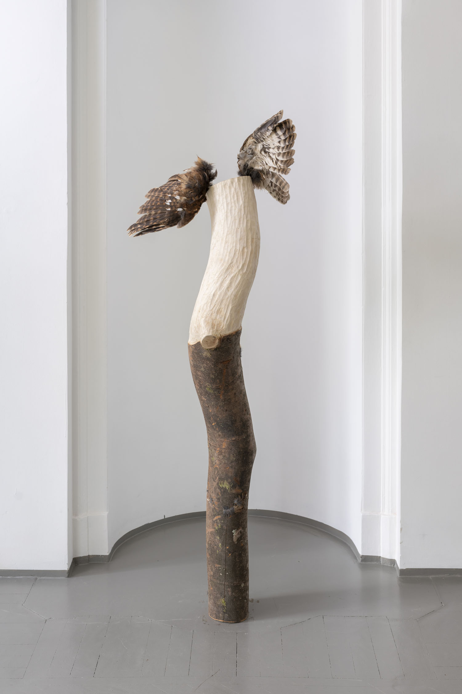 Rooted in what is discarded or concealed, Tysse gives new life to found materials, which she adorns, decorates and assembles. Bird wings, leaves, rims, and logs are cared for and combined into contemporary myths. The bird appears as an overarching mythical figure and metaphor for freedom—moving through a realm where human limits, structures, and hierarchies do not exist. To access that freedom, we have invented flying machines that mimic birds and lift us into the sky – but that also kill and threaten birds and their habitats every day. For Tysse, working with birds is also personal. As the daughter of an ornithologist, her works reflect fragmented memories from a childhood as the birdwatcher’s daughter.