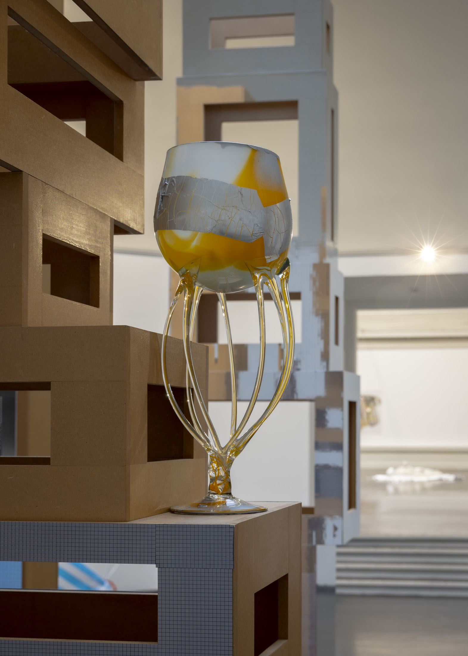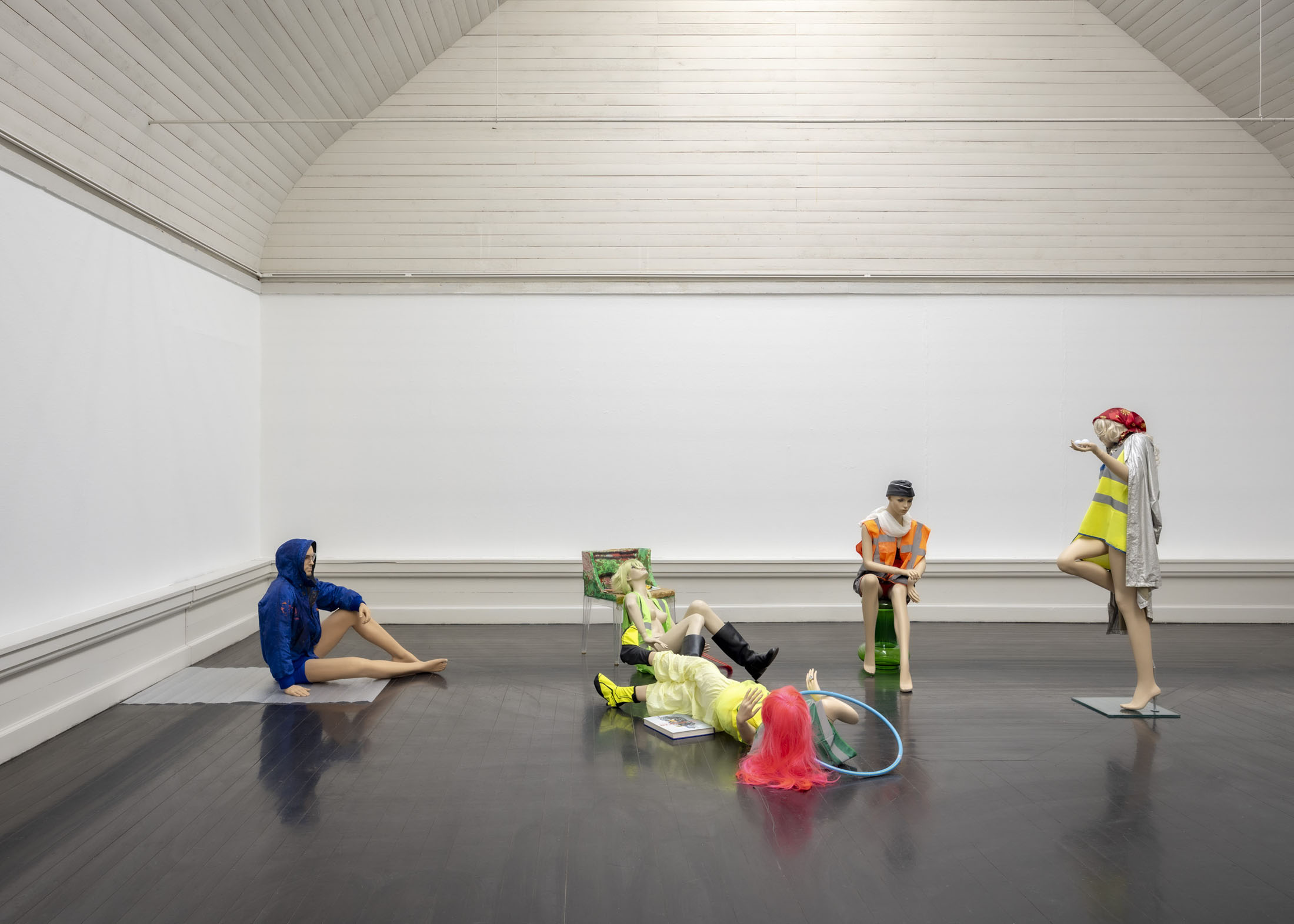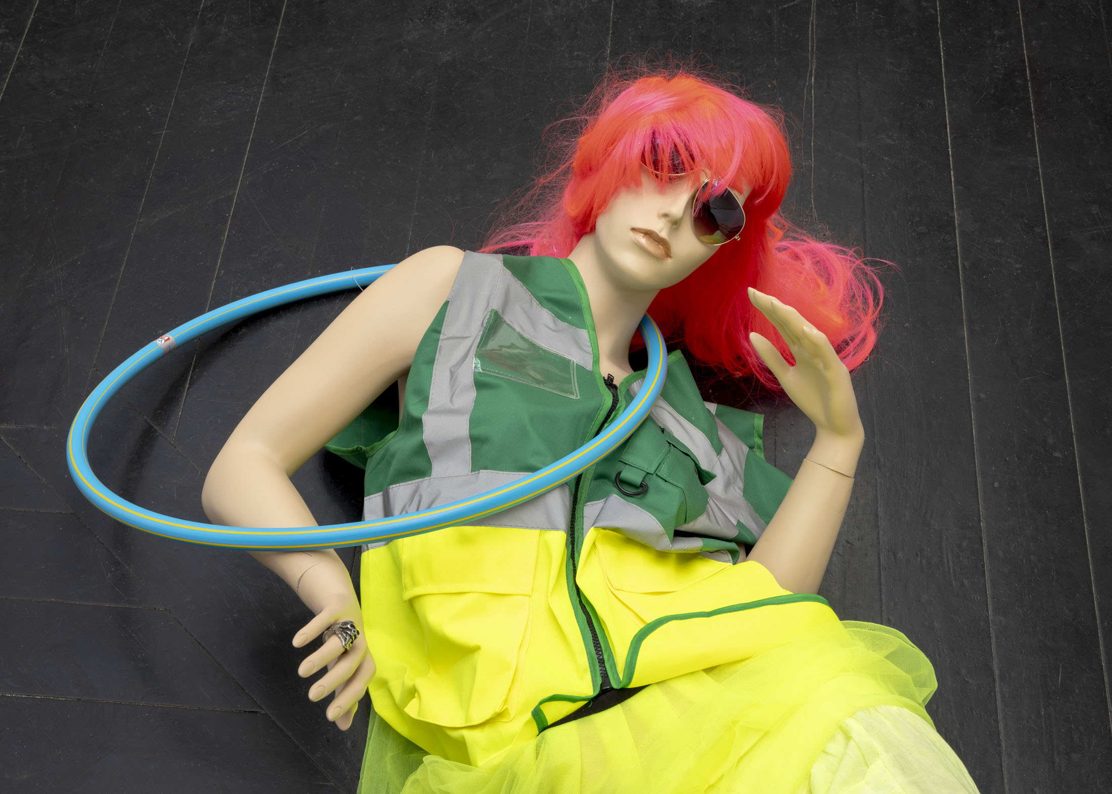 With Genzken, punk and posh meet in a gaze that is both critical and filled with love for the com- mercialised and mediated reality that shapes our present. According to art historian Hal Foster, Genzken’s works expose the dystopian underside of the era’s utopian dreams, while this destruc- tion simultaneously smoulders with a paradoxical vitality—an “energy in disaster.” Beneath the bright colours and glittering surfaces lurk some of these destructive forces—consumer culture, war, and inequality—and keep the works balanced on the edge of an inescapable collapse. Yet, Isa Genzken’s ambiguous and often humorous works ultimately remain open and hopeful in their orientation toward the future, no matter how strange it may become.