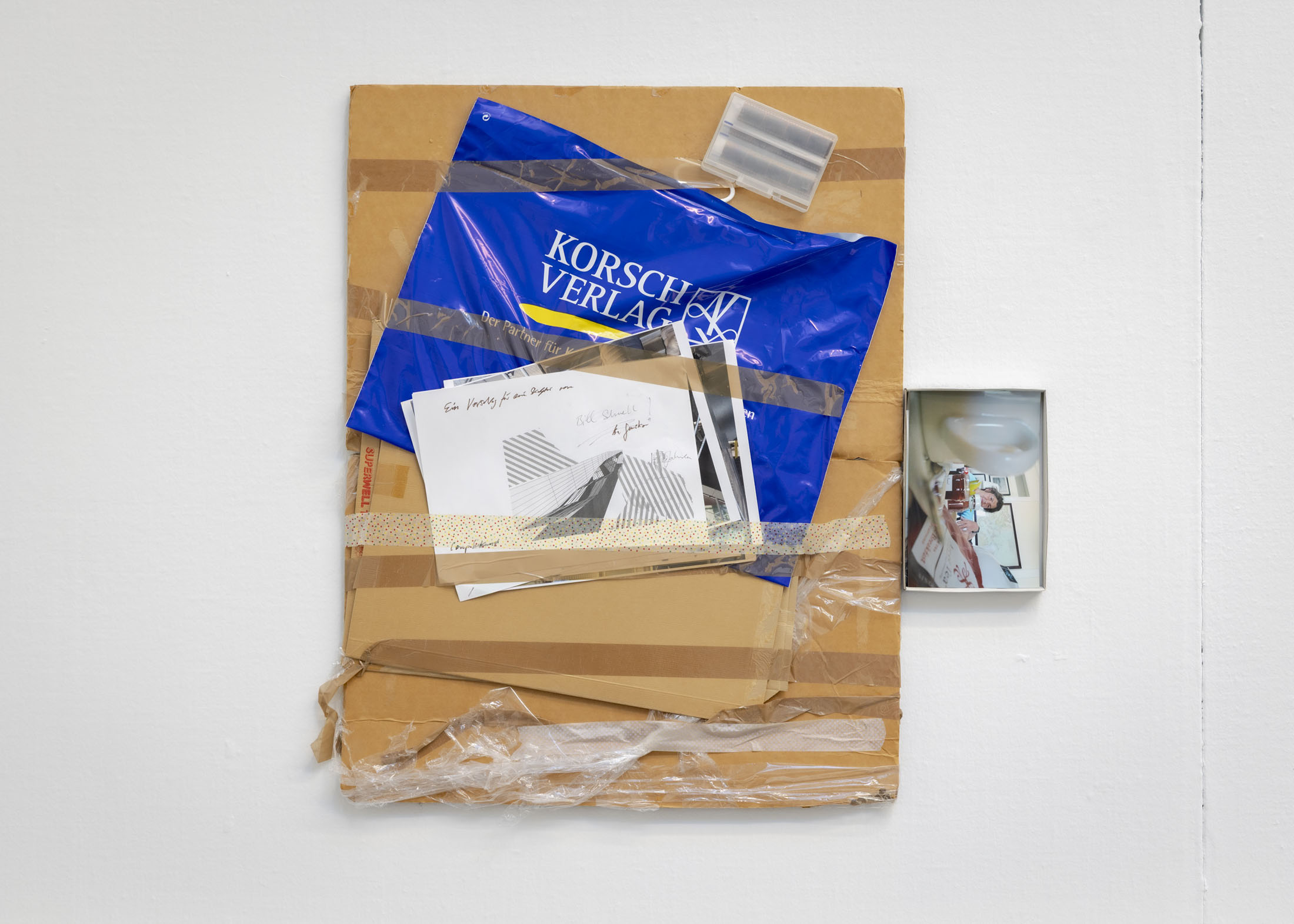 World Receiver is a term Genzken has repeatedly used for a series of small concrete sculptures fitted with antennas. In the exhibition, a small World Receiver is incorporated into the assem- blage sculpture Untitled (2016). They resemble radios without a clear function; yet, like all of Genzken’s works, they exist within an open and receptive relationship to the world.