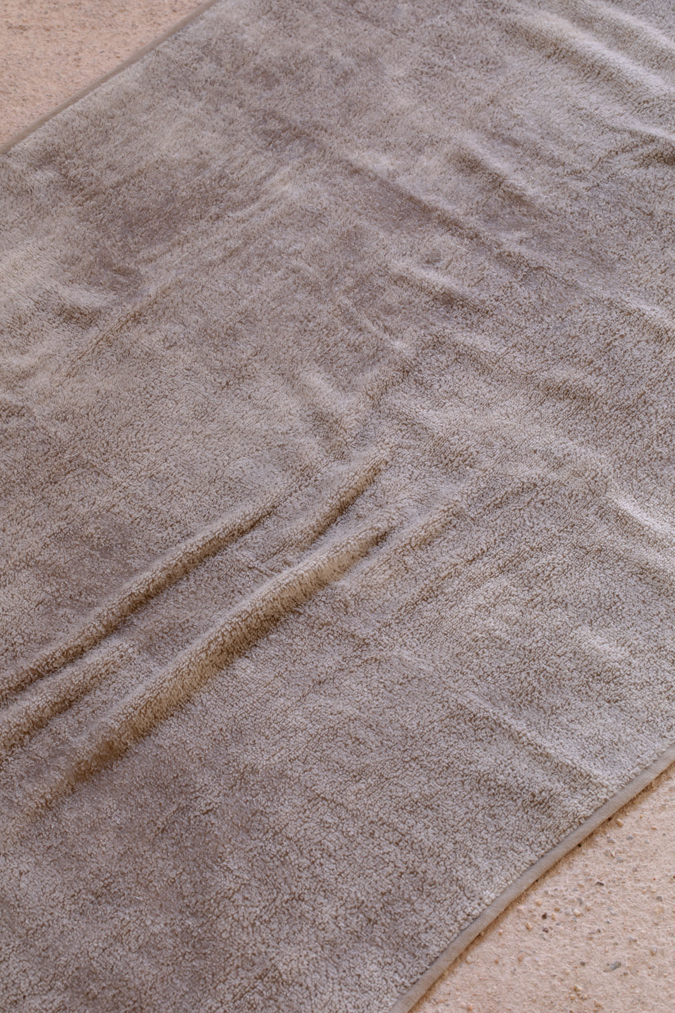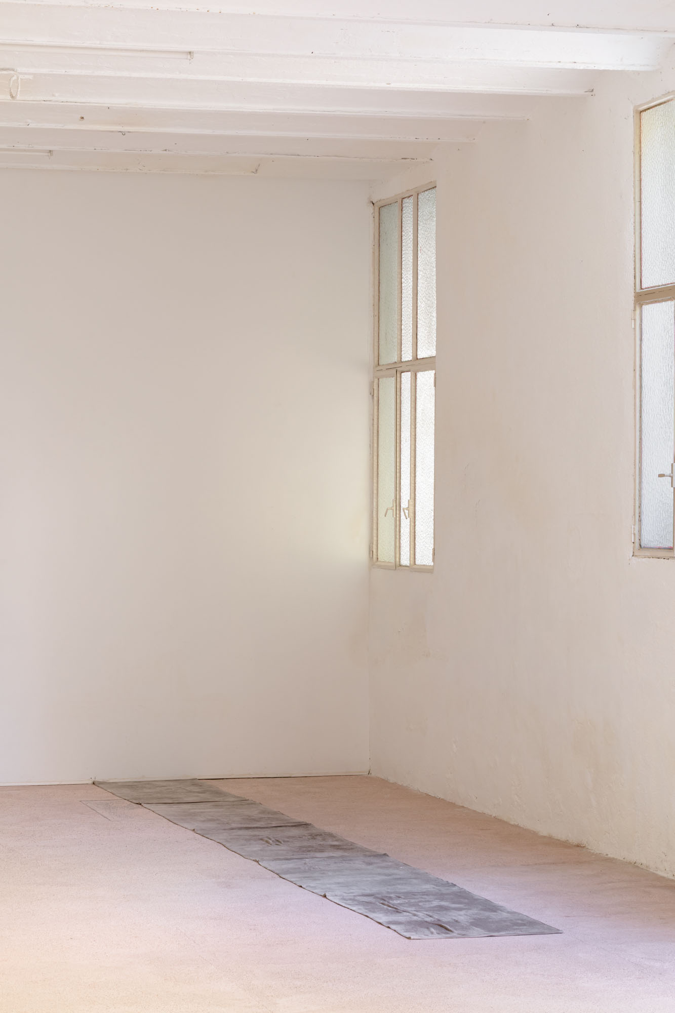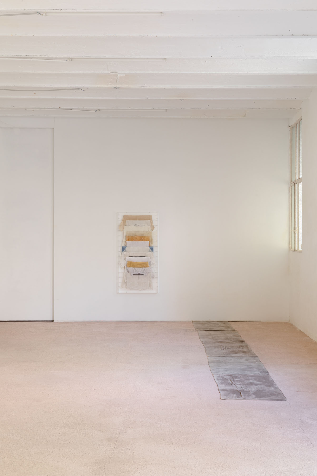 Echoes of Gego and of Agnes Martin resound in the perfect lines of the stainless steel wires, draping the freshly washed clothes, sketching a pale striped landscape. In portrait format, you paint the Earth’s crust or a cloudy sky, loosely, with broad strokes in the style of Helen Frankenthaler’s large color fields of the 1960s. Again, the midpoint: it is not painting, nor is it only sculpture—it is something in between. It is both. Línea Gris Perla [‘Pearl Gray Line’] is the most interstitial piece of all—it is a flat trace that wants to invade the three-dimensional. In your attempt to study the magnitude of time, you once again reveal how elusive and slippery it is: just when you almost feel you have managed to measure it (or, on a larger scale, to give it dimension), it becomes fossil, treasure, memory of a moment to which one can no longer return.
