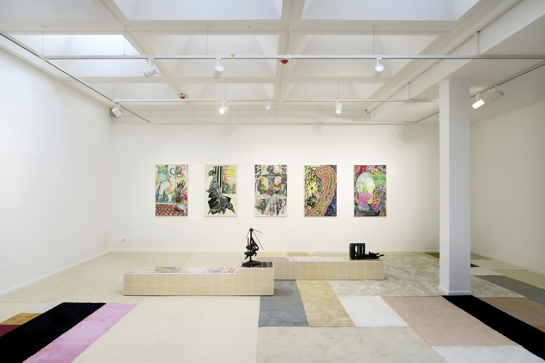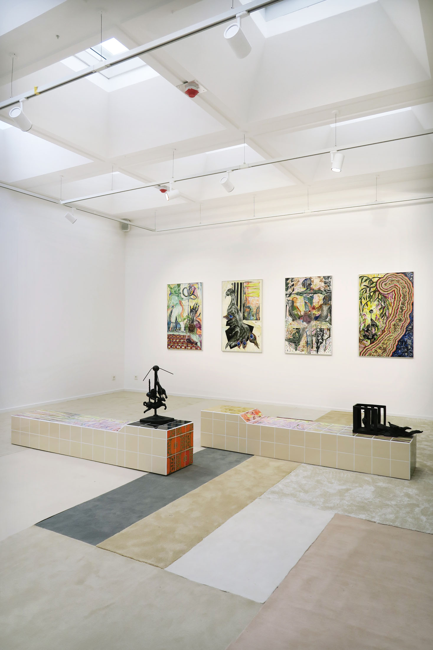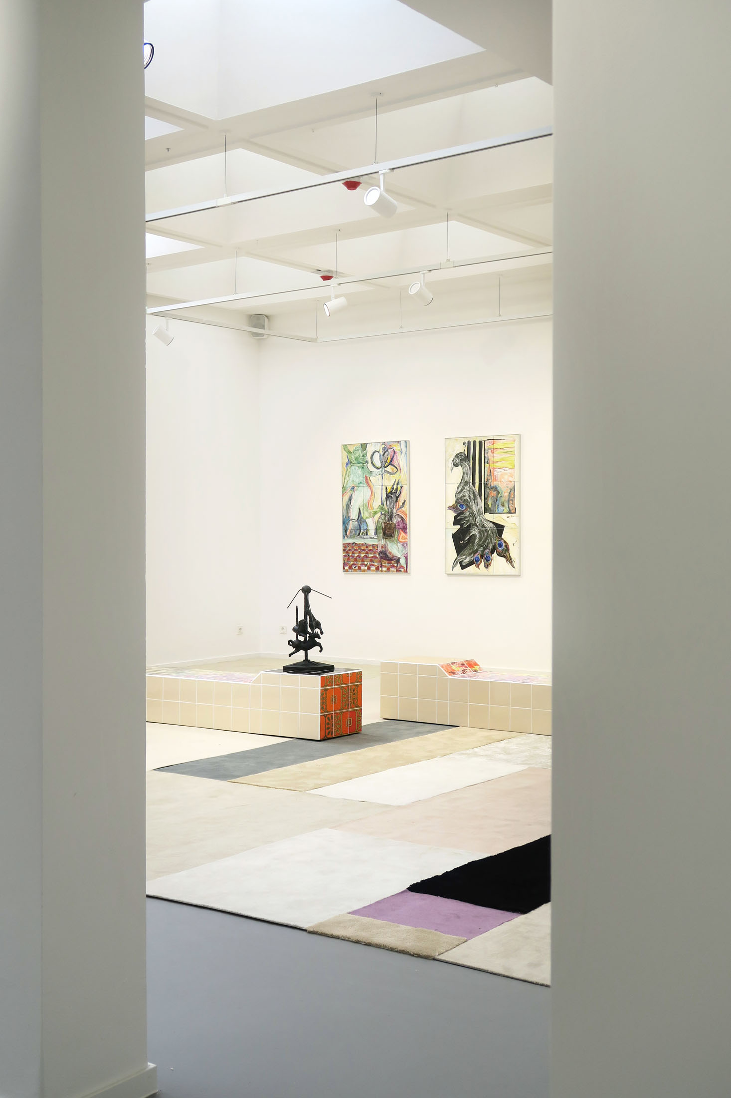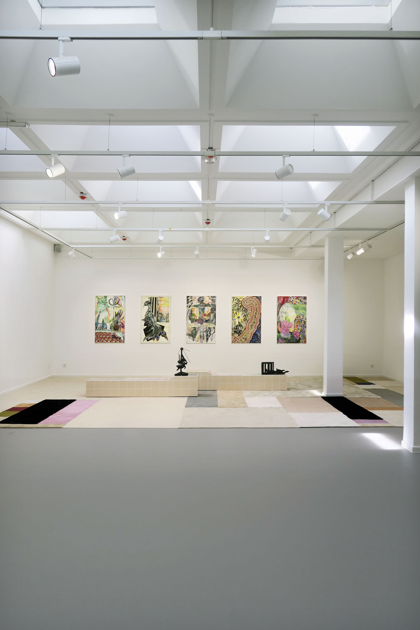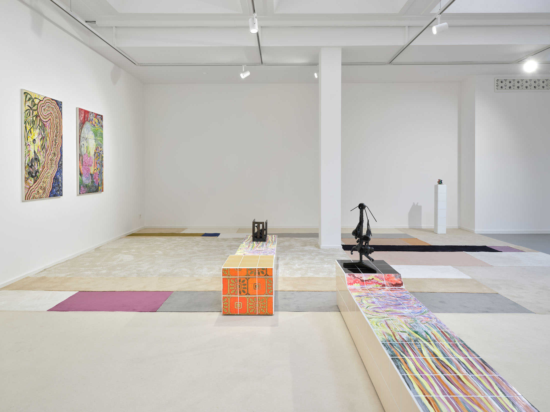 Large-scale carpets play a special role, structuring the space like abstract fields of color. They refer both to painterly traditions and to landscape representation. Unlike traditional painting, which maintains distance, Jacent translate the principle of abstraction into a physically accessible space.