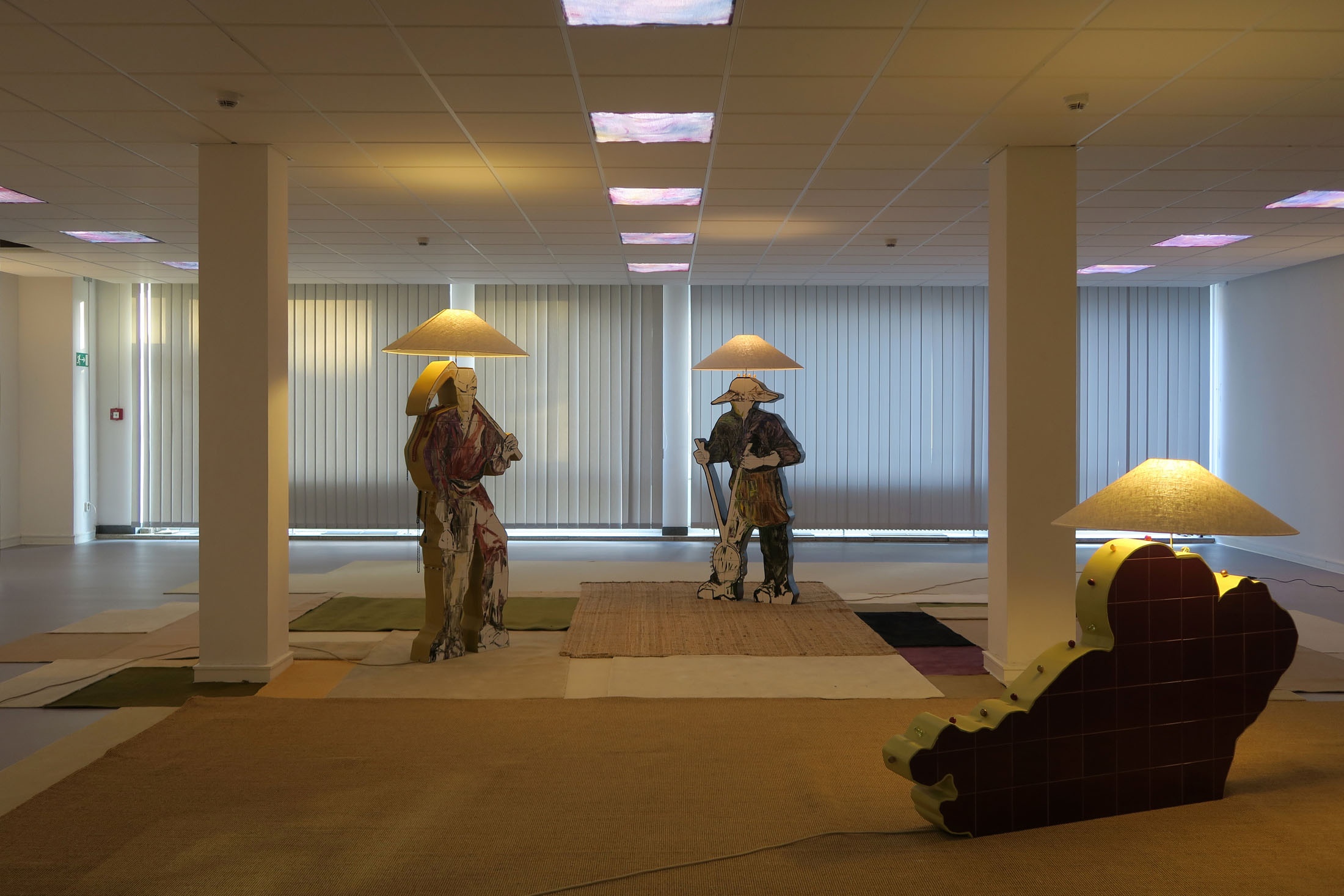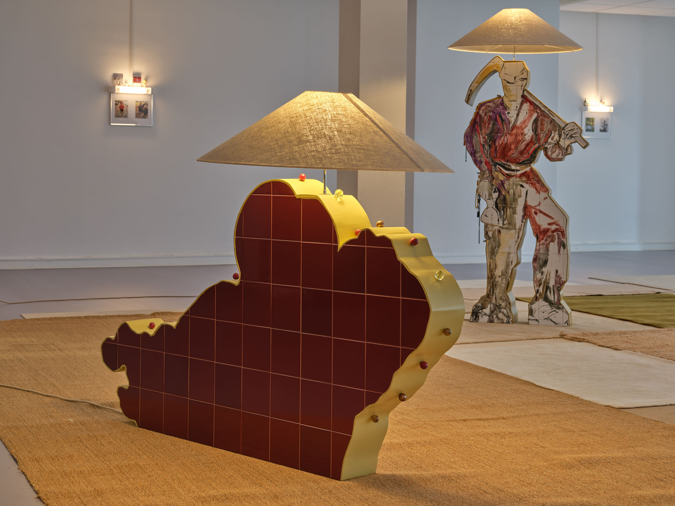 Since 2014, Jade Fourès-Varnier and Vincent de Hoÿm have been working together as the artist duo Jacent. In their site-specific installations, they merge art and everyday life, creating walk-in environments that explore ideas of community, intimacy, inheritance, and hospitality. With Ranch, they transform Haus Seel into a multi-layered total artwork that draws visitors into a dense, atmospheric cosmos. The title Ranch immediately evokes images of the American West, cowboys, and Marlboro advertisements. Yet Jacent distort these clichés and transpose them into the present and into the local context of Siegen. Rural culture, landscape imagery, and the region’s industrial past intersect, revealing different historical layers that overlap without becoming nostalgic or romanticized.
