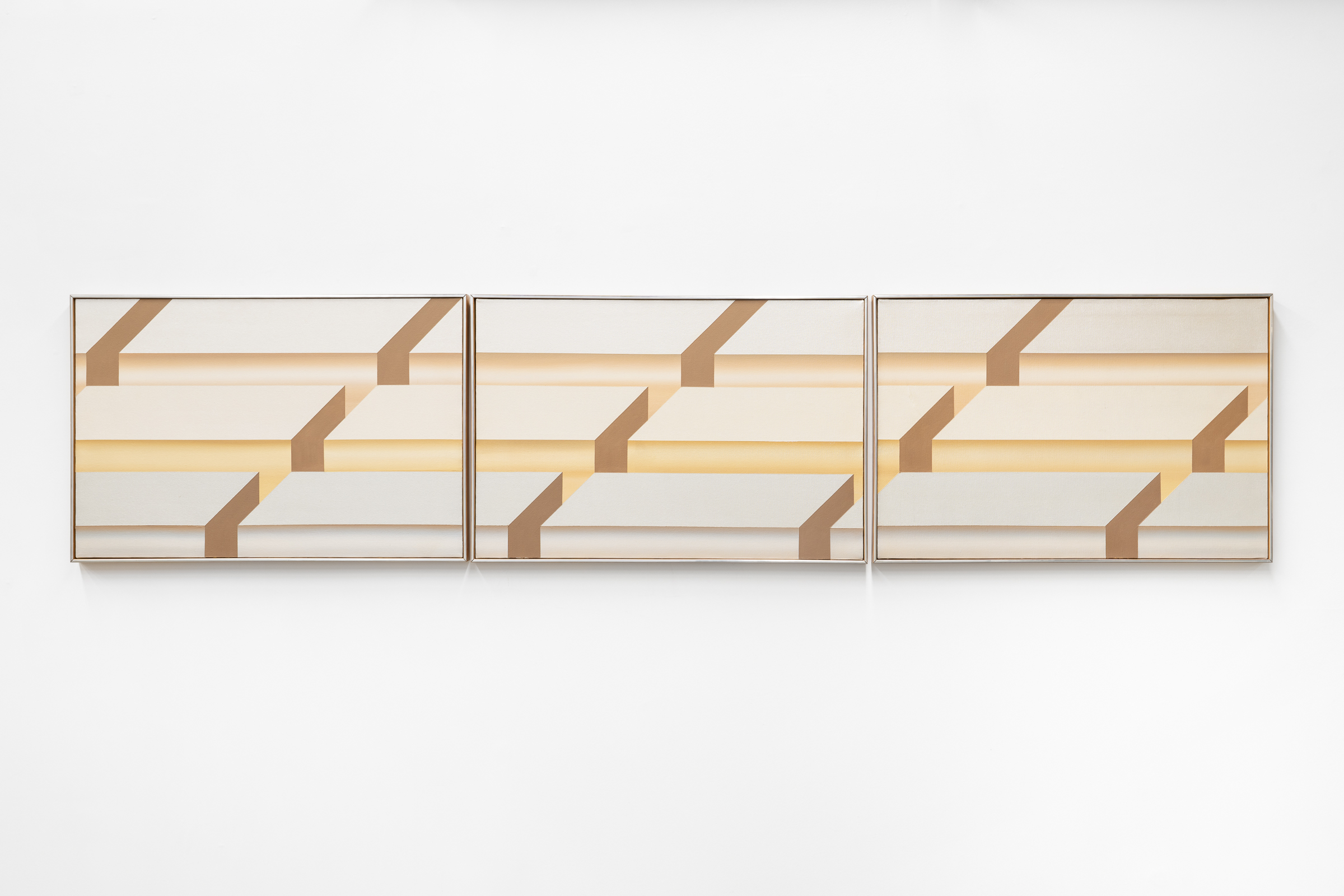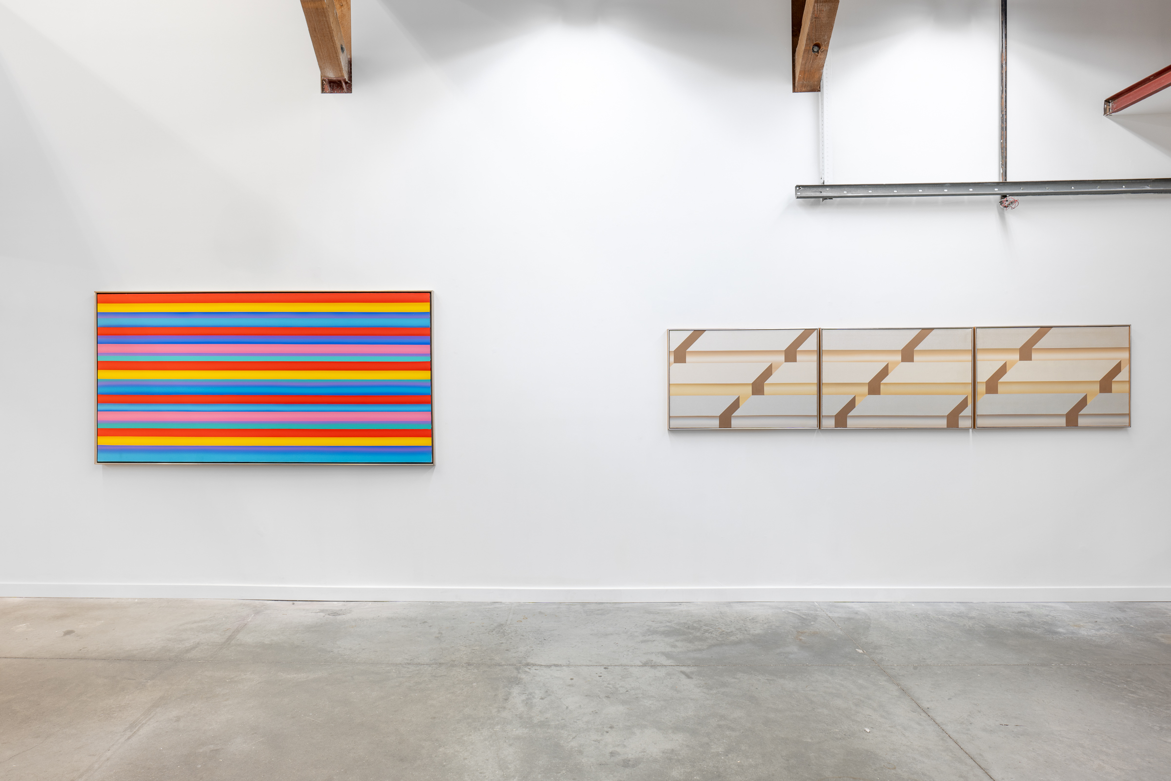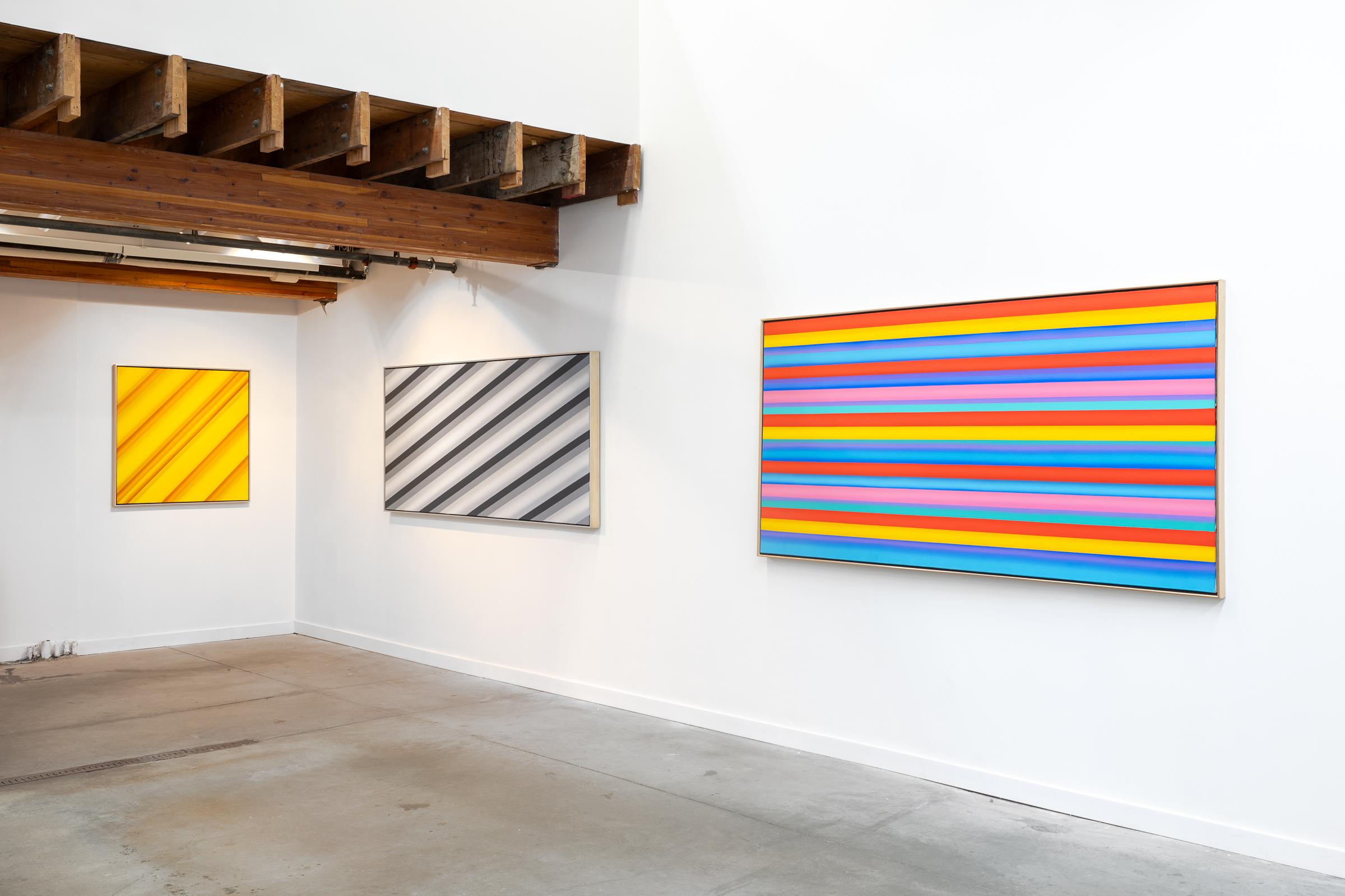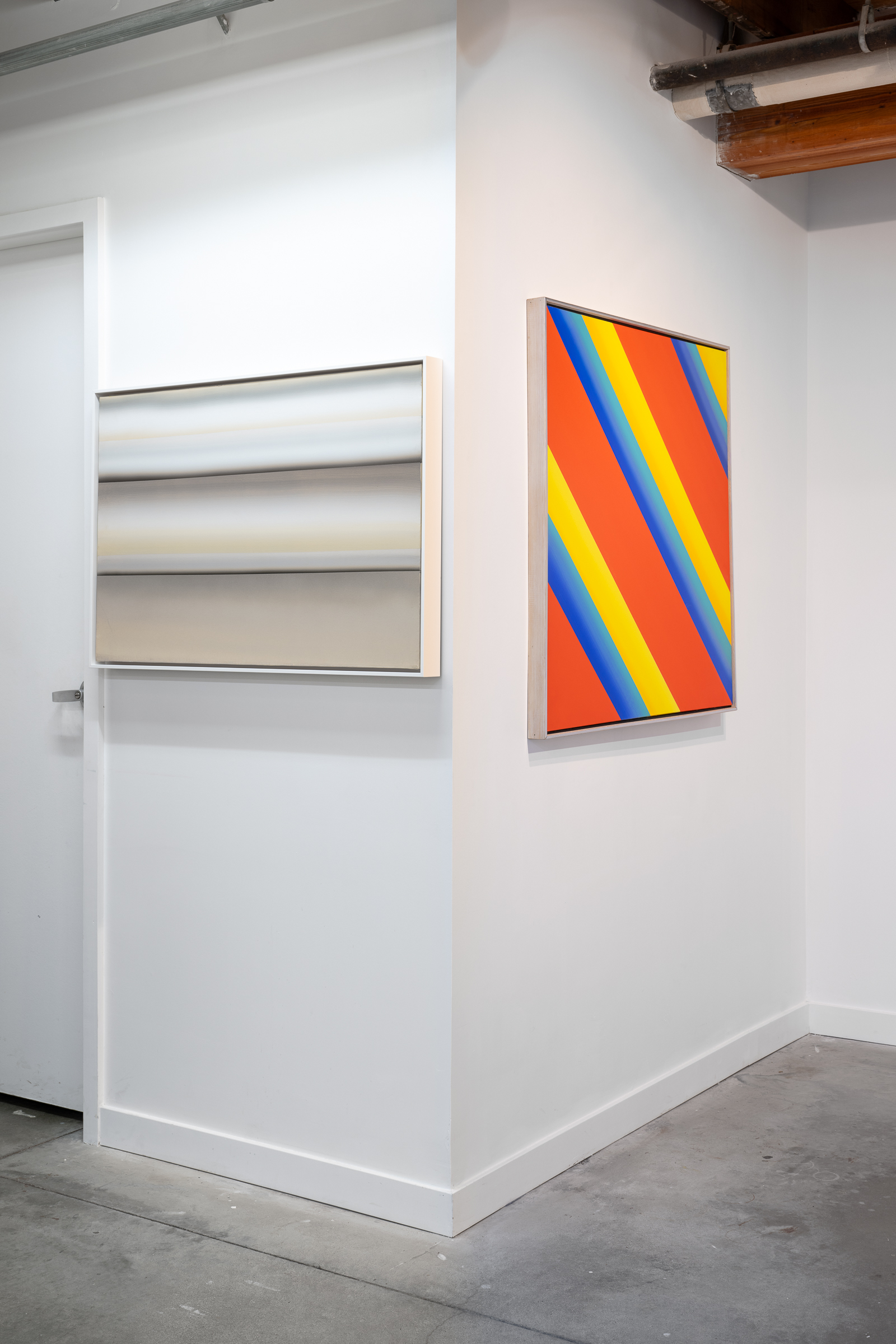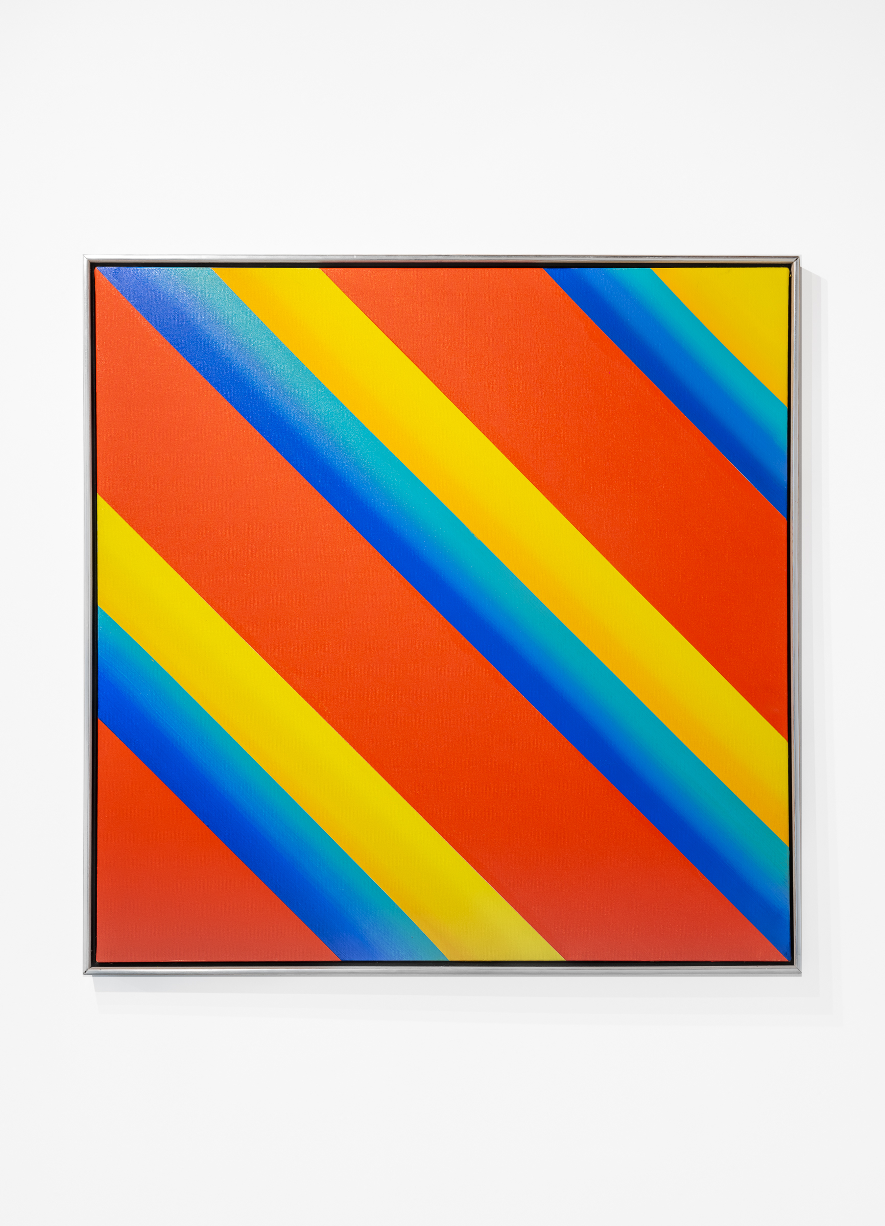 Joan Balzar had already been immersed in various aspects of science and engineering around 1960 – when she made the switch from abstract expressionist painting, to her signature hard edge-style. Her interest became even greater as the Soviet and American space programs developed and then culminated with the Apollo moon landing of 1969. Not coincidentally various manifestations of arc-forms emerged in Balzar’s work. With the emergence of hard-edge abstraction in the mid-1960s, a range of other quasi-orbital projects appeared, including orbital freeways around cities, the psychogeography of situationists and a plethora of ‘trip’ or orbit-related art forms especially as part of the vehicular wing of conceptual art practice. Those responses to what was seen drew on models from urban geography, philosophy and the scientific community. Balzar had no interest in the other form of 1960s ‘tripping’. What Balzar did seek was work that transmitted to the viewer something of the power of the cosmos and the power of paint. With the many X paintings Balzar merged language, typography, poetics and the power of painted letters into some of the strongest abstract work ever produced in Canada.