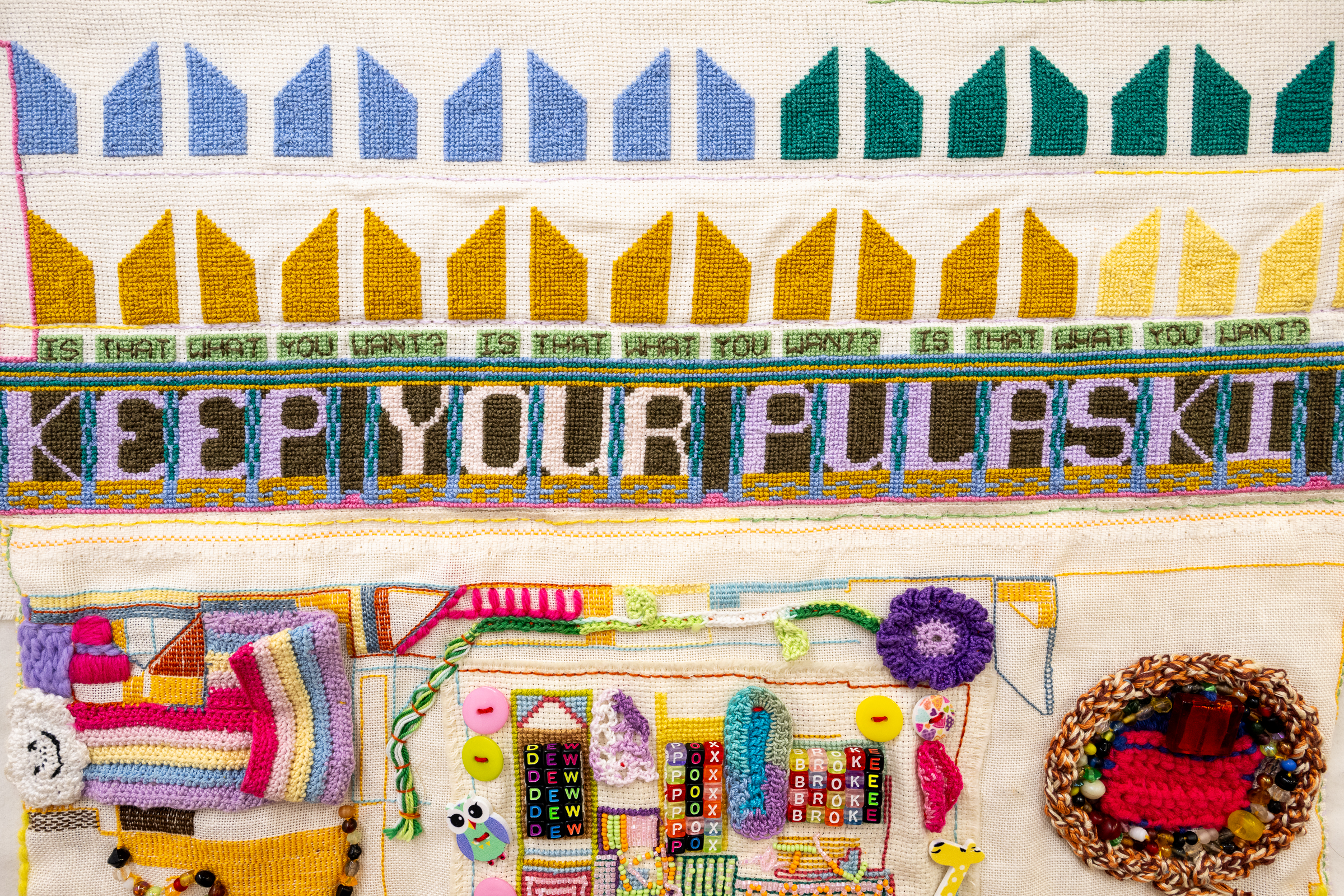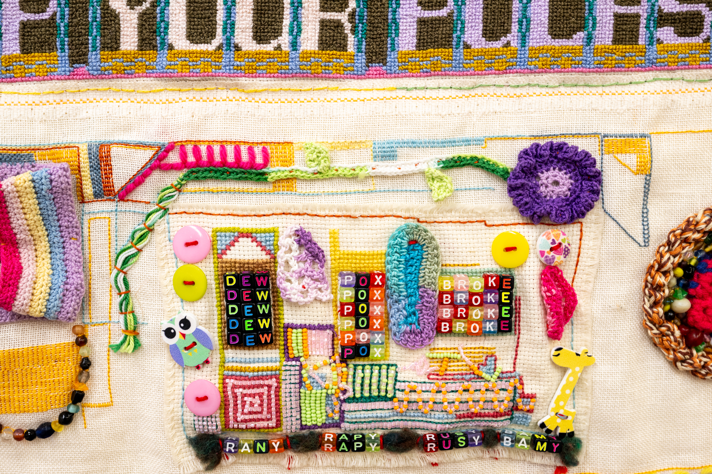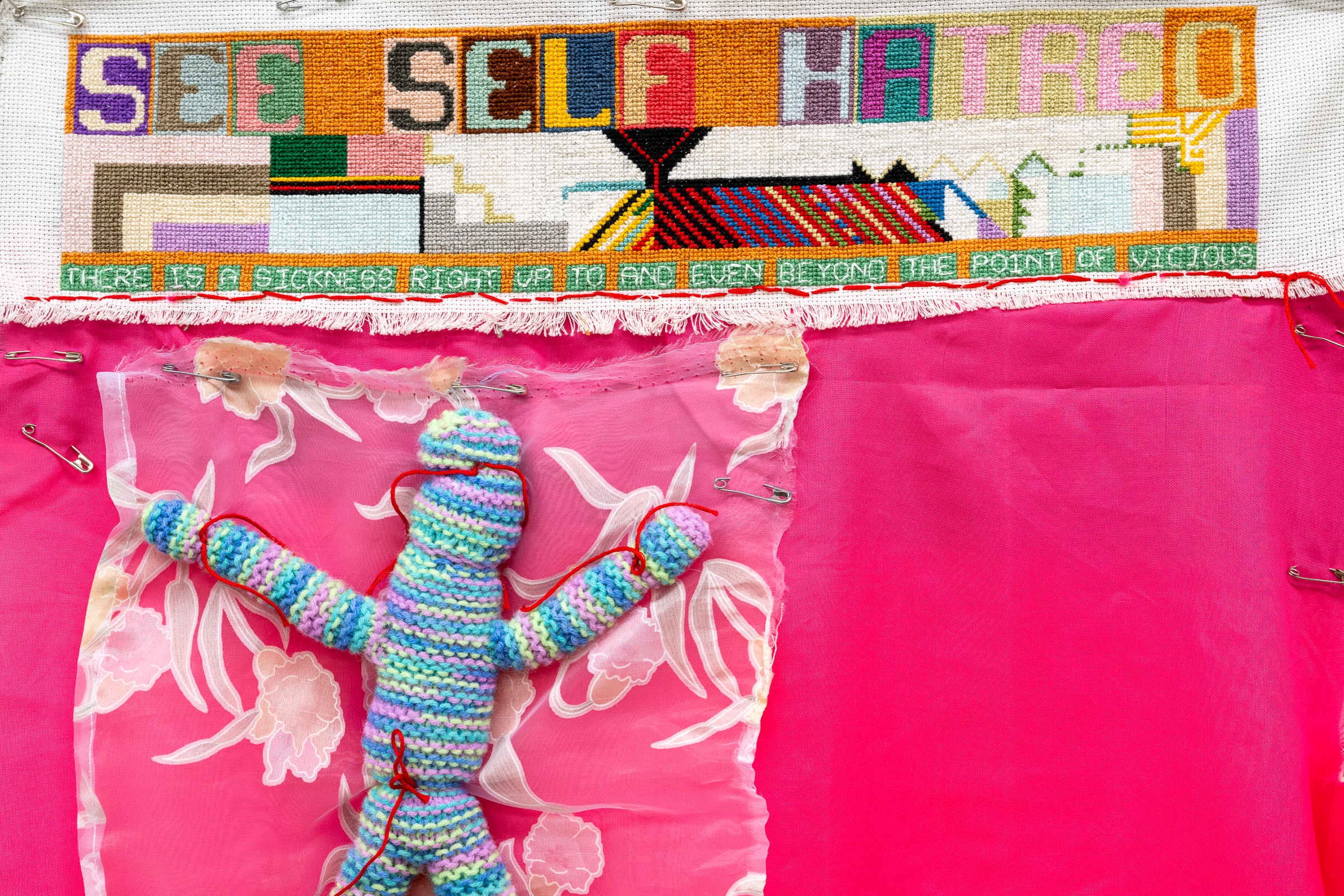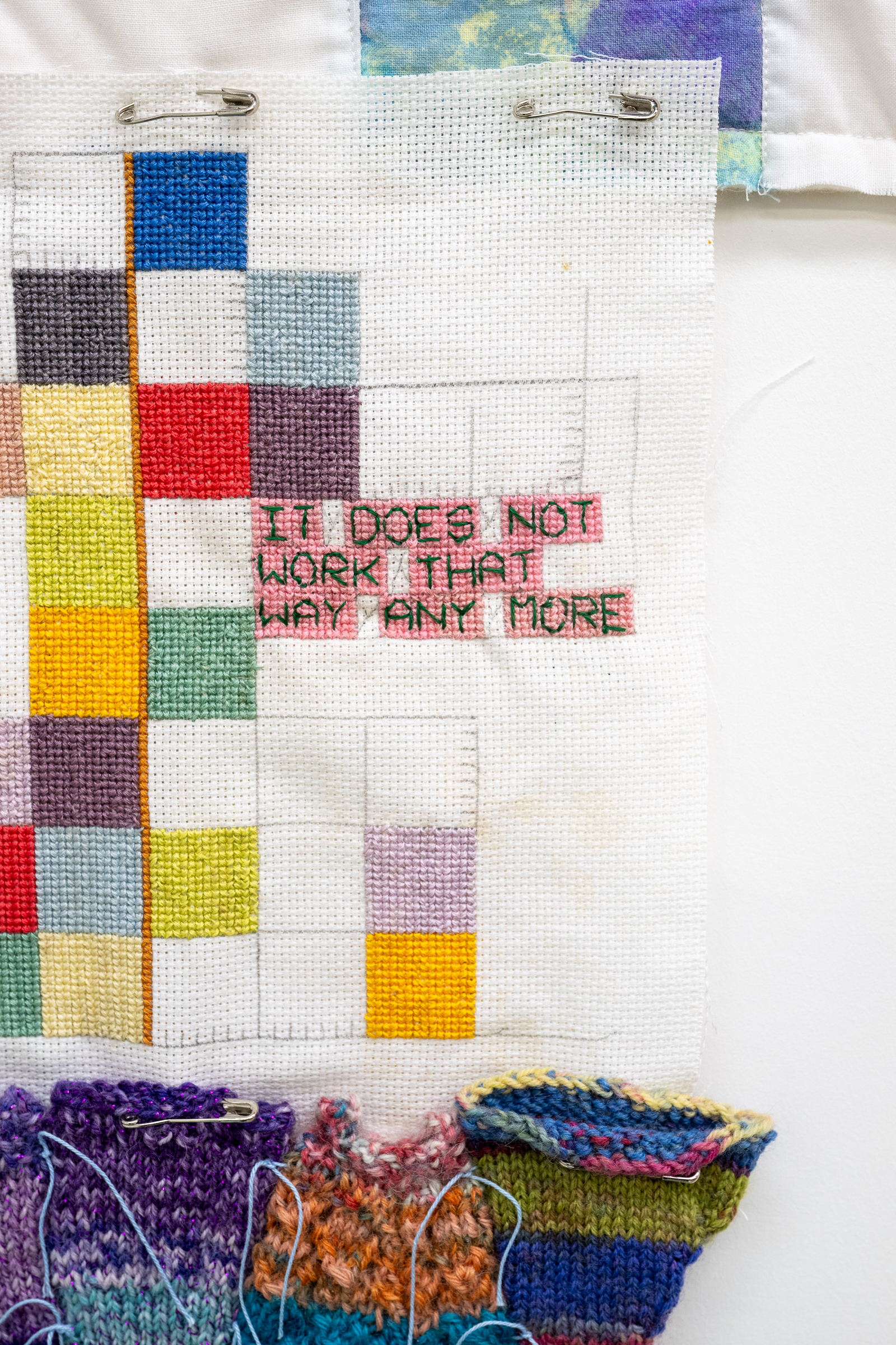 Guest curated by Lam Wong, Matilde Nuzzo and Wayne Baerwaldt, the Vancouver exhibitions present a dedicated survey of Boulet’s key works produced in various formats, from traditional cross-stitching to assemblage techniques and filaments of colour embedded in quilting. Boulet’s lived experience has led him to pay close attention to building a base of knowledge that remains open to addressing a wide range of issues associated with social justice, well being, the omnipresence of poetic inspiration, and the need for psychic and physical space to accommodate an emerging queer identity. The characteristic markers of his investigation are complex and generally identified with autobiographical sources and the formal consequences of an evolving definition and making of art.