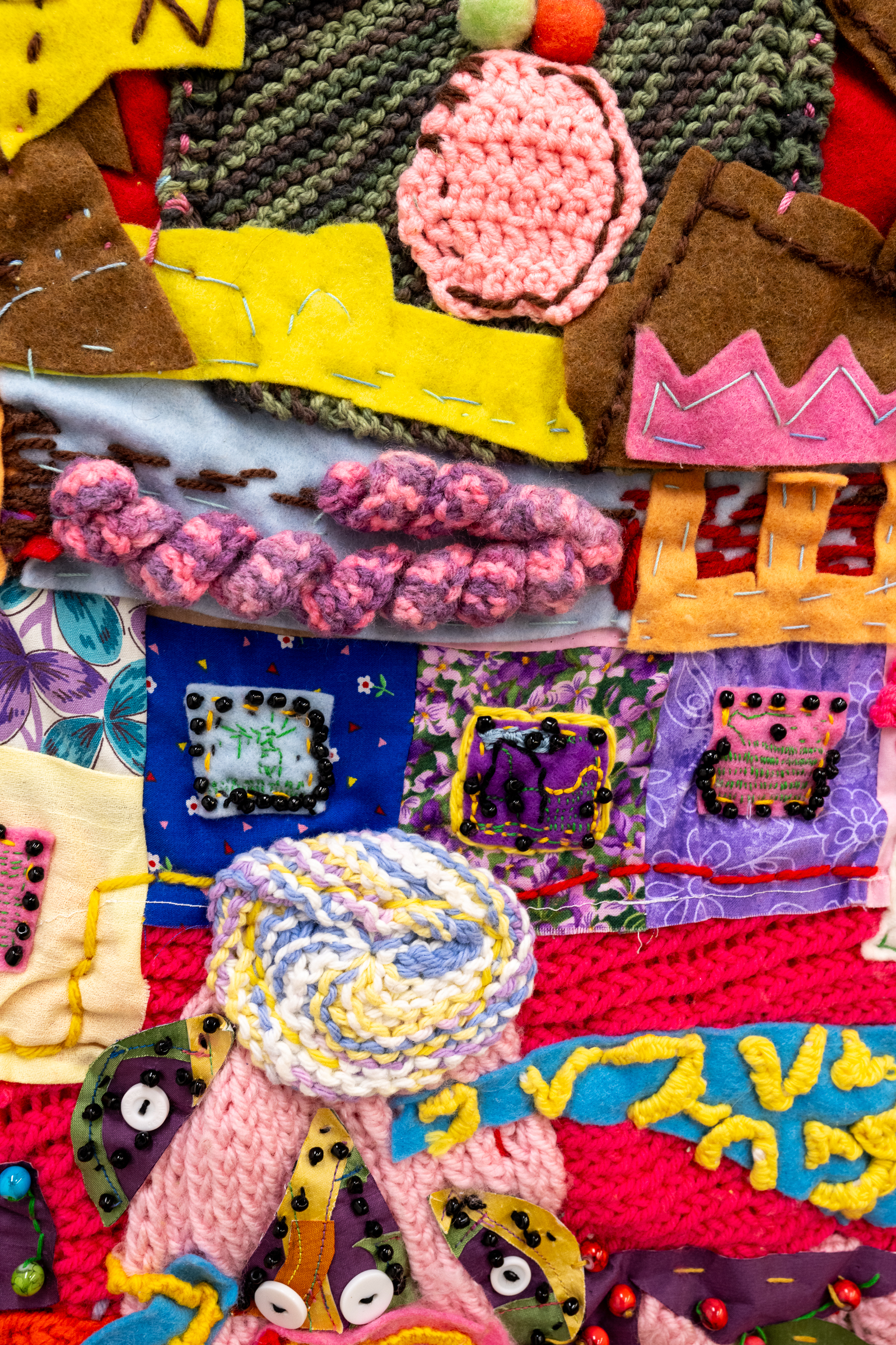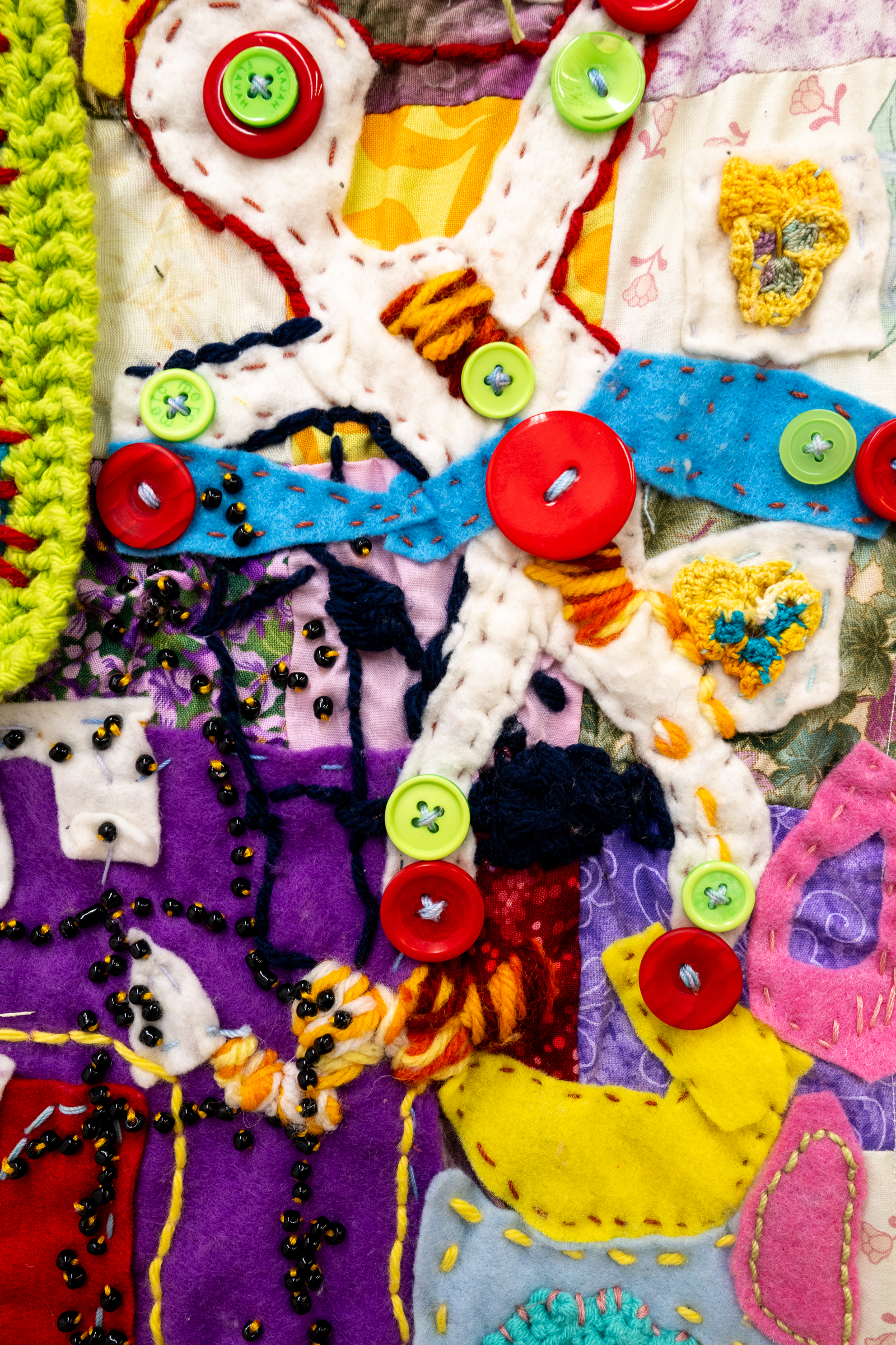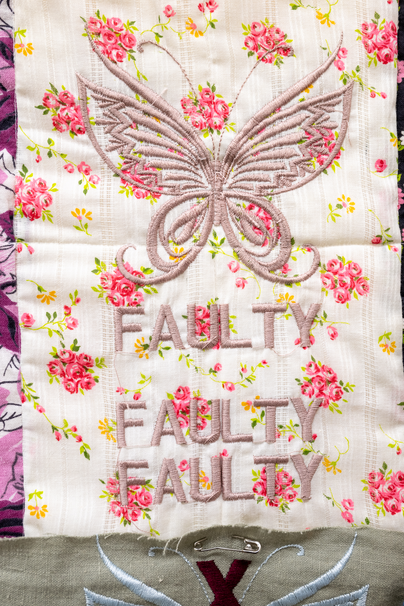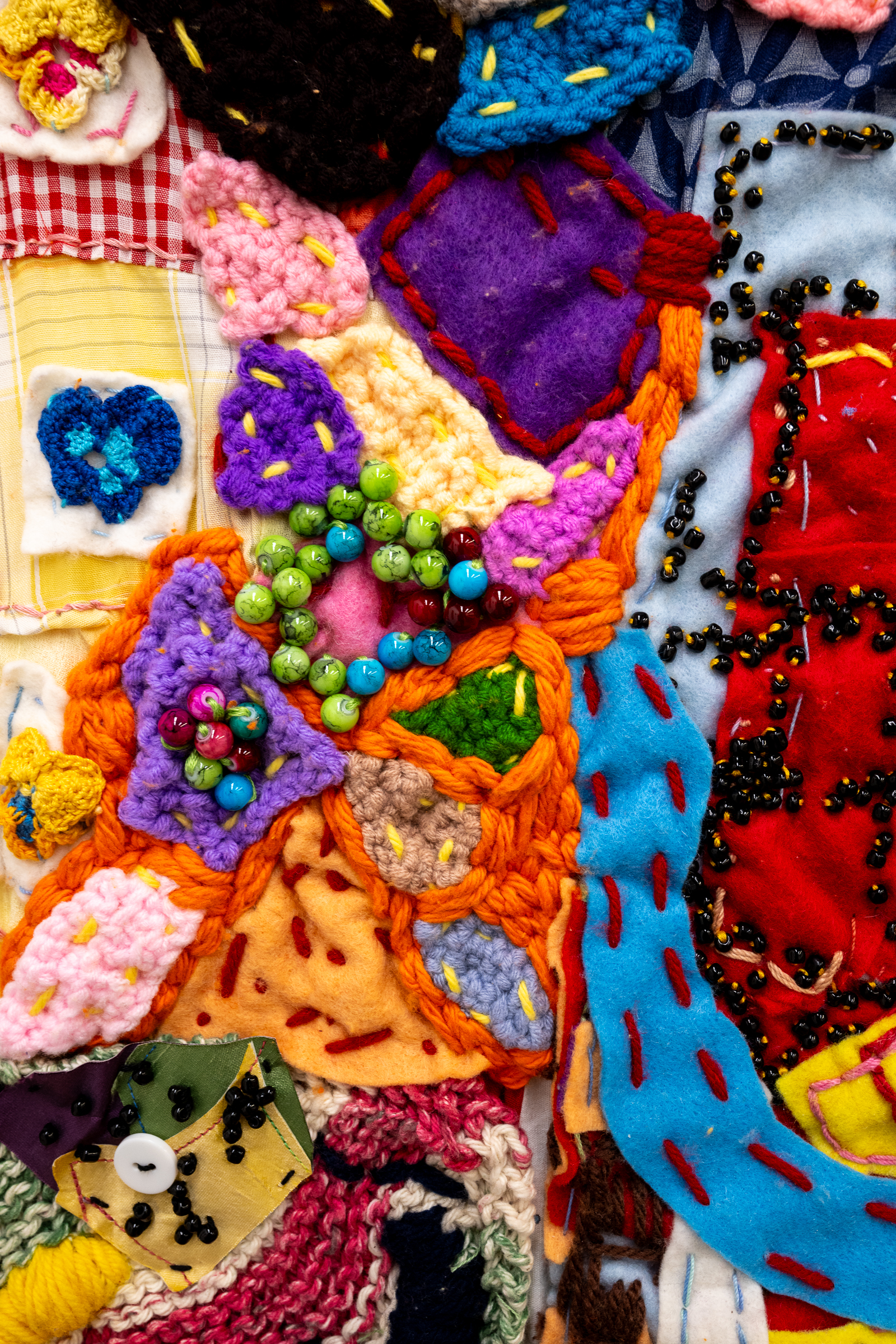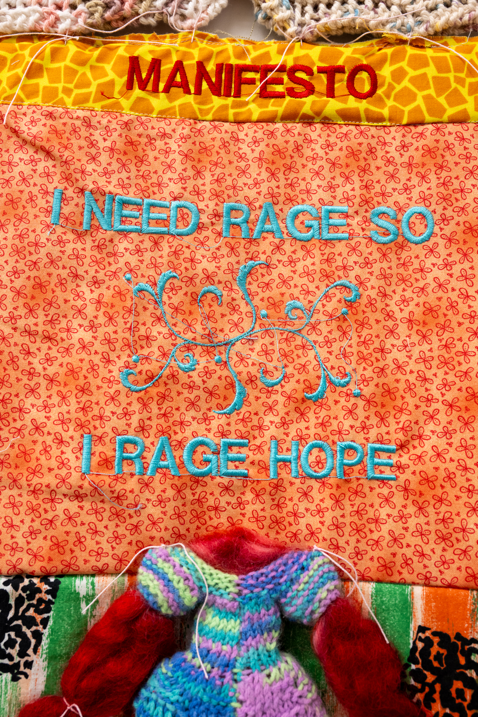 Boulet’s conceptual process of making introduces fine craft textile art as part of an inclusive wellness program for community building. In addition, he extends the discourse around fine craft materiality via his exploration of more diverse elements including medical terminology (as either oblique/direct references), design strategies and performative sound.
