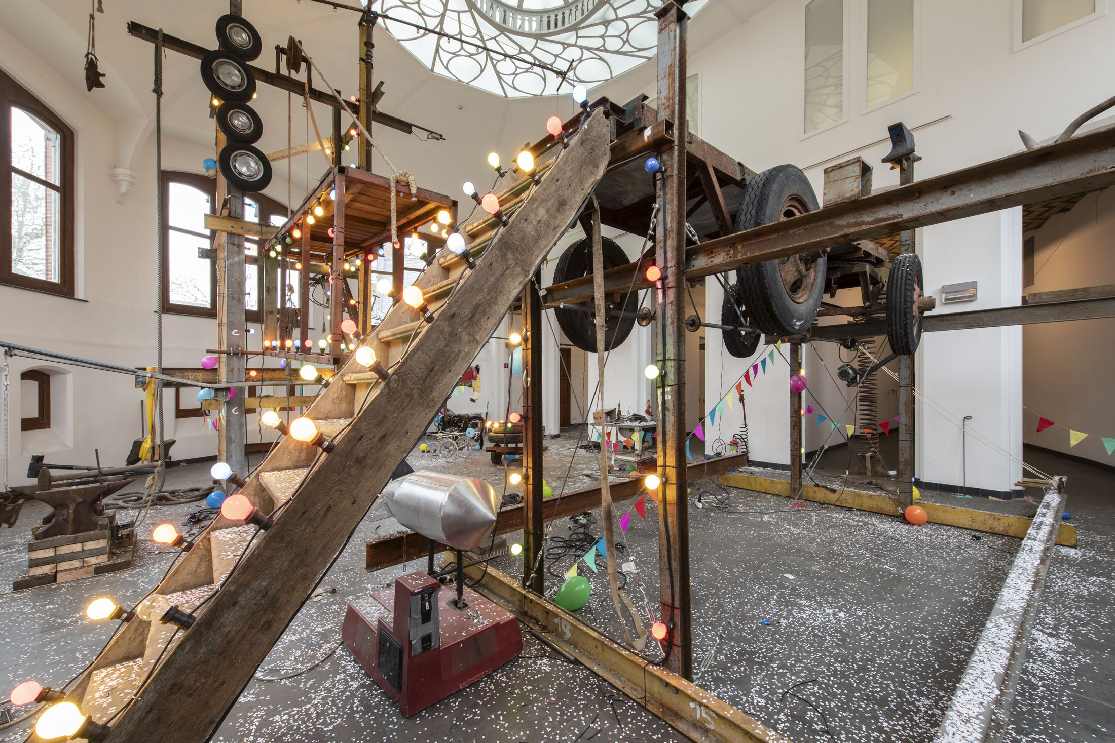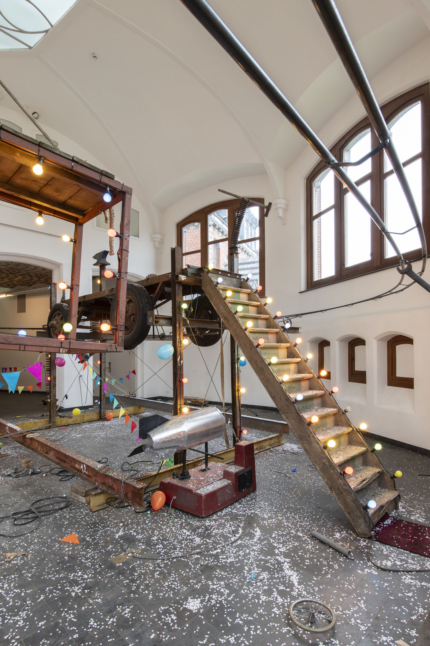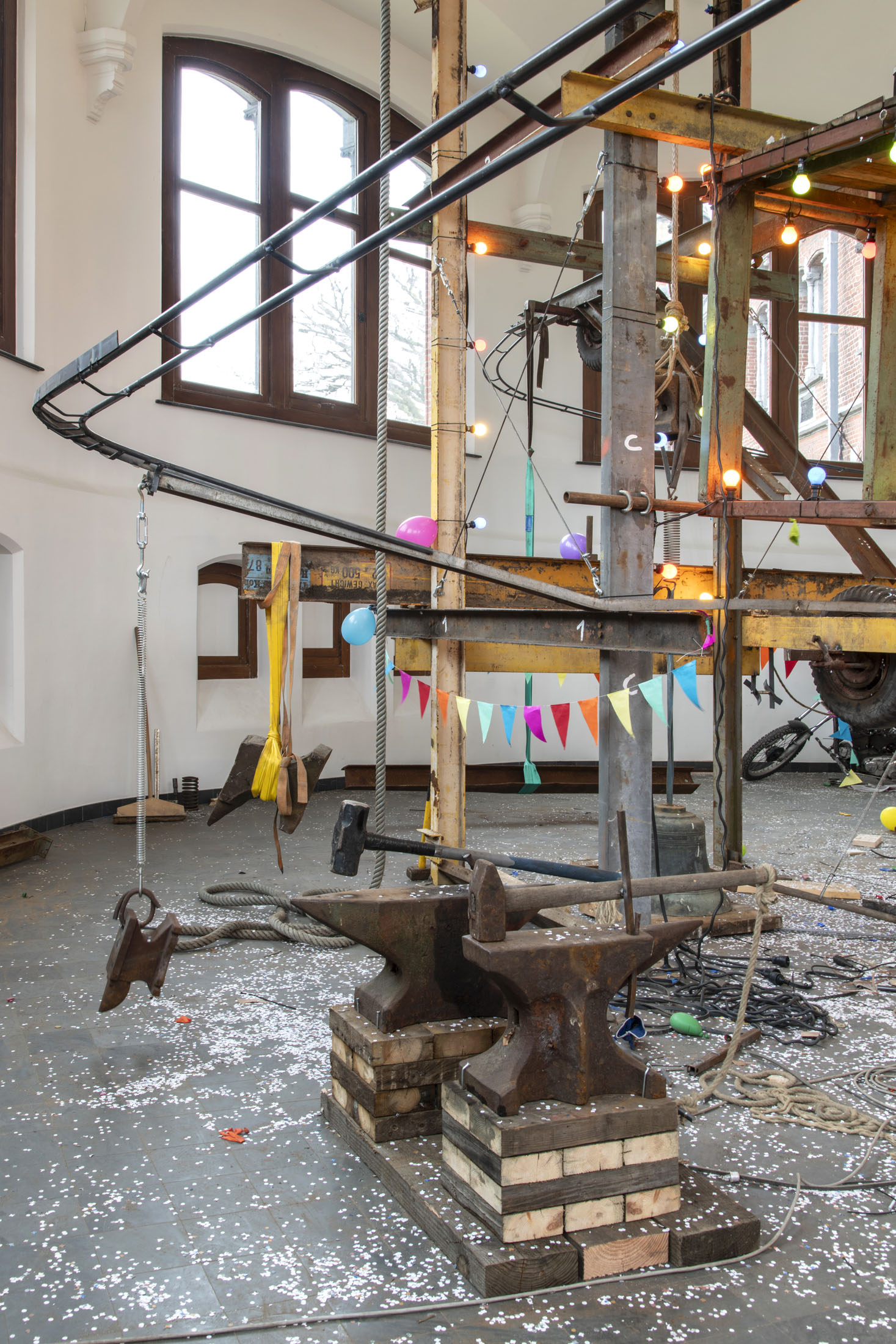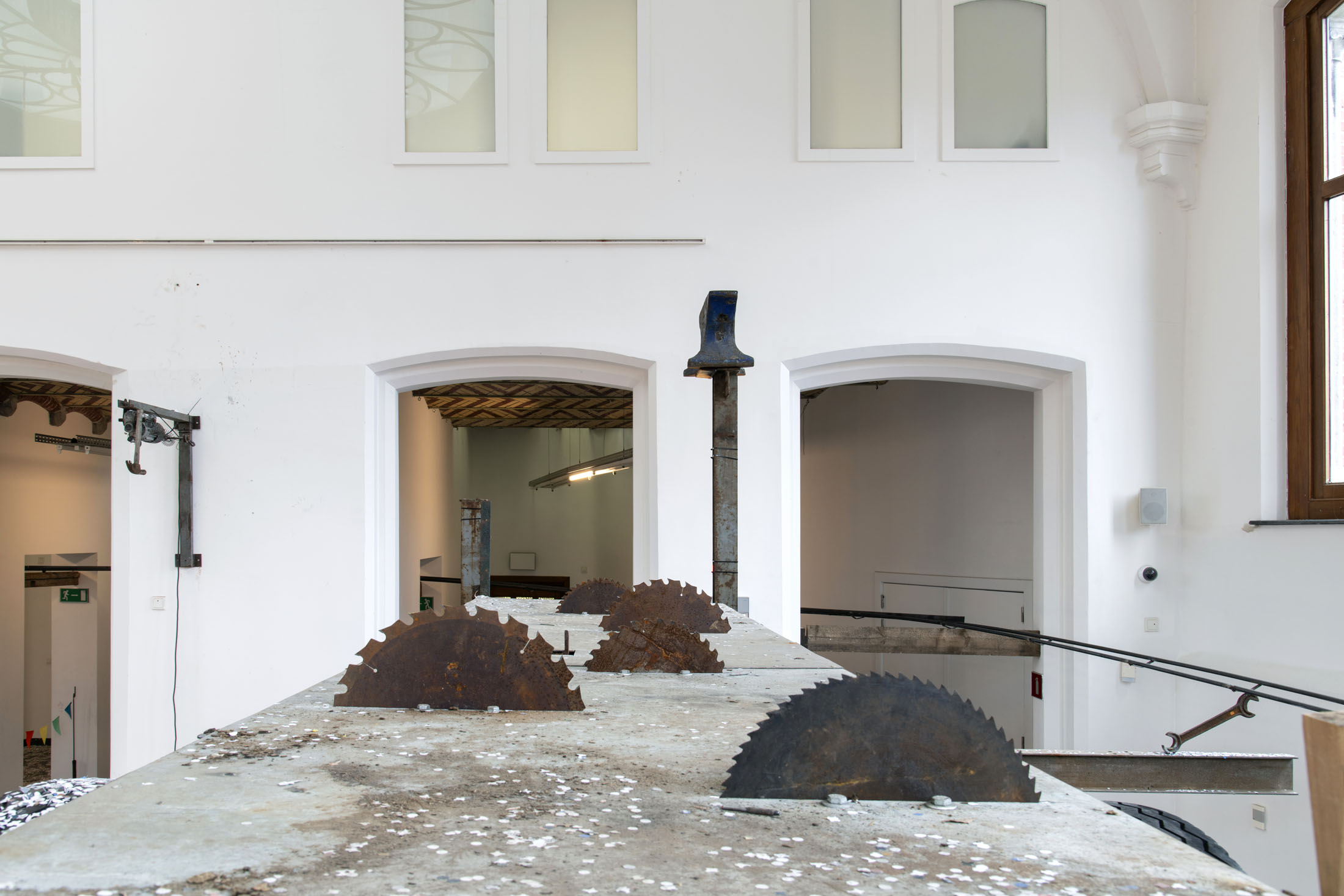 For KIOSK, Pauwaert has created a large-scale installation in which heavy machinery, saw blades, and festive objects converge in an explosive visual language that evokes both wonder and unease. This new presentation promises to be an intense, physical experience that fully engages the unique character of the Anatomical Theatre.