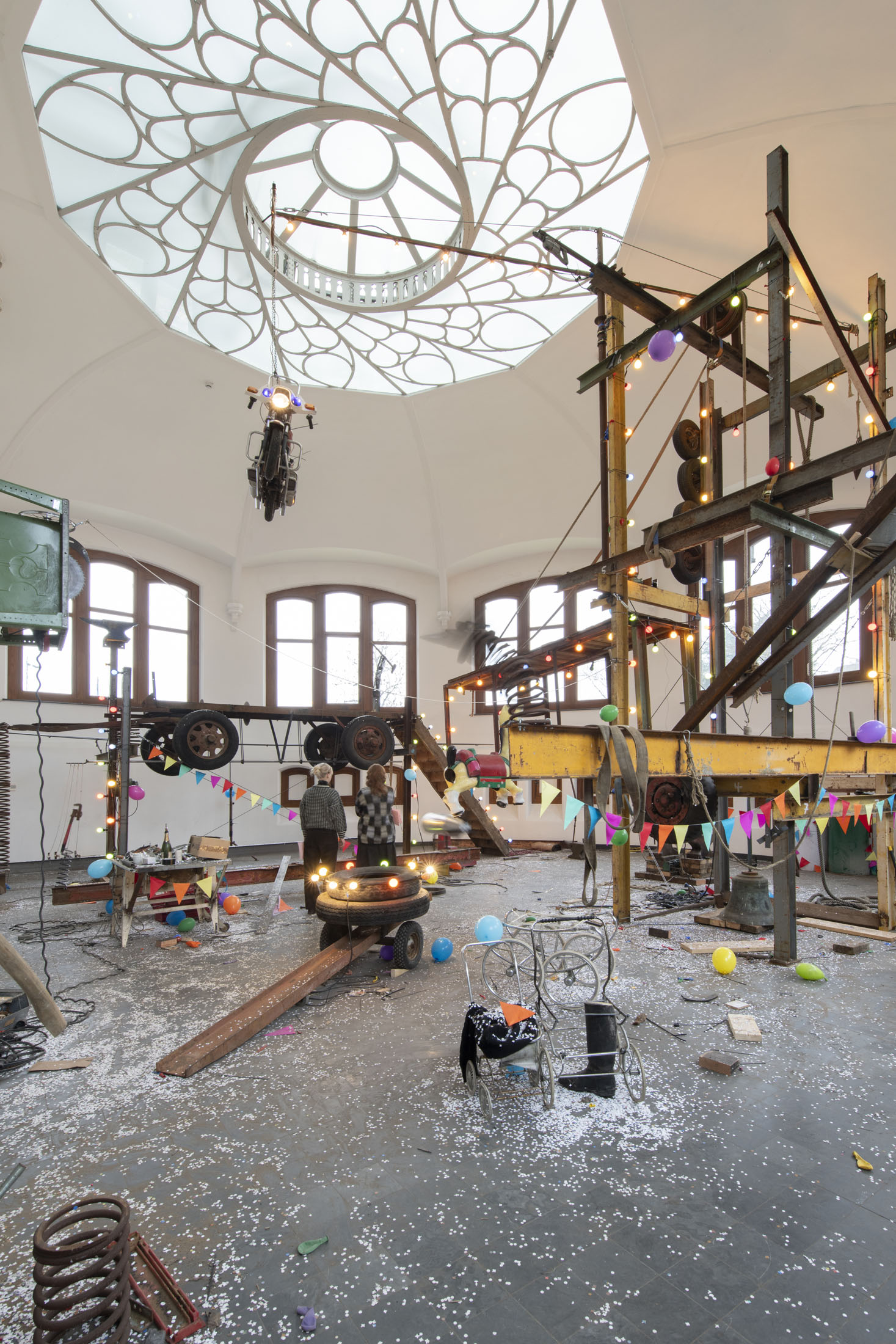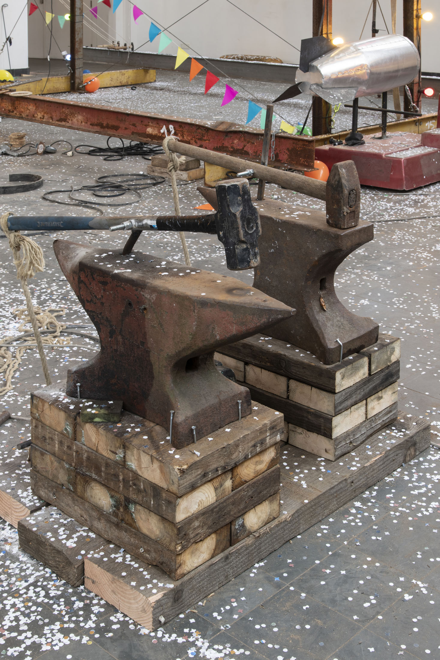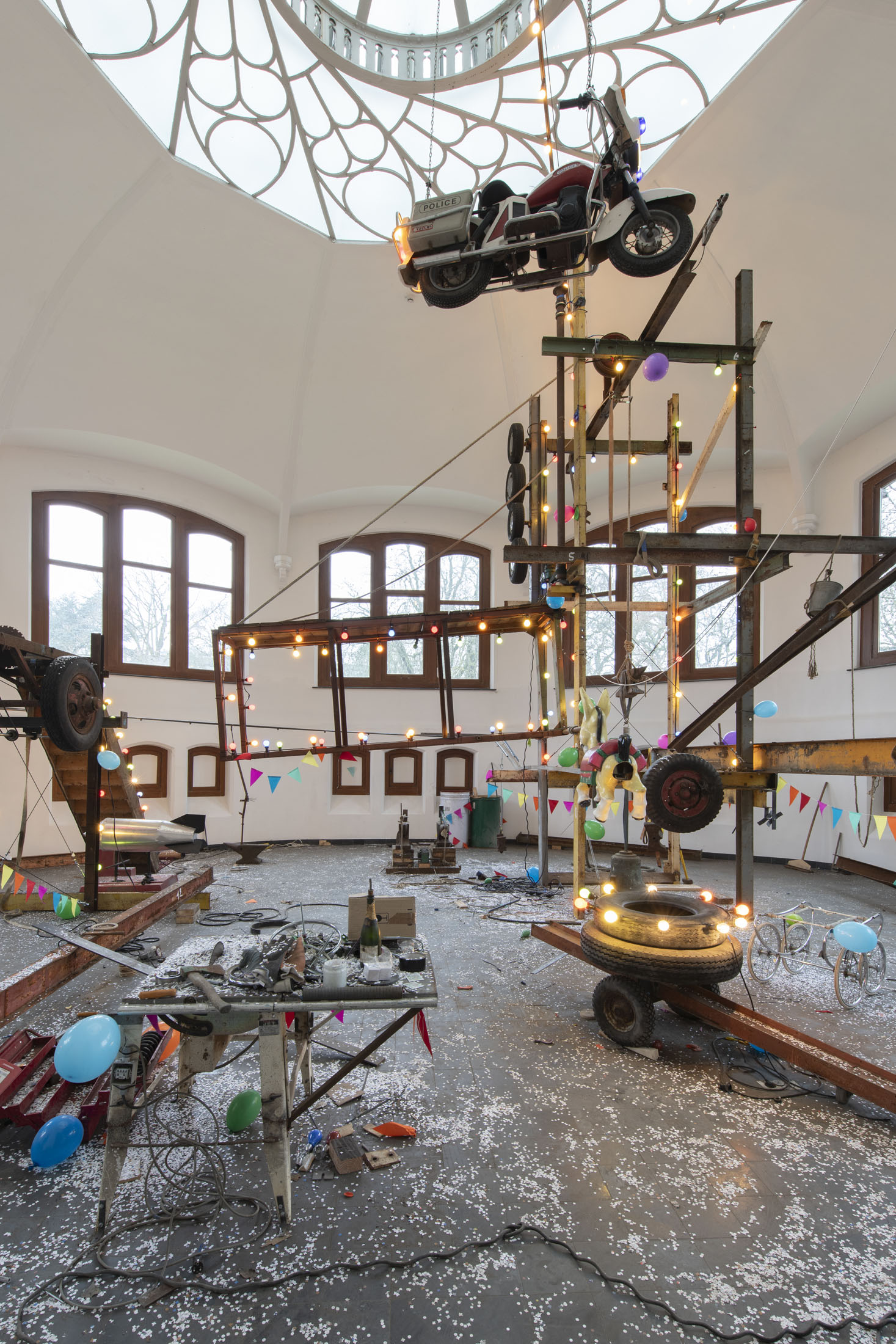 For KIOSK, Pauwaert has created a large-scale installation in which heavy machinery, saw blades, and festive objects converge in an explosive visual language that evokes both wonder and unease. This new presentation promises to be an intense, physical experience that fully engages the unique character of the Anatomical Theatre.