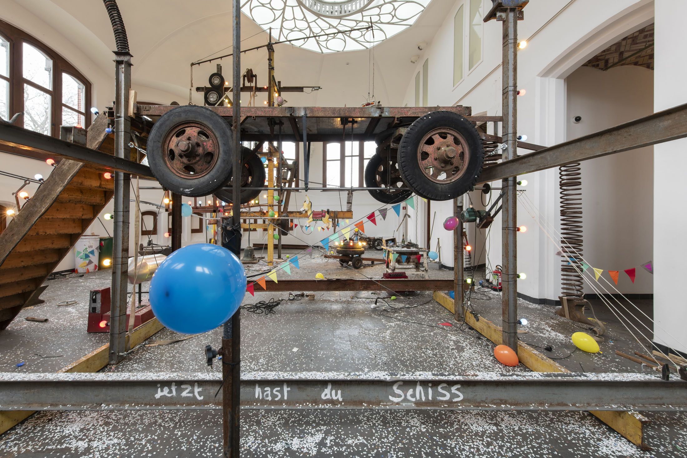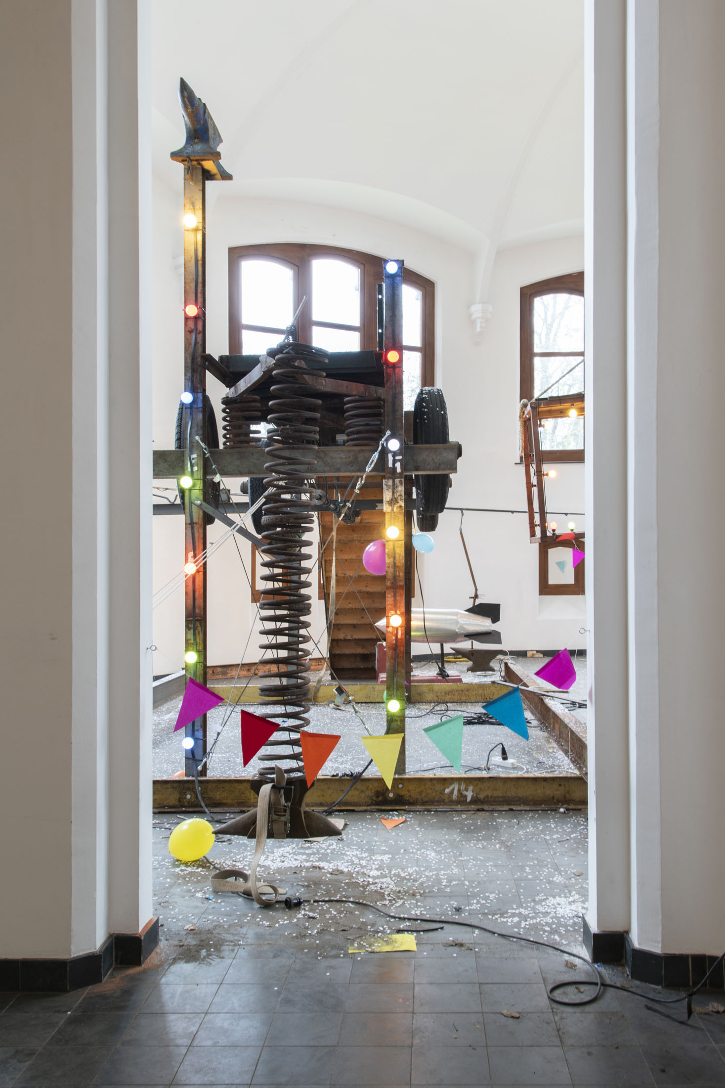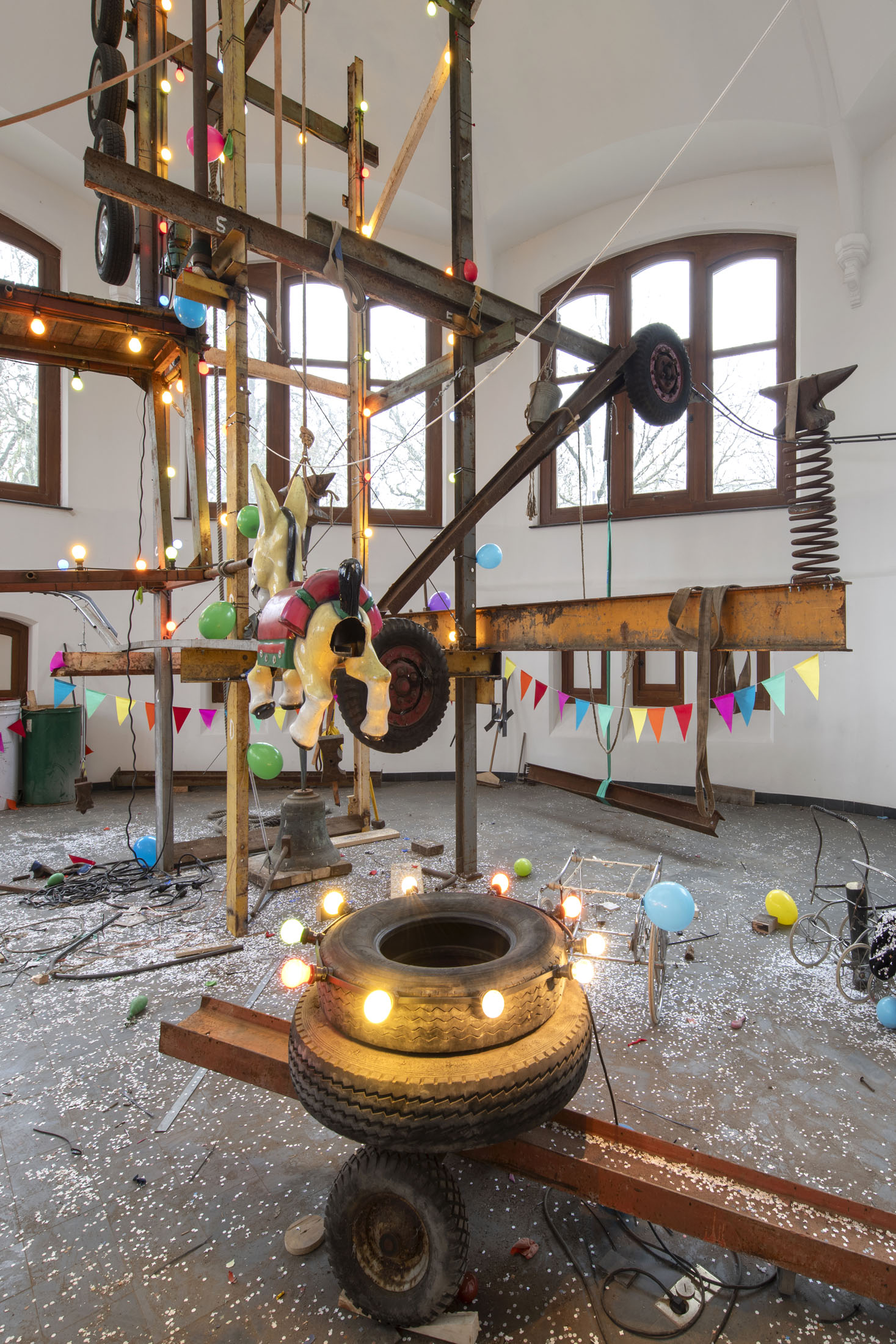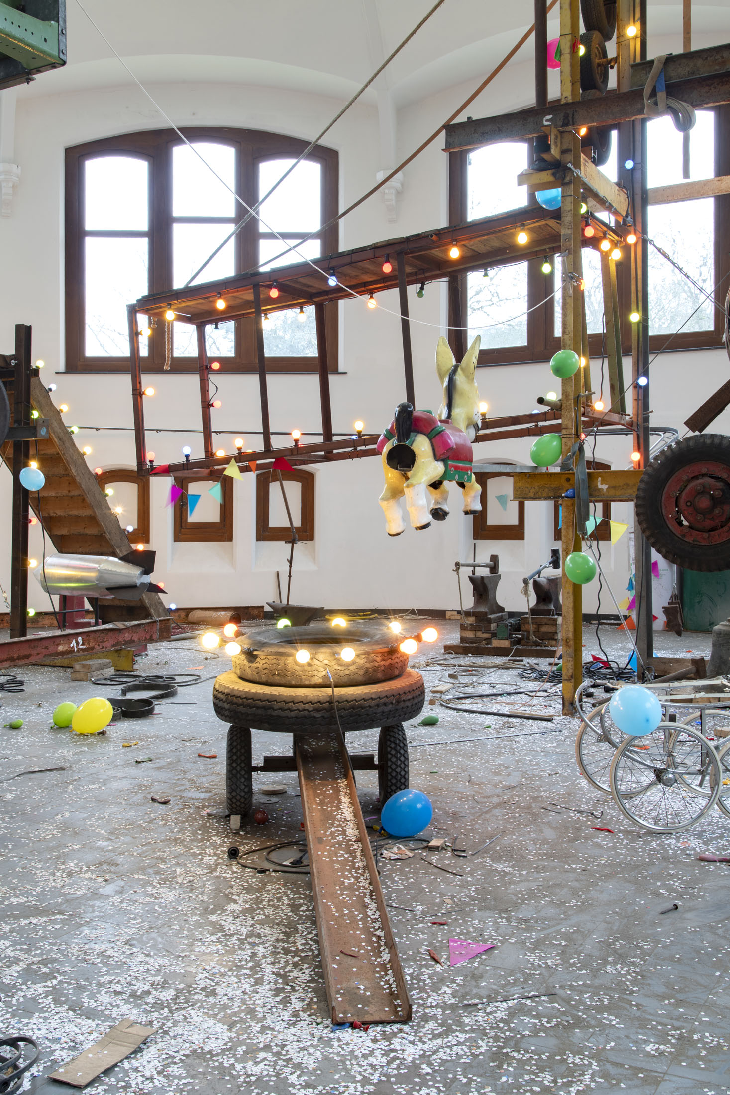 For KIOSK, Pauwaert has created a large-scale installation in which heavy machinery, saw blades, and festive objects converge in an explosive visual language that evokes both wonder and unease. This new presentation promises to be an intense, physical experience that fully engages the unique character of the Anatomical Theatre.