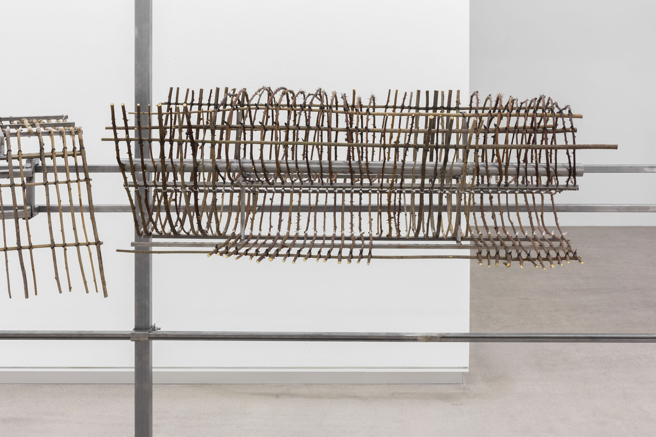 The work I am presenting in the studio space is an adaptation of an exhibition with the same title I had last summer at Temple Bar Gallery + Studios in Dublin. I started off from a drawing based on a written description of the inside of a tiny room with a door opening onto the galleryin Dublin. Inside it there was nothing but light switches, the closed-circuit system and cleaning products. The effort of imagining the space from the meticulous text that Michael Hill, the exhibition’s curator, had sent to me and the attempt to represent it in a drawing, was my way of foreclosing the impulse to explore my affective relationship with Dublin or any history associated with the site. And so, in this way, the main sculpture, made from bramble branches collected in Artxanda, established a certain distance from the Irish art centre and its audience, in contrast to the insect drawings, which sought to appeal directly to visitors. Now, here in Bilbao, I believe those distances are reversed and are inevitably shorter. I live here, and I produced the work with the help of friends, recovering and integrating a vague memory of forms belonging to another work that can also be traced back to this place some years ago, when I was just beginning to get to know it.