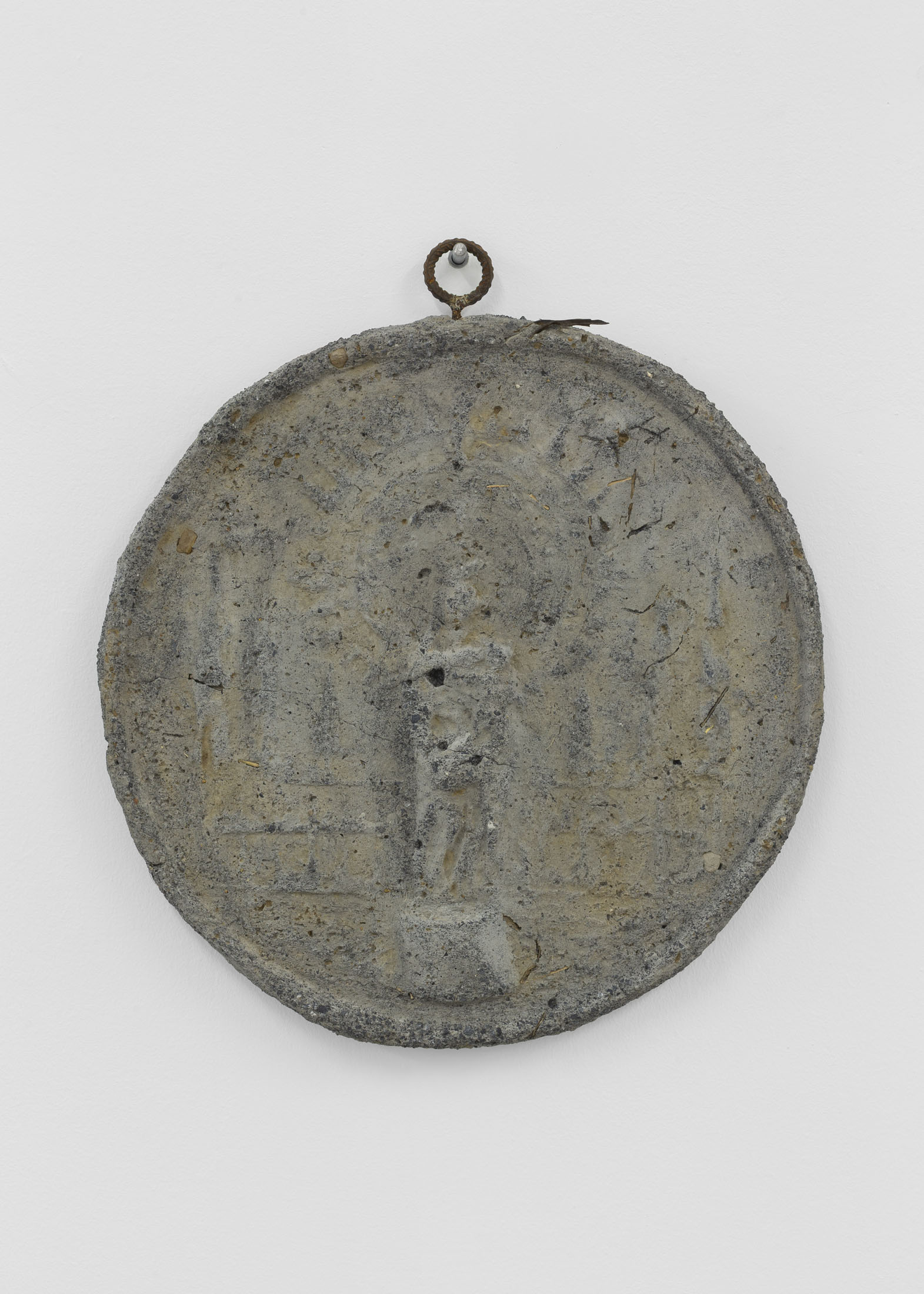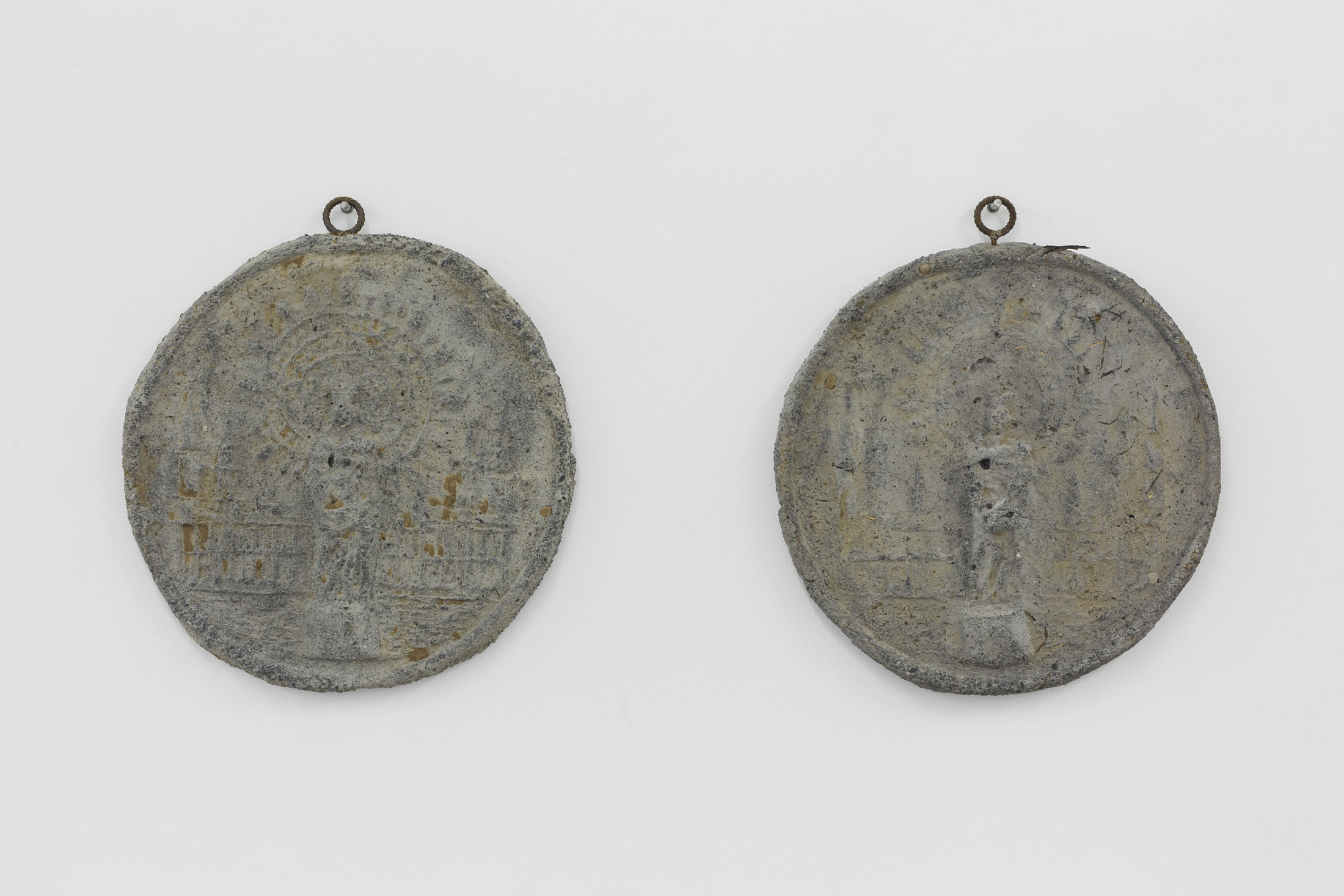 At the same time, the point of departure for the series I am presenting in the corridor space was the idea of changing scale and reproducing religious medals and pendants by observing them through a magnifying glass, initially with the idea of bringing them closer to the stone figures carved on the façades of churches. By means of this device, which also implies distance on my behalf, I could somehow counteract the strange feeling of realising that for a large part of my life I have worn the miniature representation of strangers around my neck.