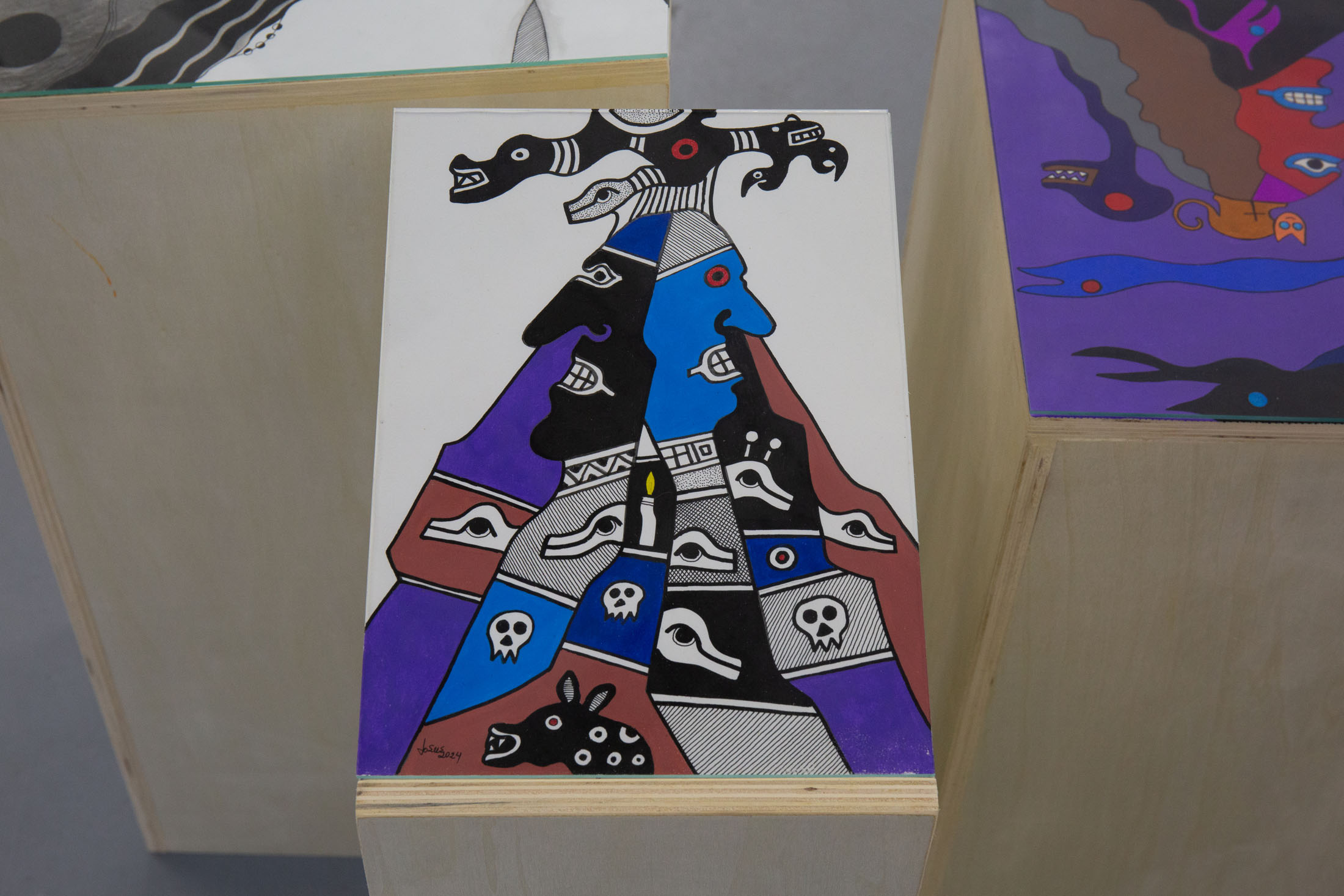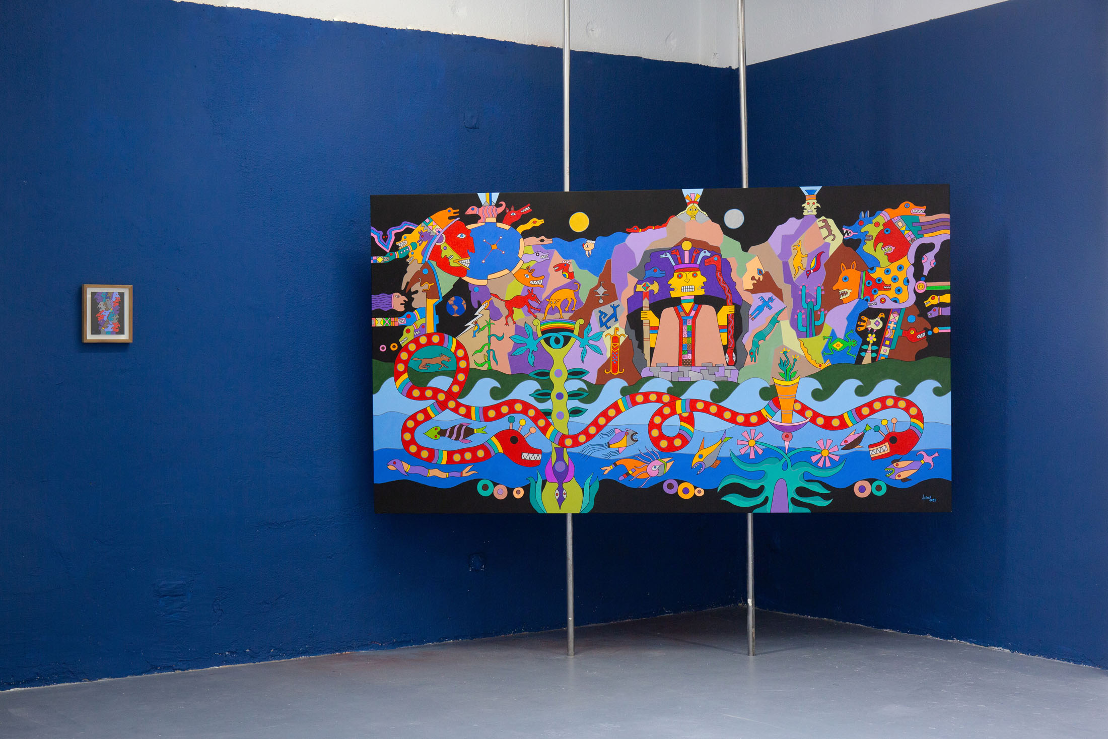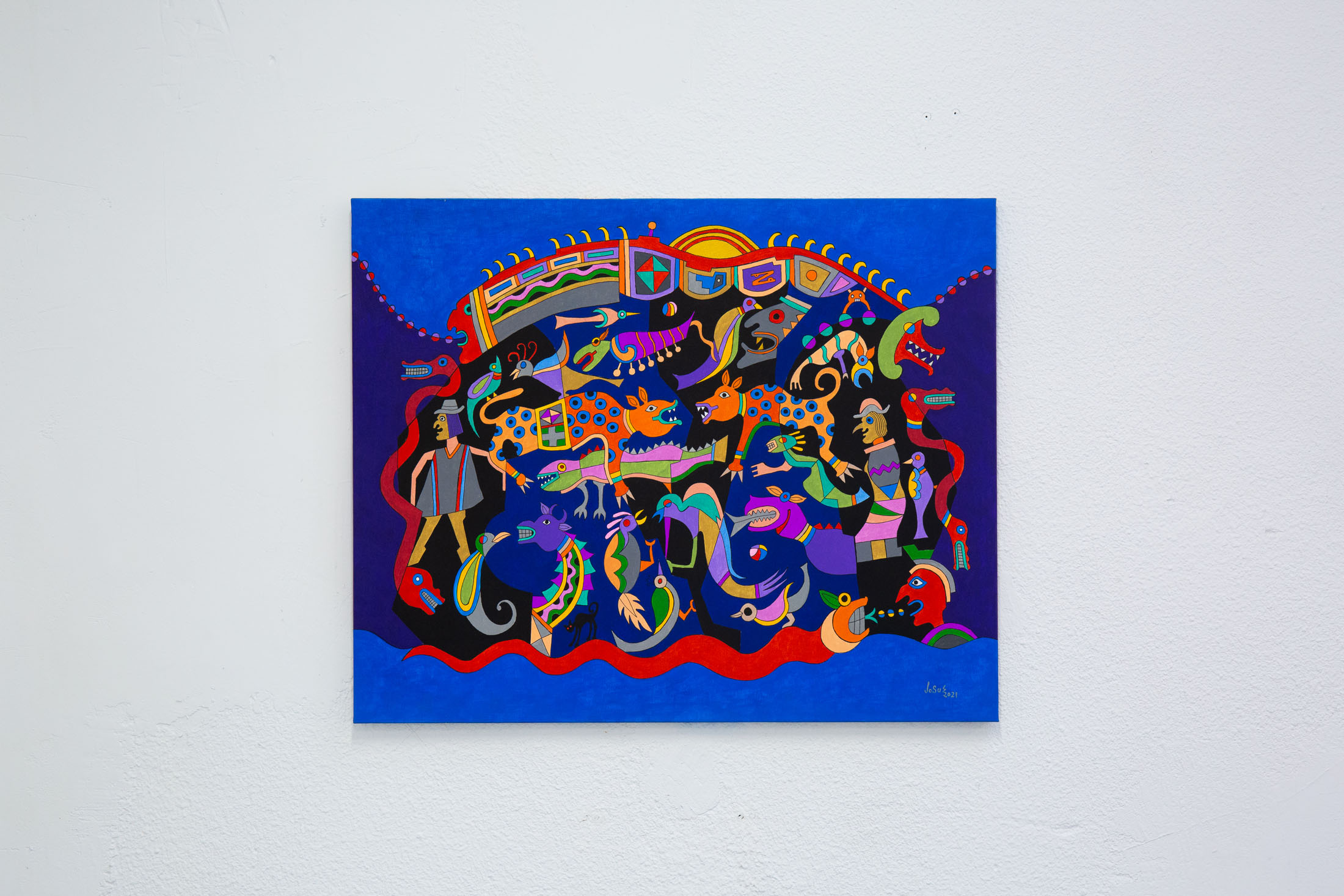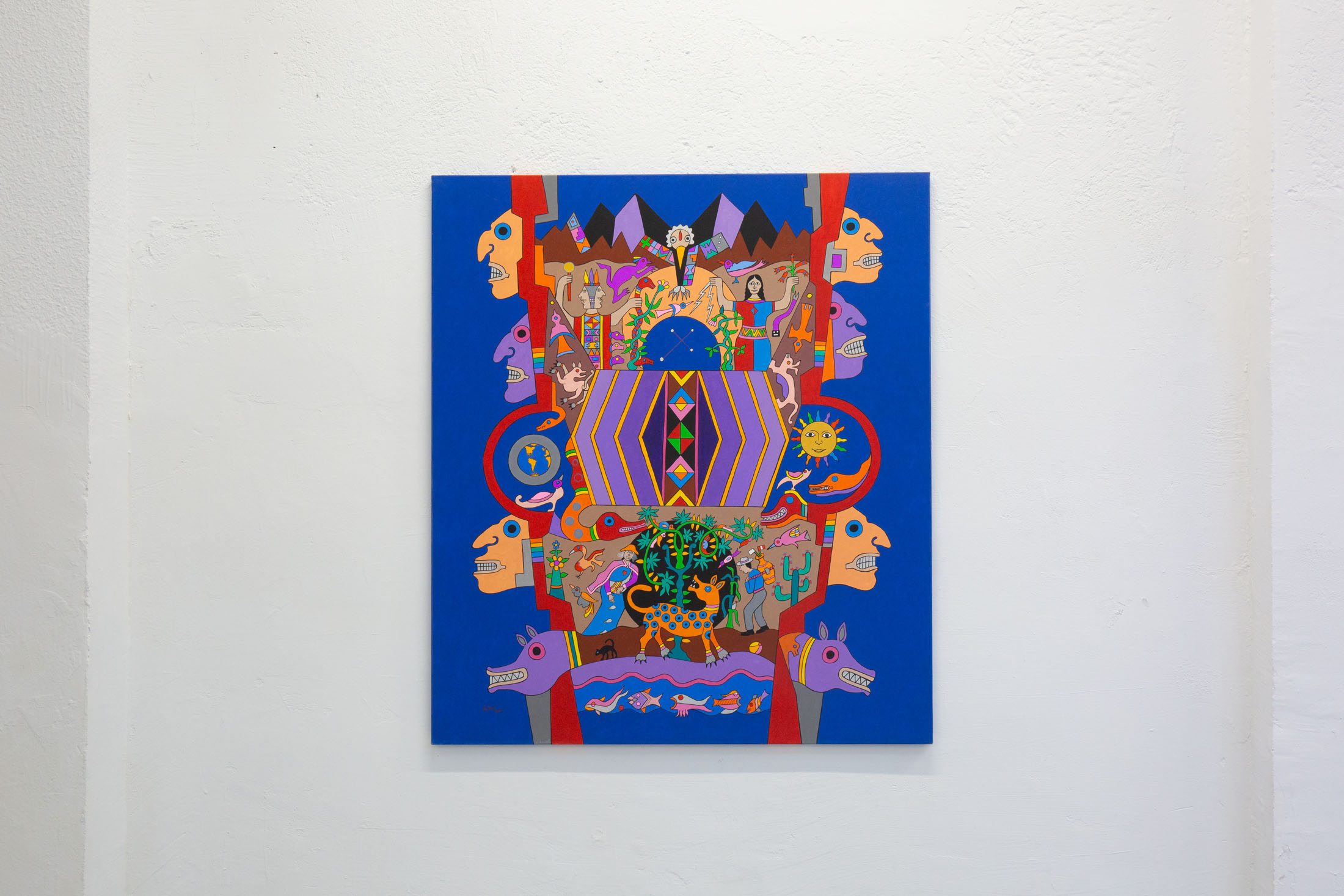 His extensive research explores the iconography of textiles, Andean art and literature, rural architecture, and the knowledge of plants and spiritual beings. His most recent paintings arise amid Peru’s severe political crisis—decades of corruption, discrimination, and inequality— but his works echo far beyond the local, speaking to shared global concerns that can be approached through the recognition of Andean mythic knowledge and creative expressions.