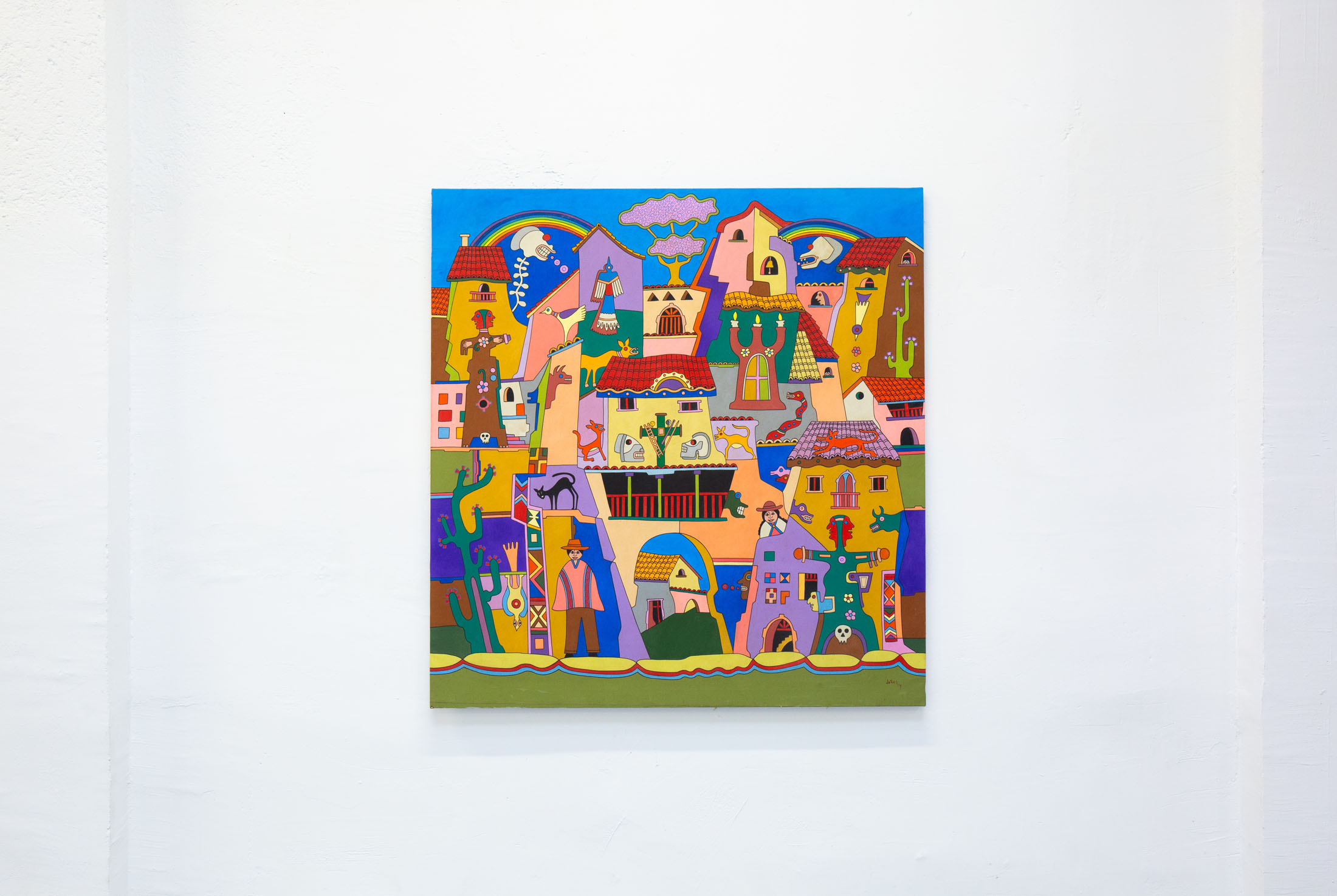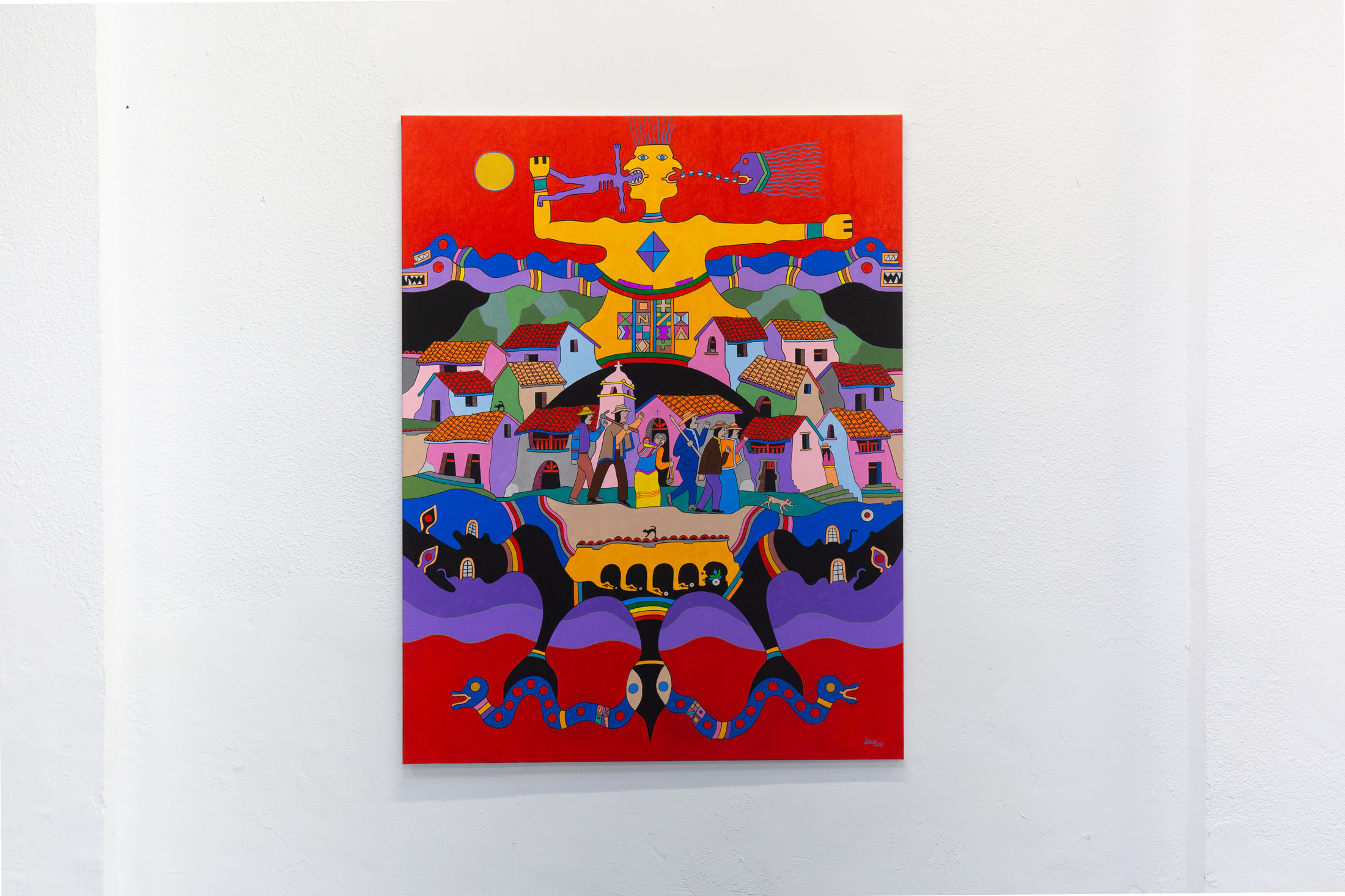 His murals and paintings—held in institutions such as the Museo de Arte de Lima (MALI), the Museo de Arte Contemporáneo de Lima (MAC Lima), and the MISSIO Sanctuary in Aachen, Germany—consolidate a body of work where the ancestral and the contemporary coexist within the same symbolic rhythm.