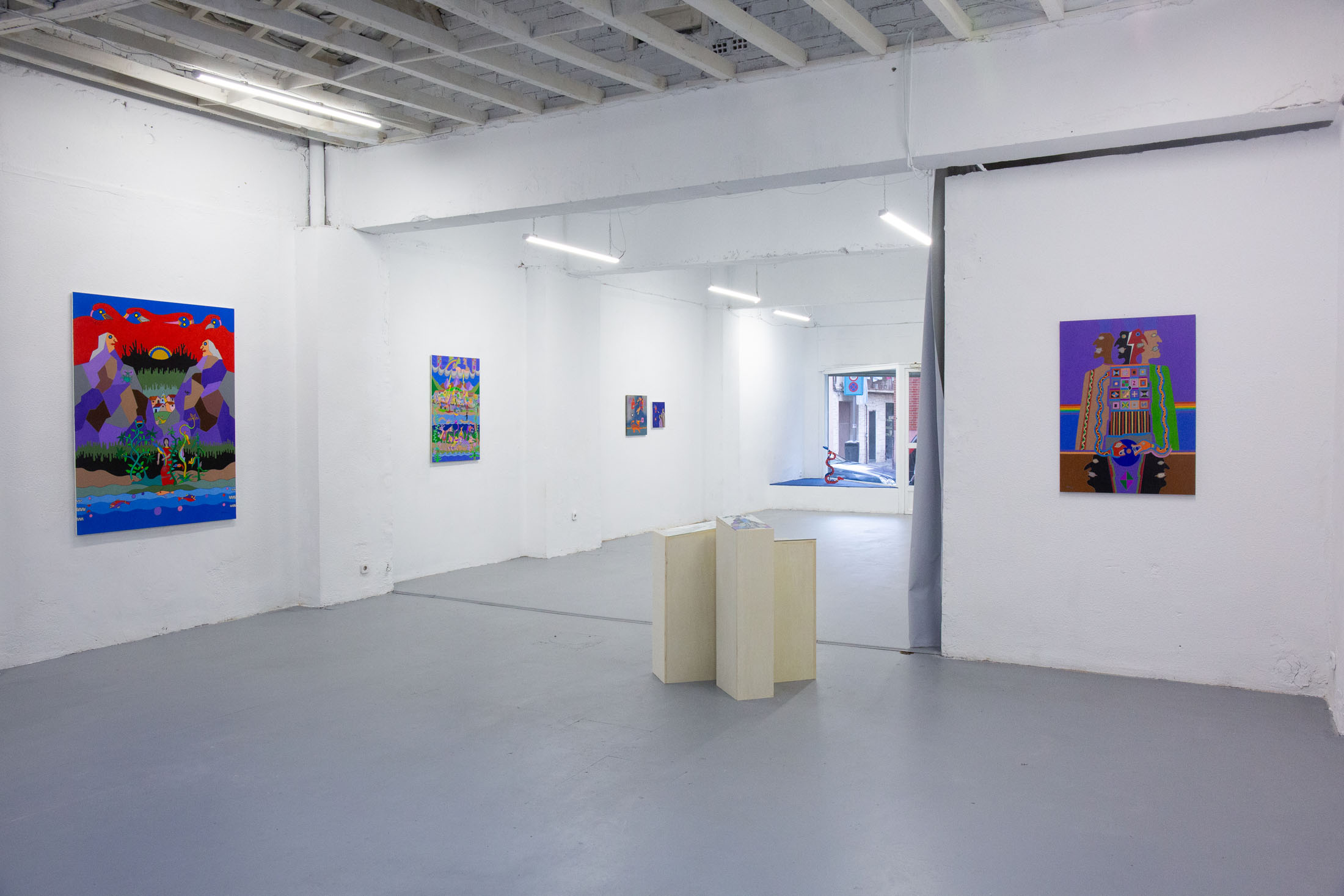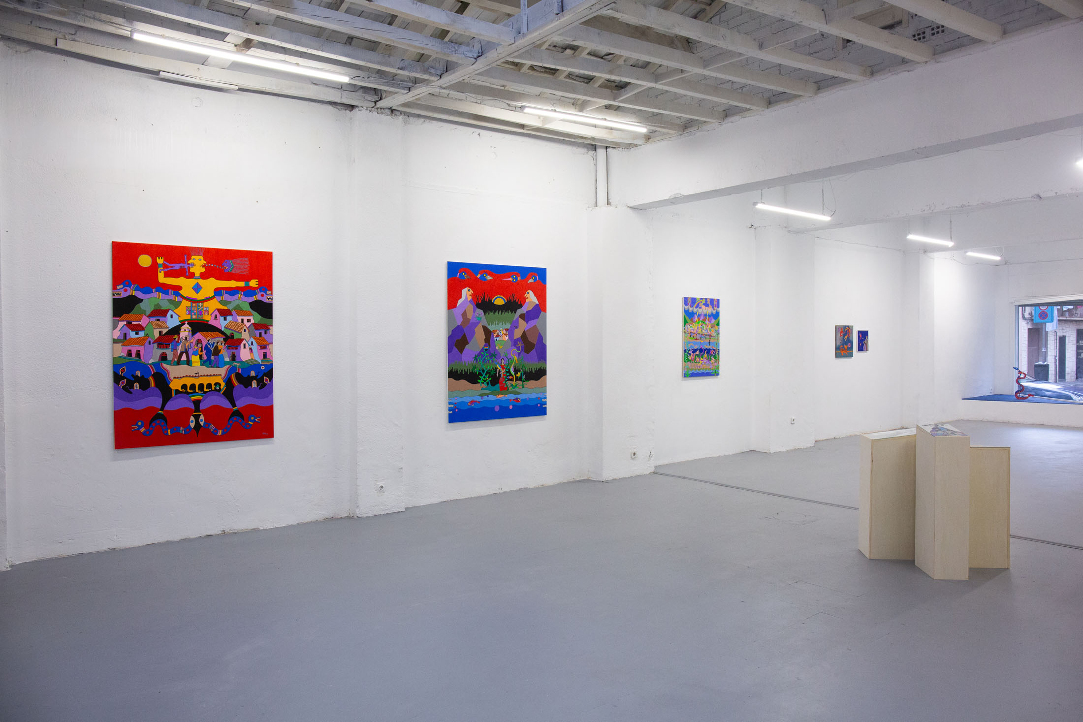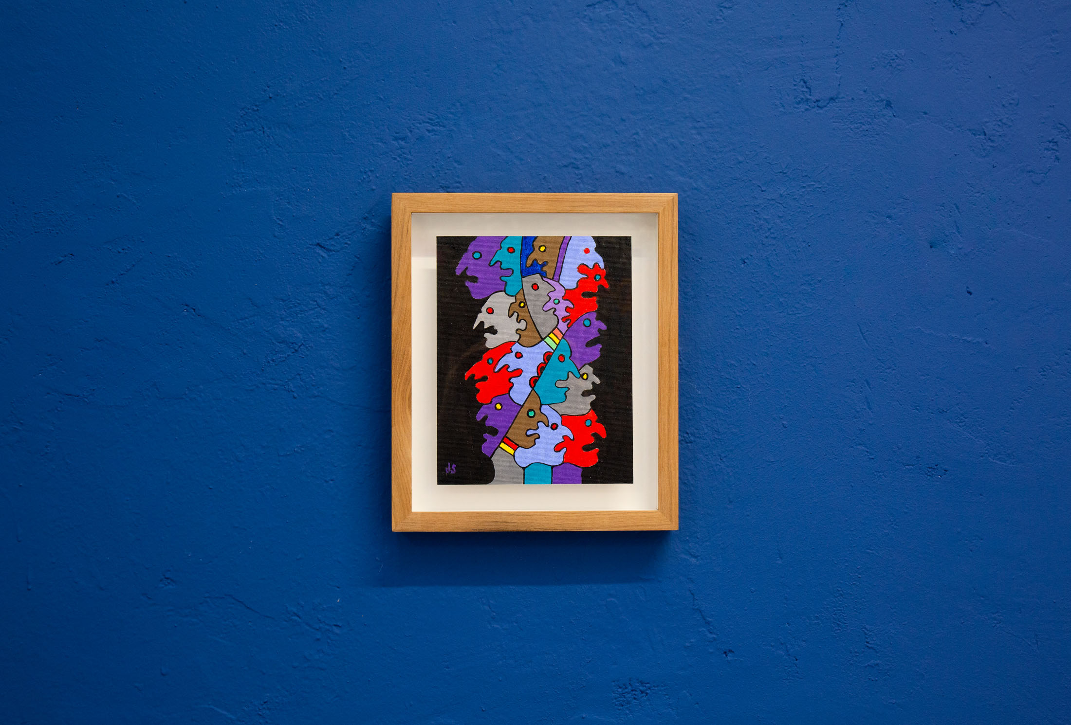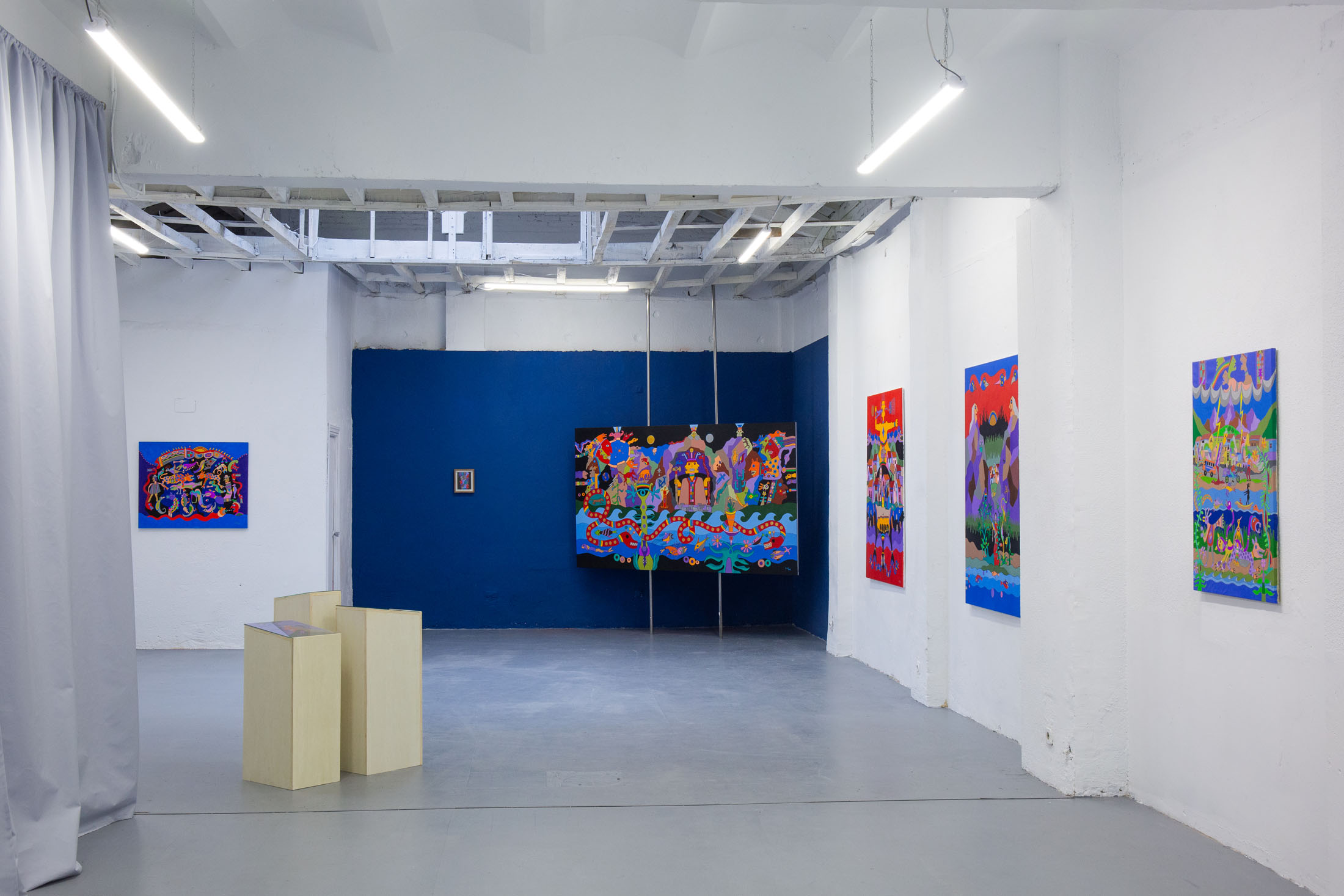 His first solo exhibition at Enhorabuena Espacio in Madrid takes its title from his work “The Breath of Time (2025)”. In it, Josué represents a network of coexistence among beings within the Uku Pacha (the underworld), the Kay Pacha (the world of the here and now), and the Hanan Pacha (the upper world). Mythology, as the breath of times past, calls forth a plural vision. There are divine beings such as Wiracocha, the creator of the universe—the axis that inhabits and sustains all things—as well as female deities, like Mama Huaco, whose presence and light extend toward the sky.