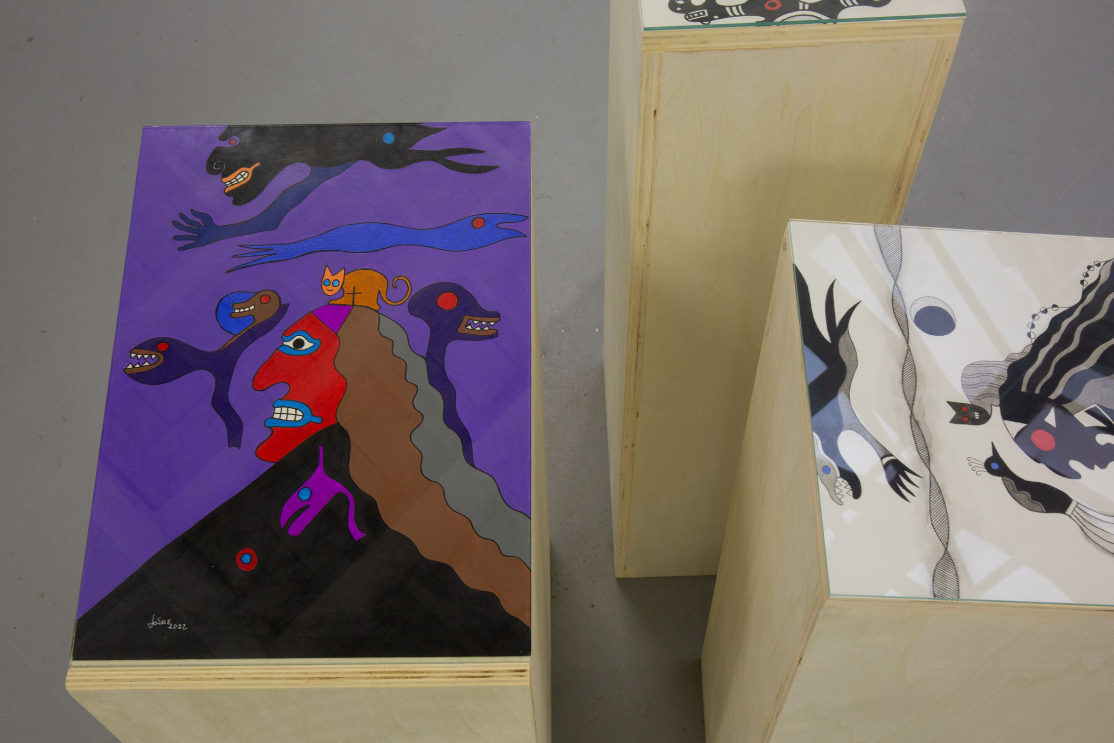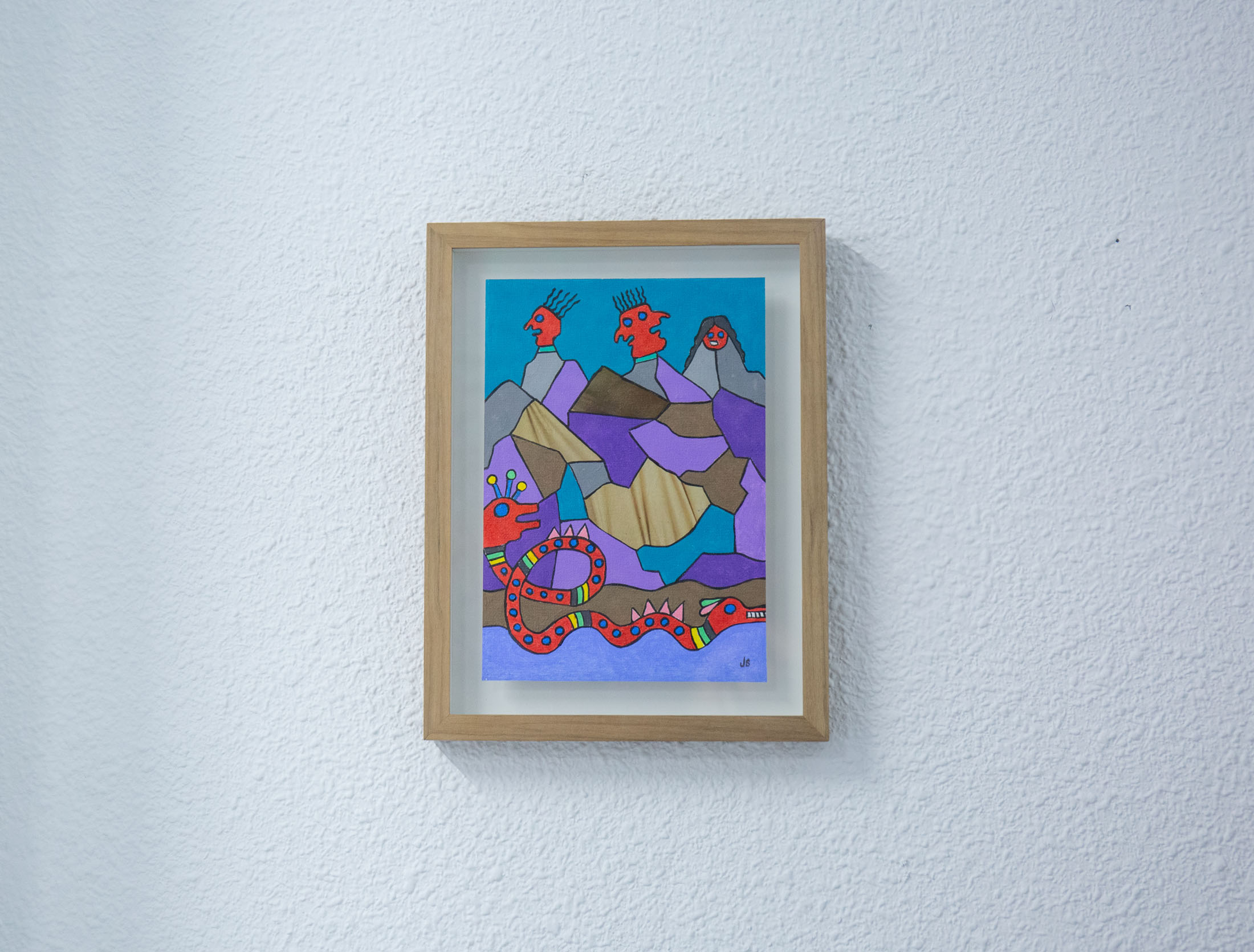 It is a mythic time, inhabited by encounters and also by conflicts: with the amaru, with the branches and roots of trees, and with stone walls that weave the spaces together. Josué invites us to recognize the continuities between this mythic thought and the current cycle—to imagine ways of living that restore solidarity among beings and aspire to the reconstruction of a balanced coexistence, through this breath of the ancient that becomes present again, reminding us of hope and the possibility of rebirth.