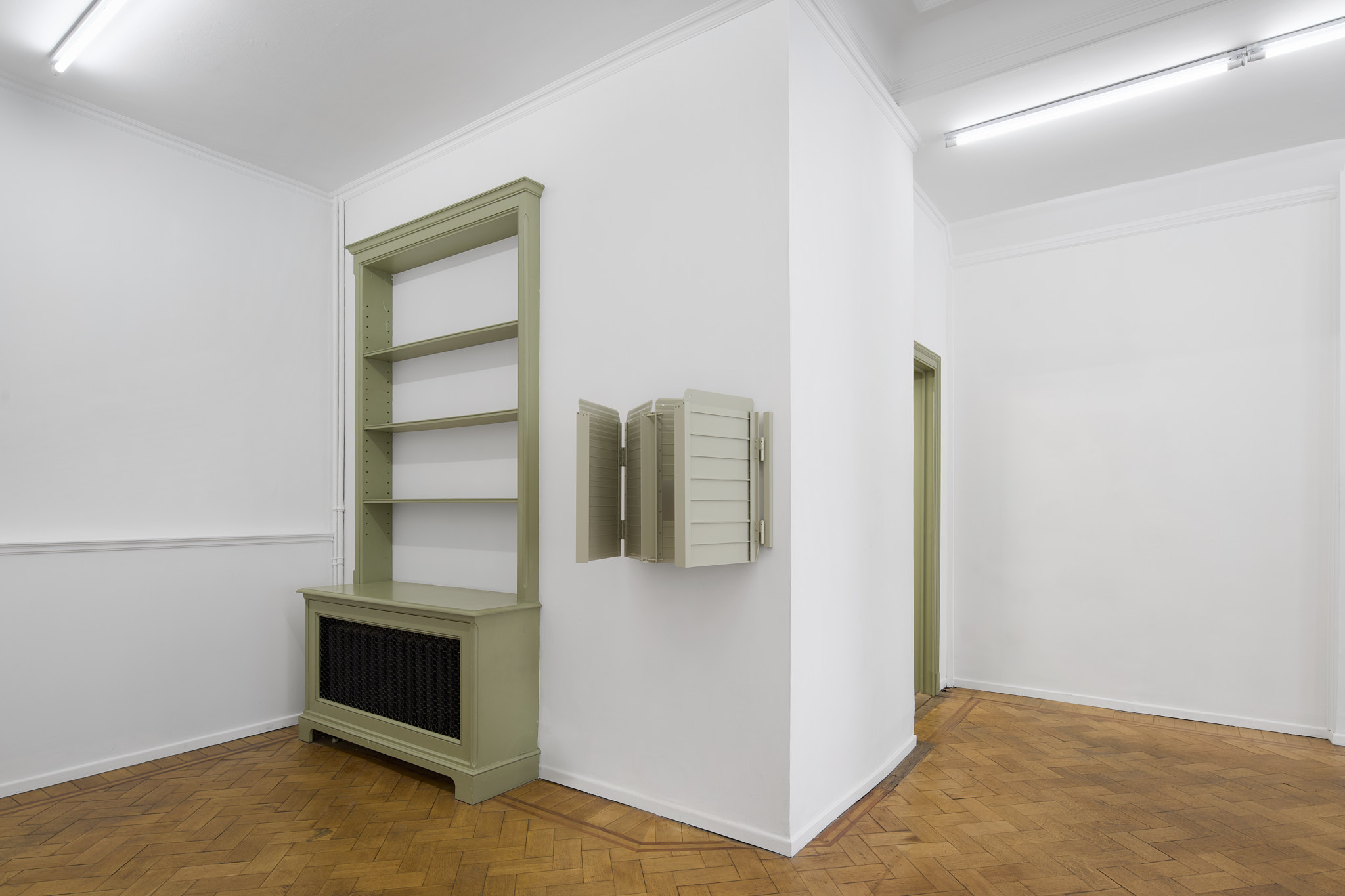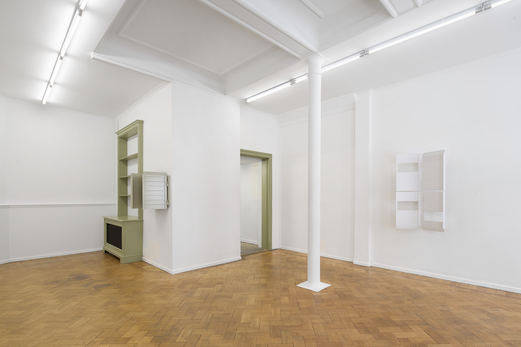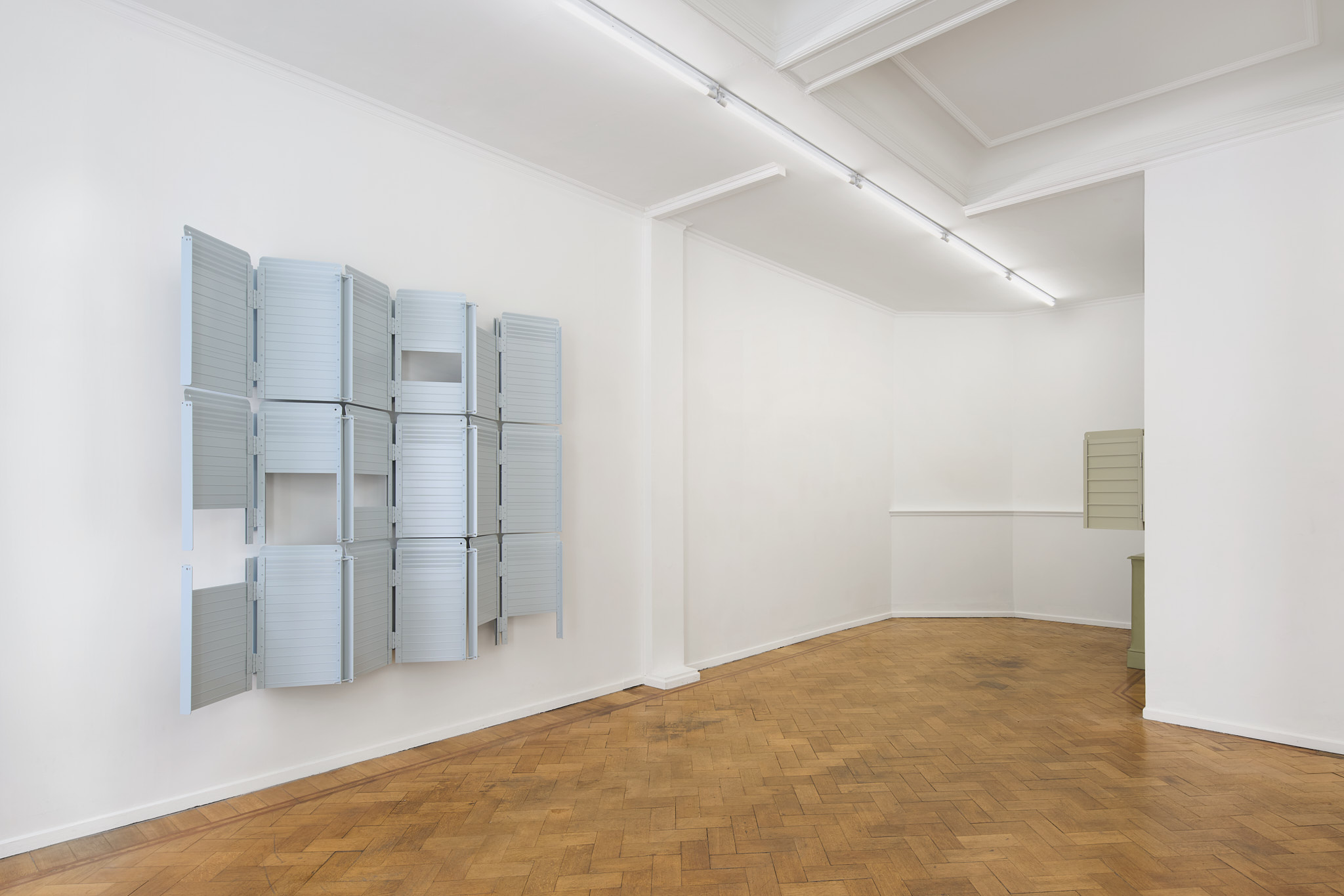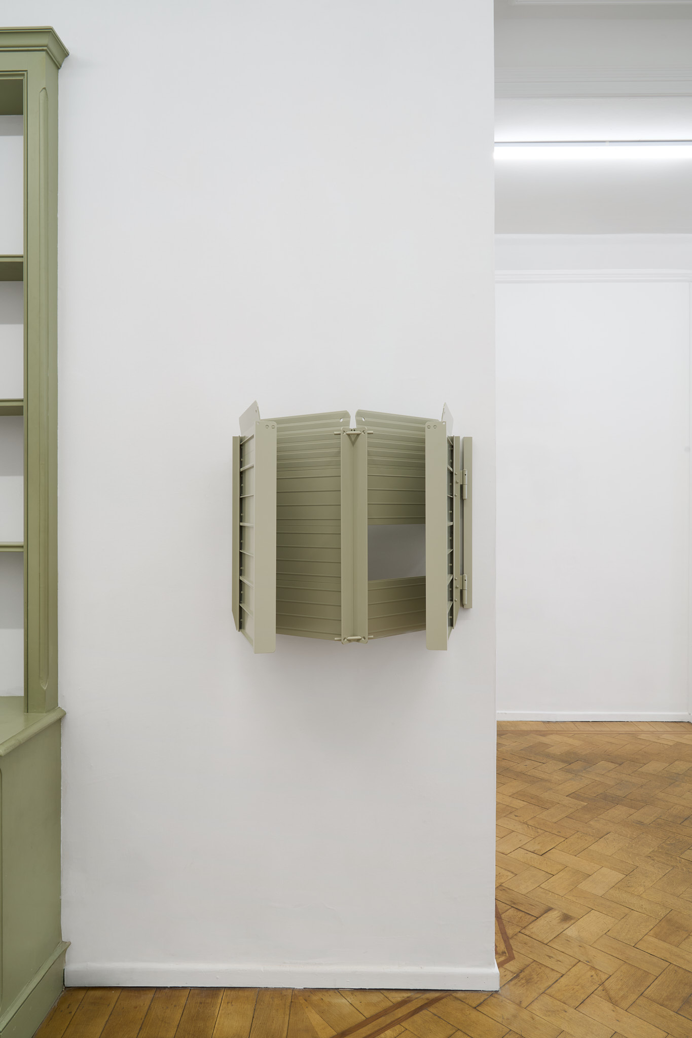 This new body of work by JUDITH KAKON evokes the artist’s interest in vision, both as the literal act of viewing and the idea of imagination. Her investigation typically starts with common objects. A series of foldable ramps used to facilitate access through doors over stairs are altered, re-purposed, and lacquered.
