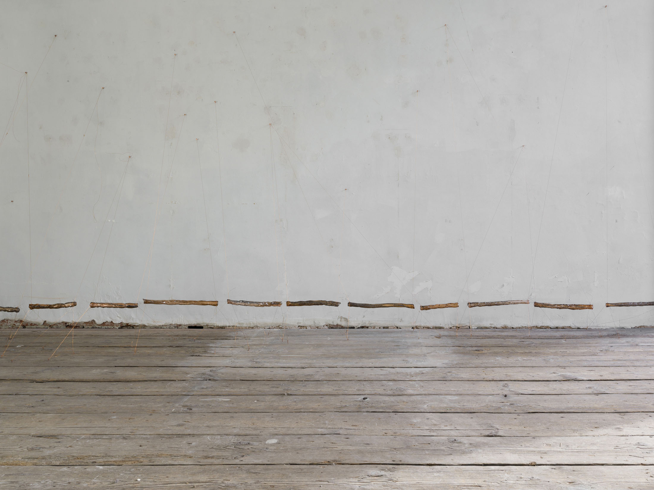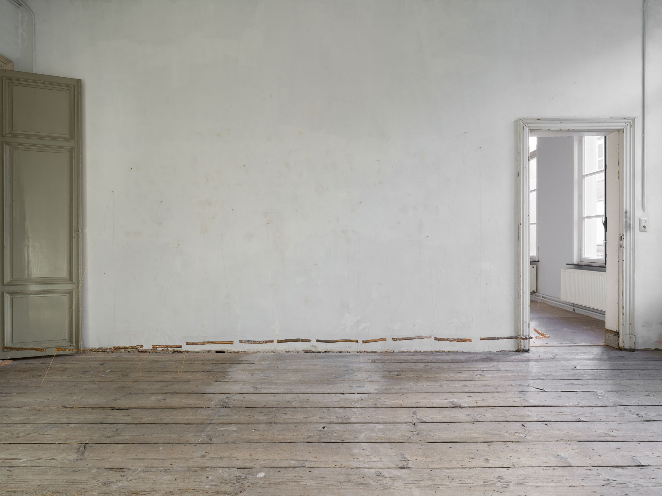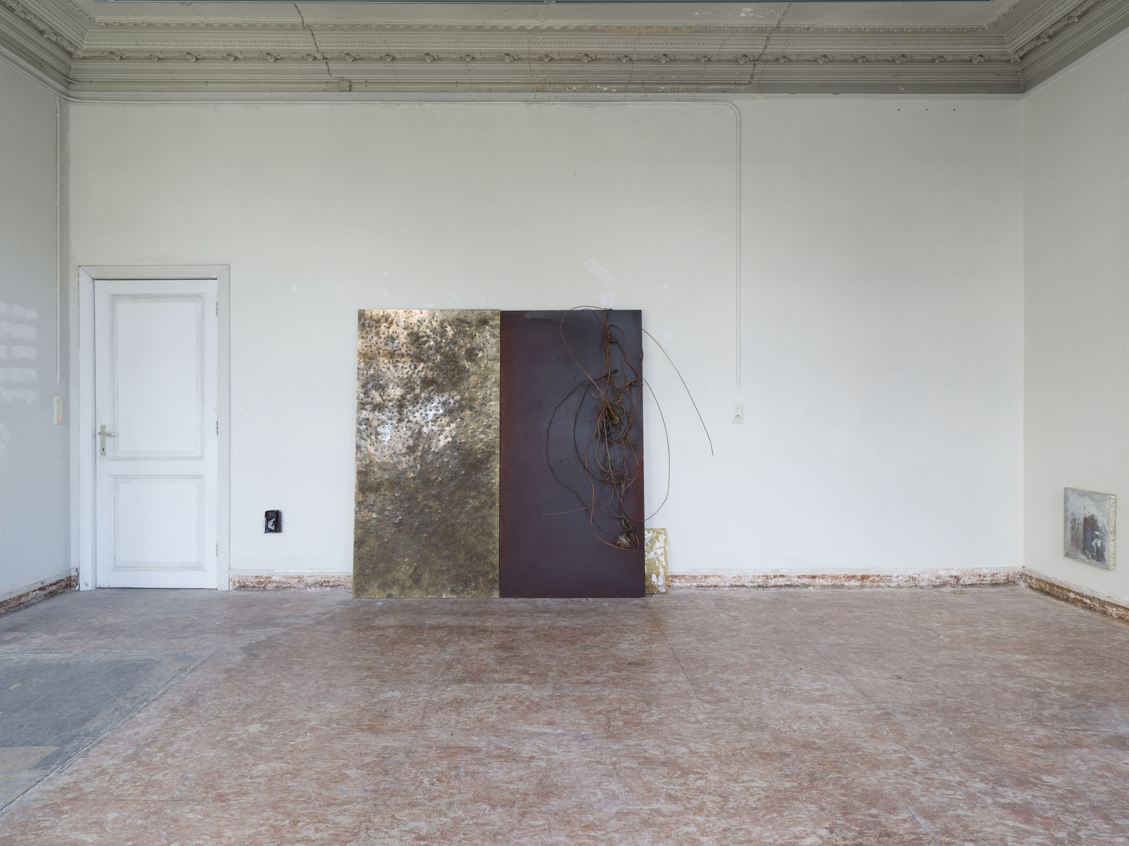 mountaincutters (°1990) establishes the material and spatial conditions through which the exhibition unfolds. Their installations operate as provisional architectures that neither stabilise the room nor define it conclusively. Instead, they introduce a state of tension that shapes how bodies move through the space and how attention is allocated.
