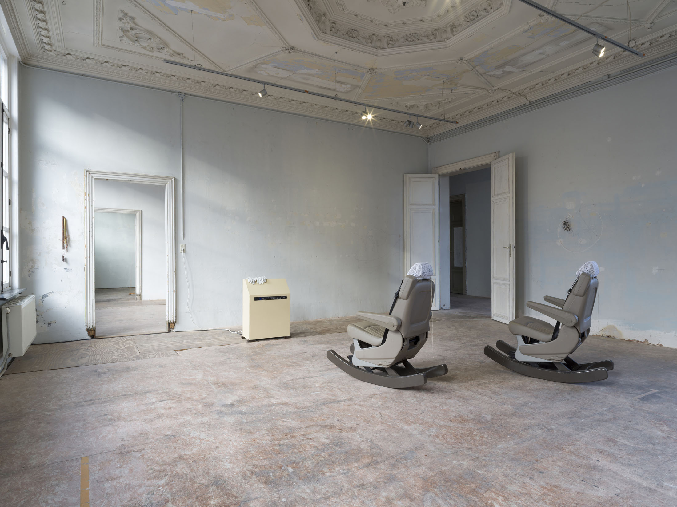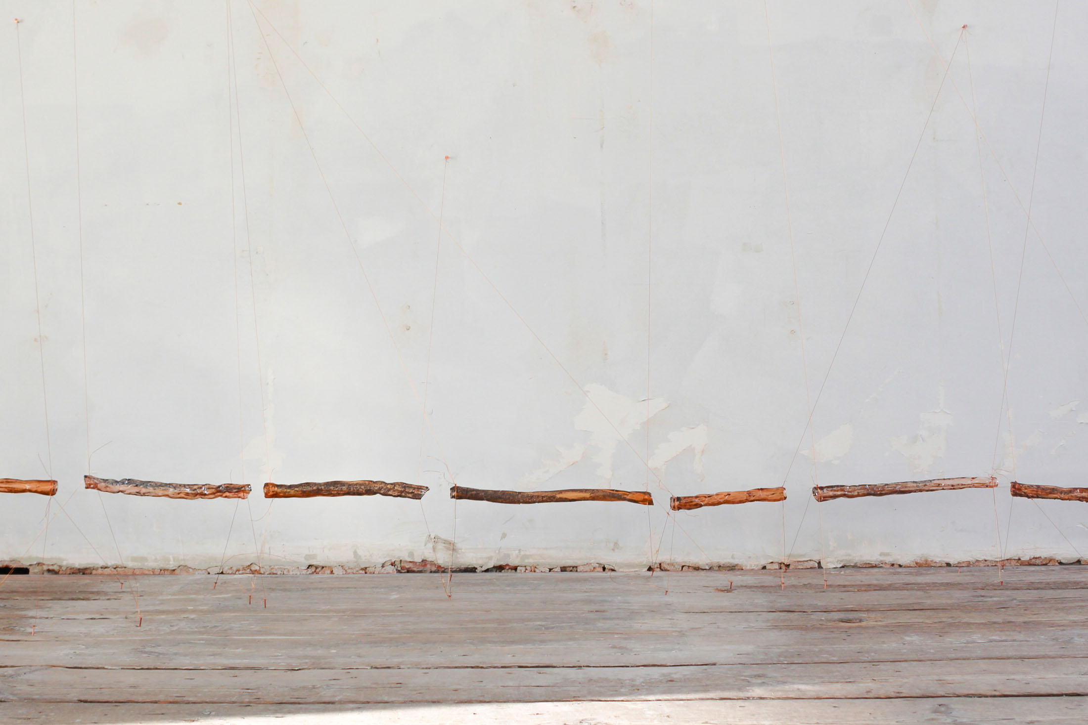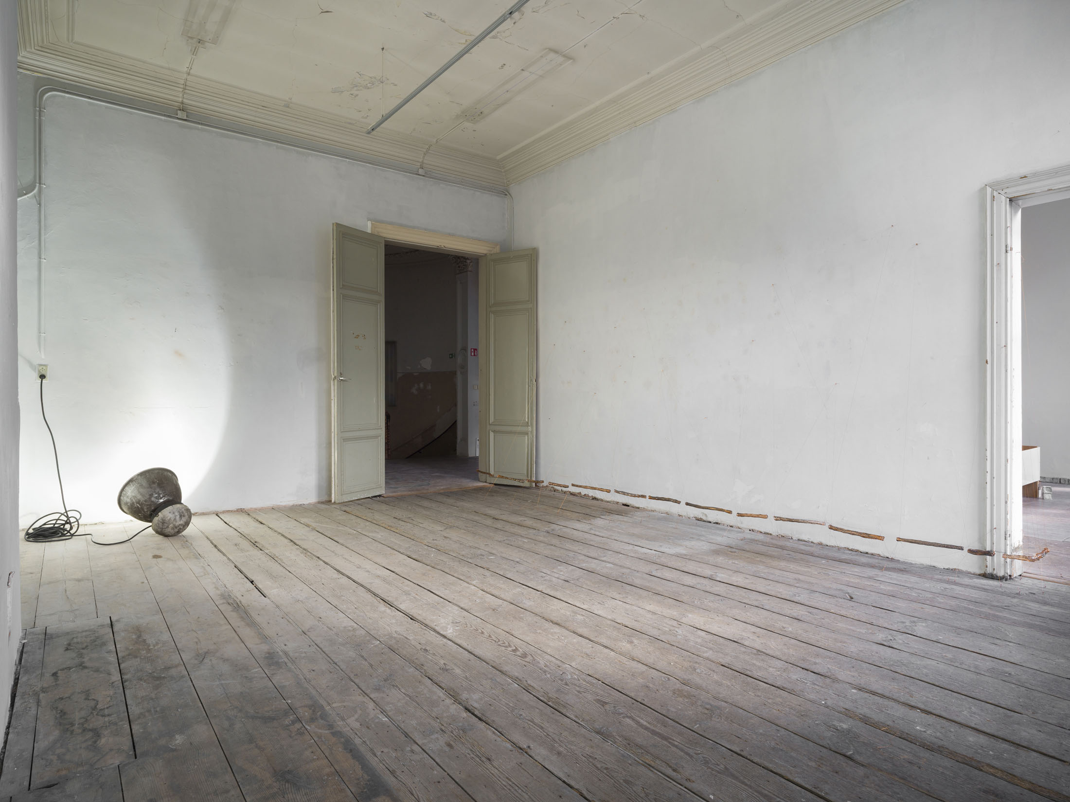 mountaincutters (°1990) establishes the material and spatial conditions through which the exhibition unfolds. Their installations operate as provisional architectures that neither stabilise the room nor define it conclusively. Instead, they introduce a state of tension that shapes how bodies move through the space and how attention is allocated.